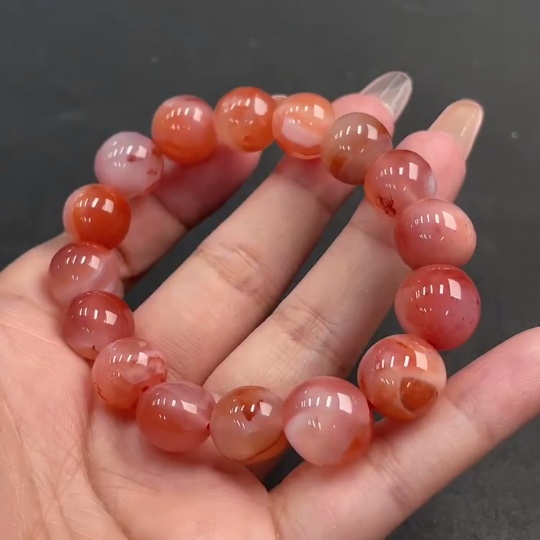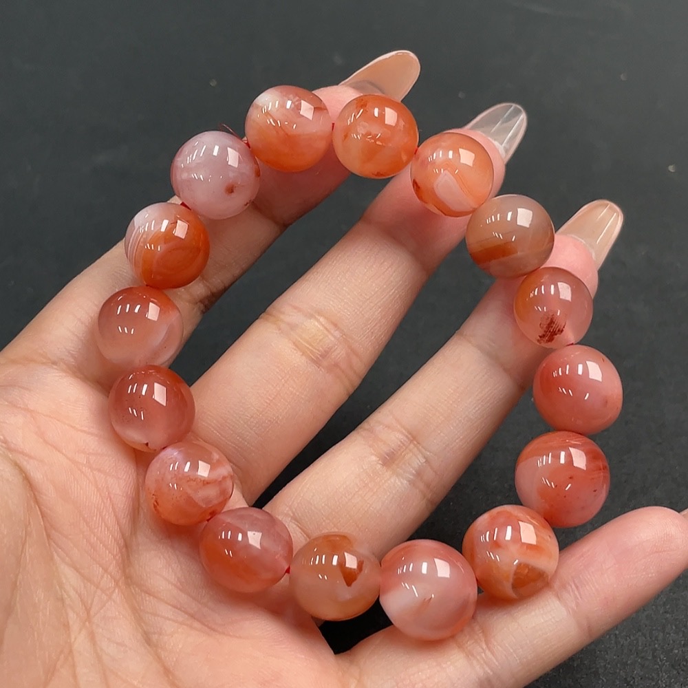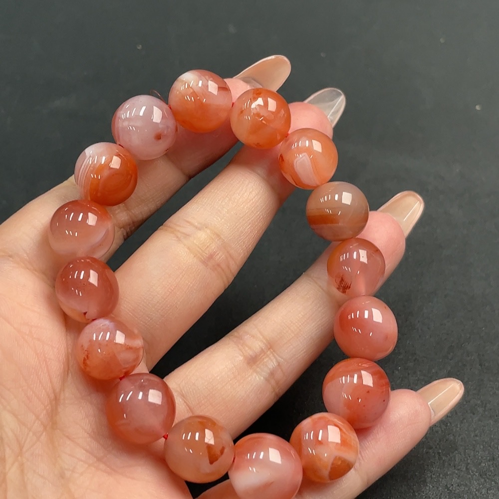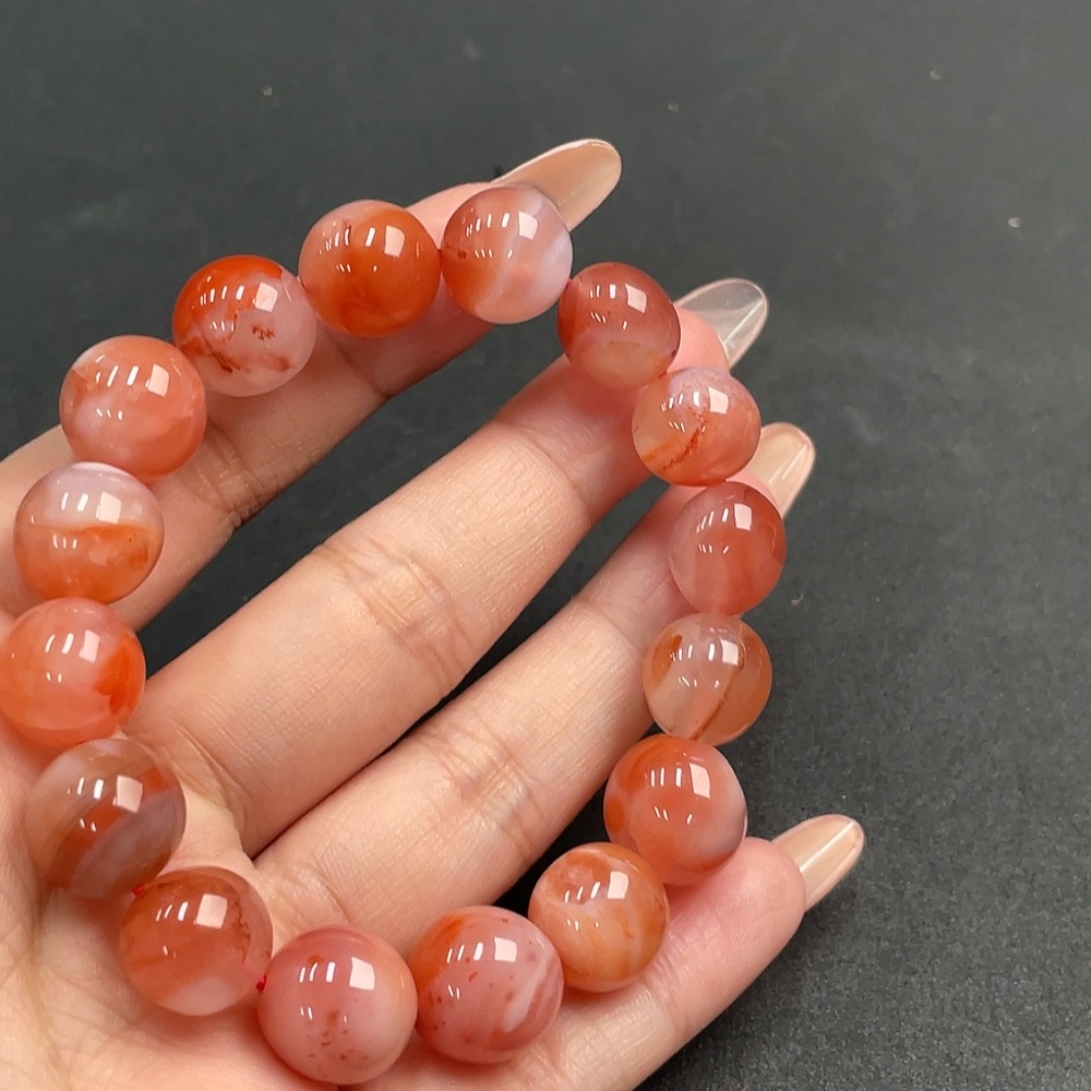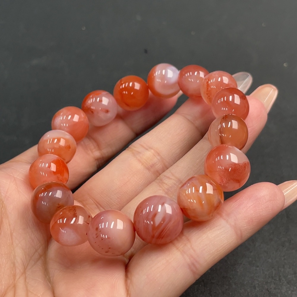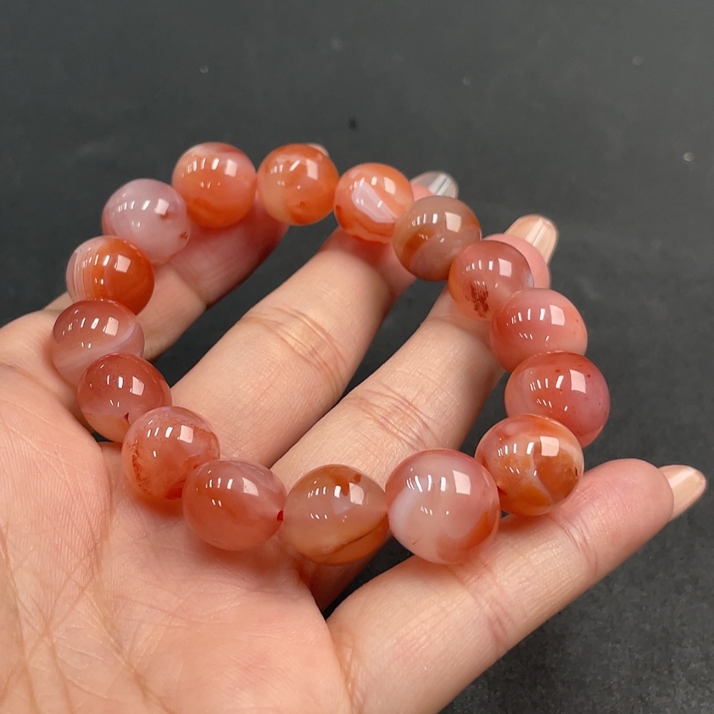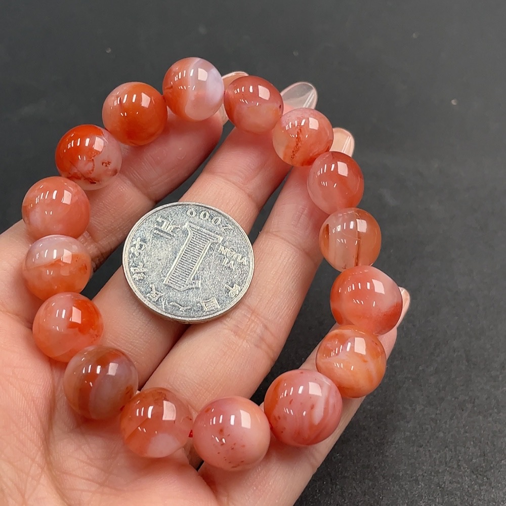 『South Red Agate Bead Necklace, approx. 12.6mm, total weight approx. 44.01g』