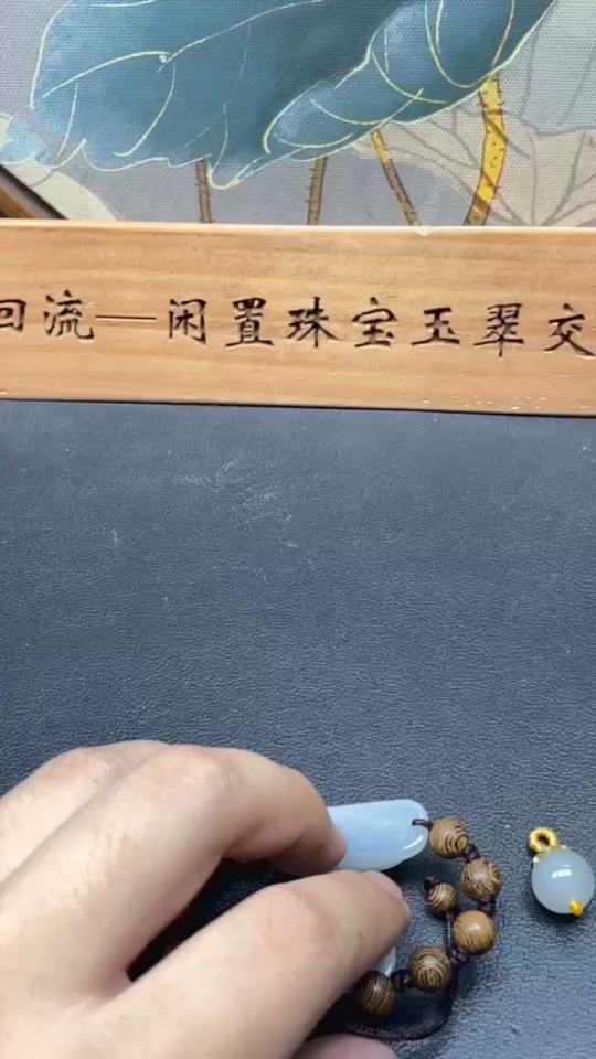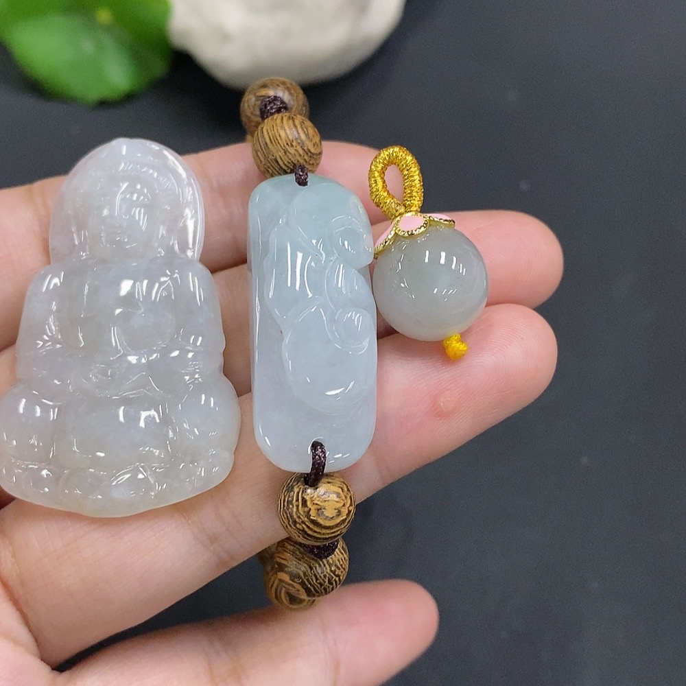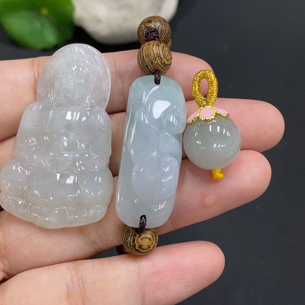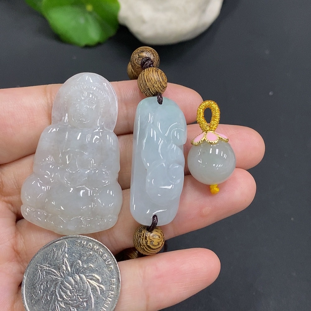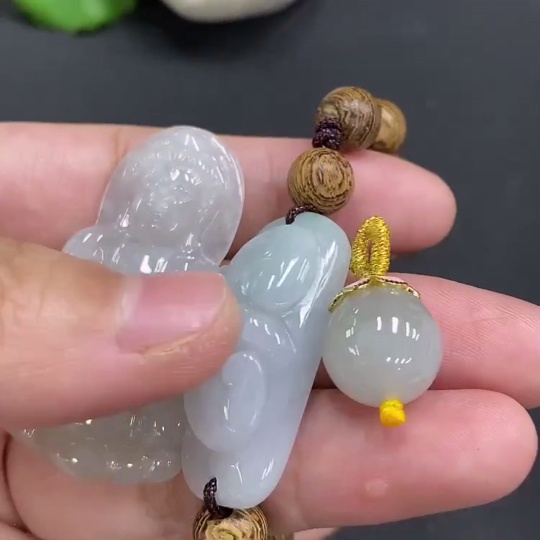 Jadeitependant with hand rope and beads set (non-gold inlaid)