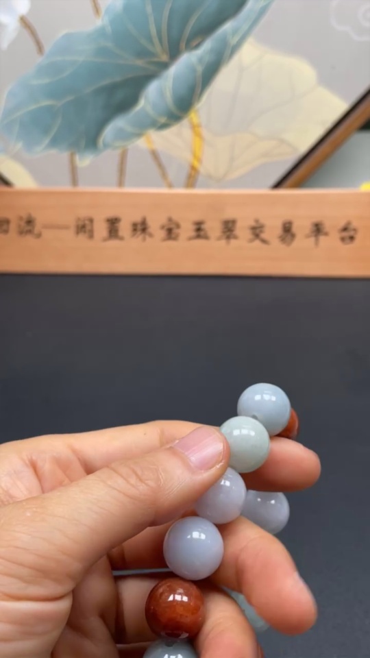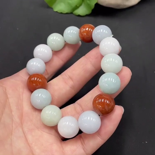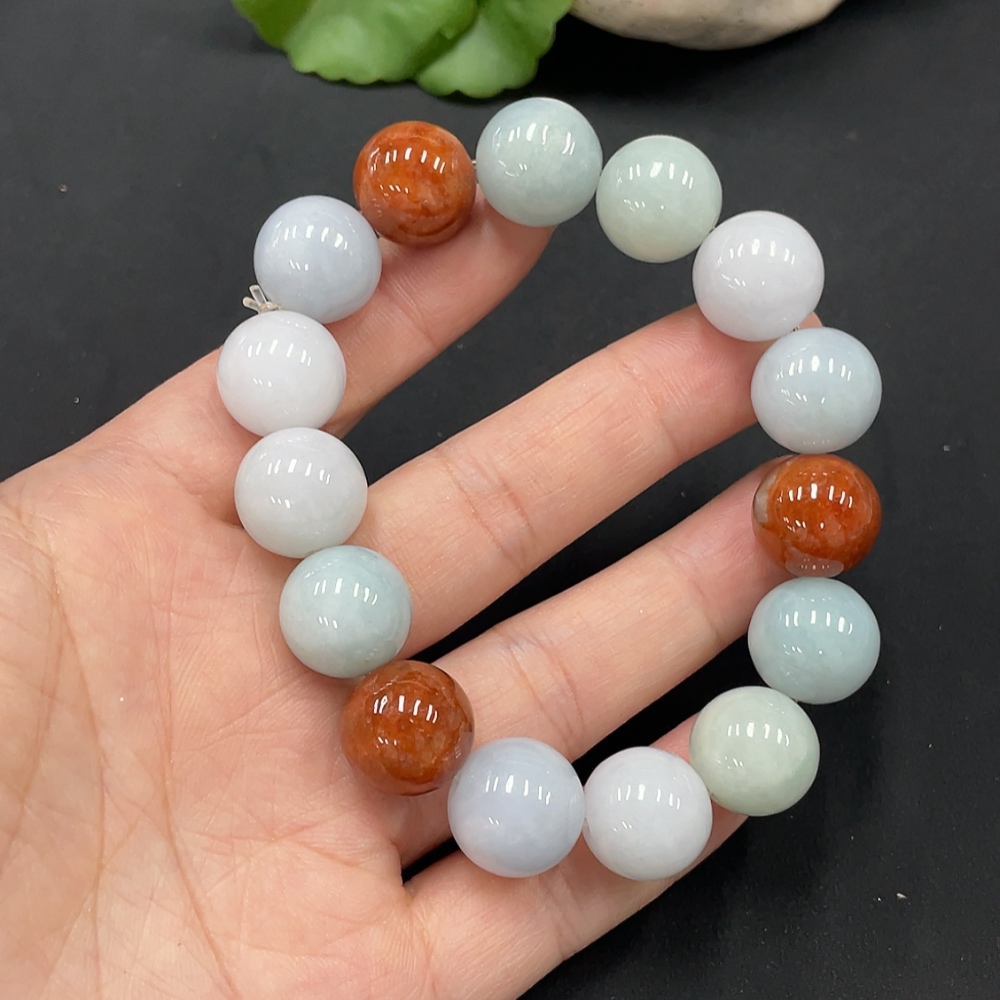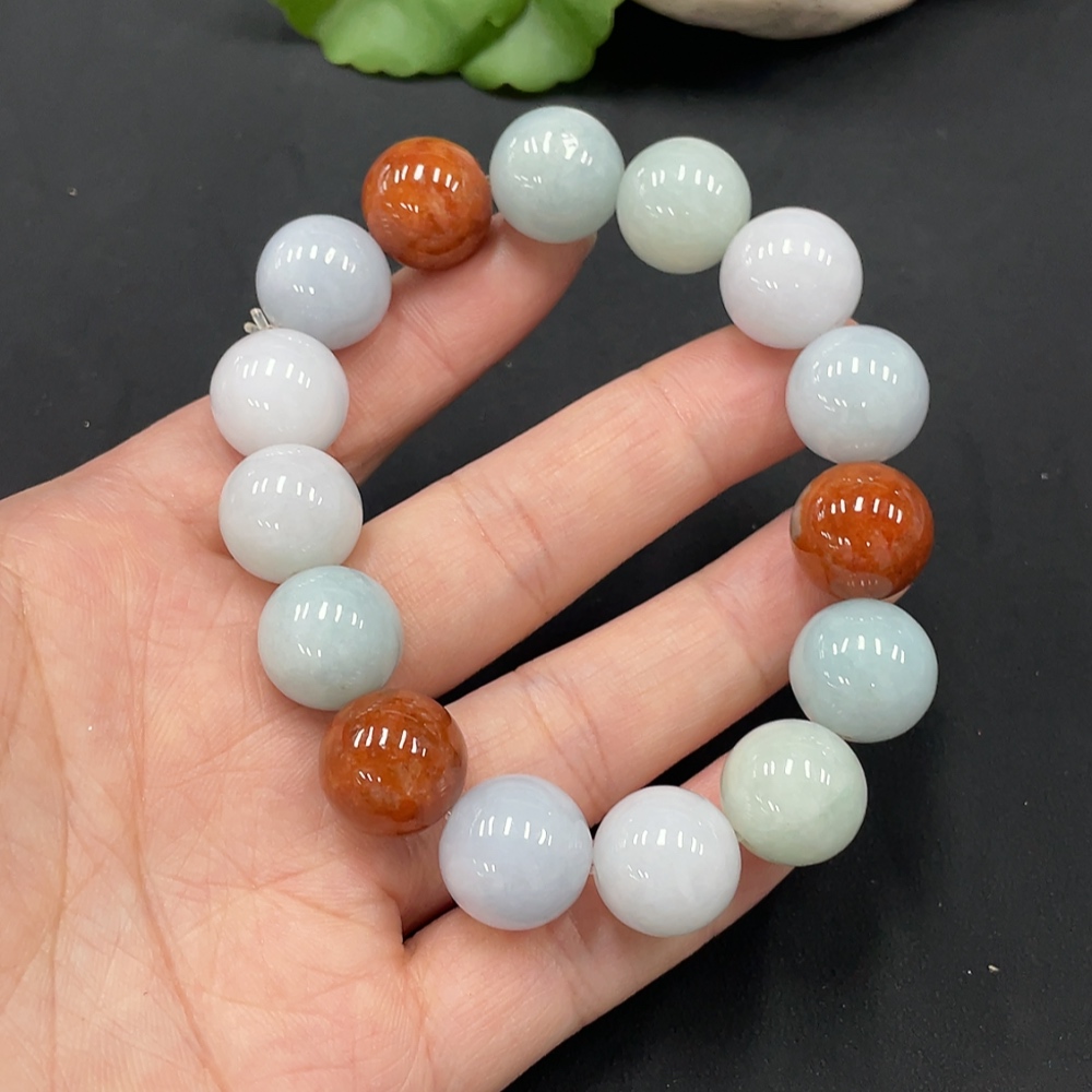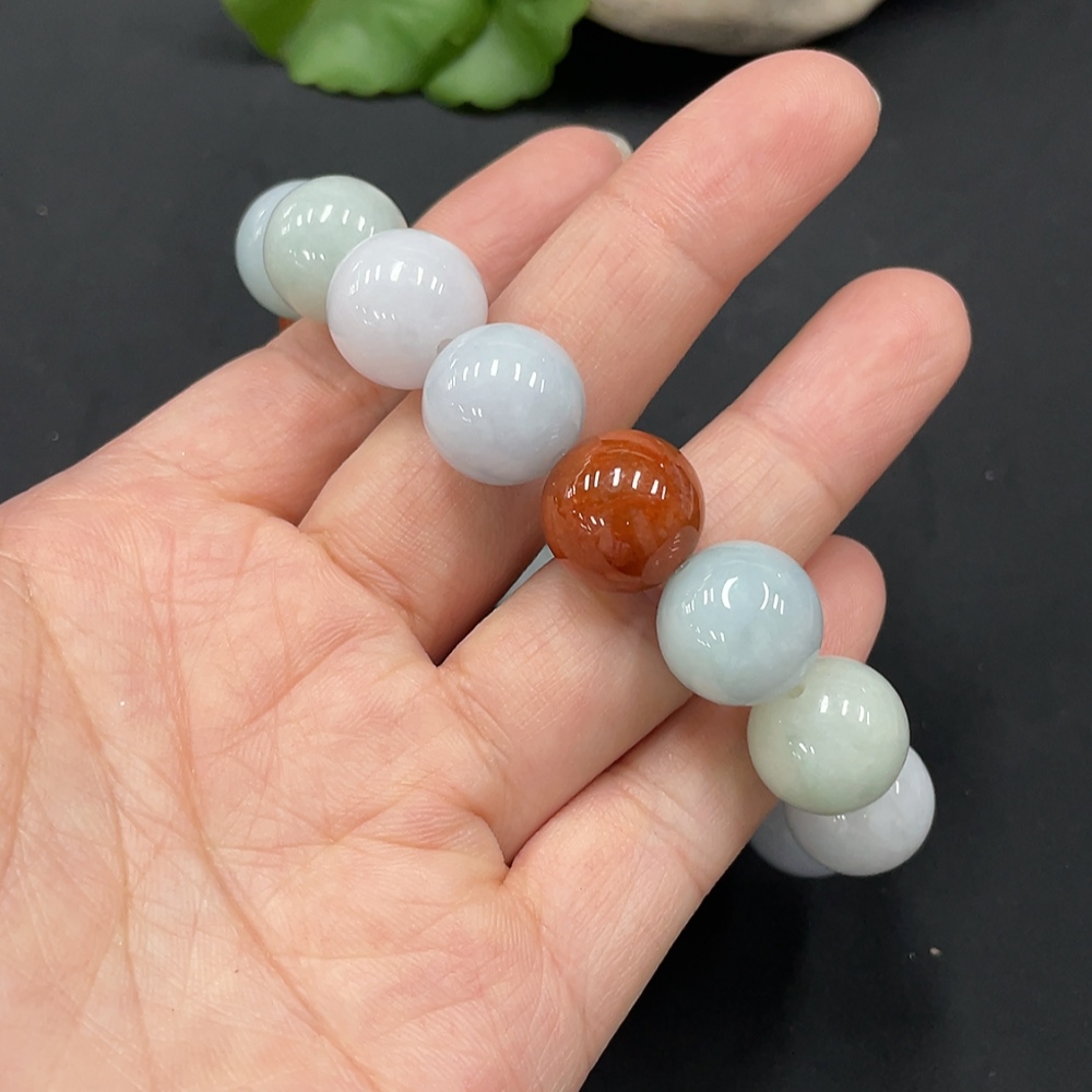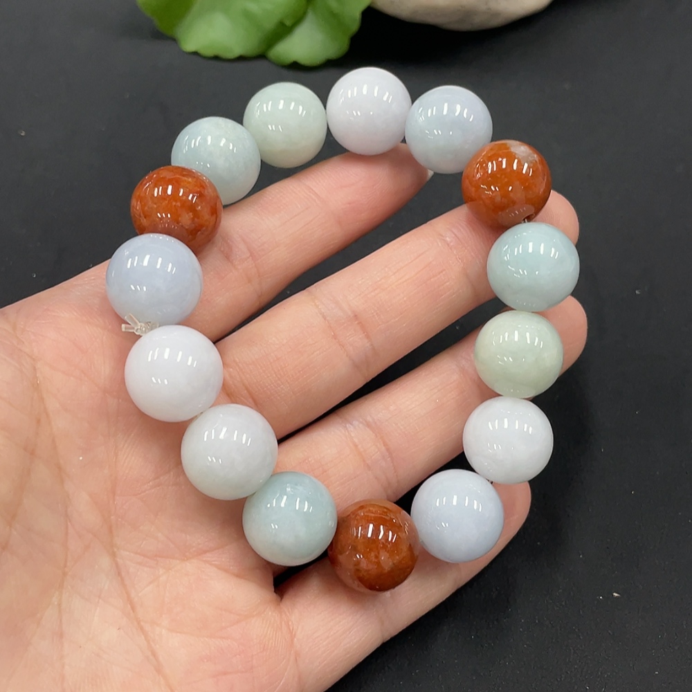 JadeiteBeaded Bracelet Approx.13.5mm Beads Non-Grade A Red Beads Total Weight 72.022g