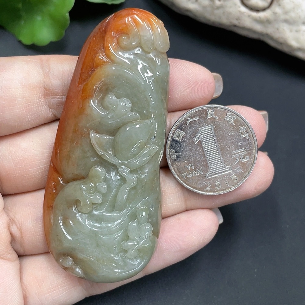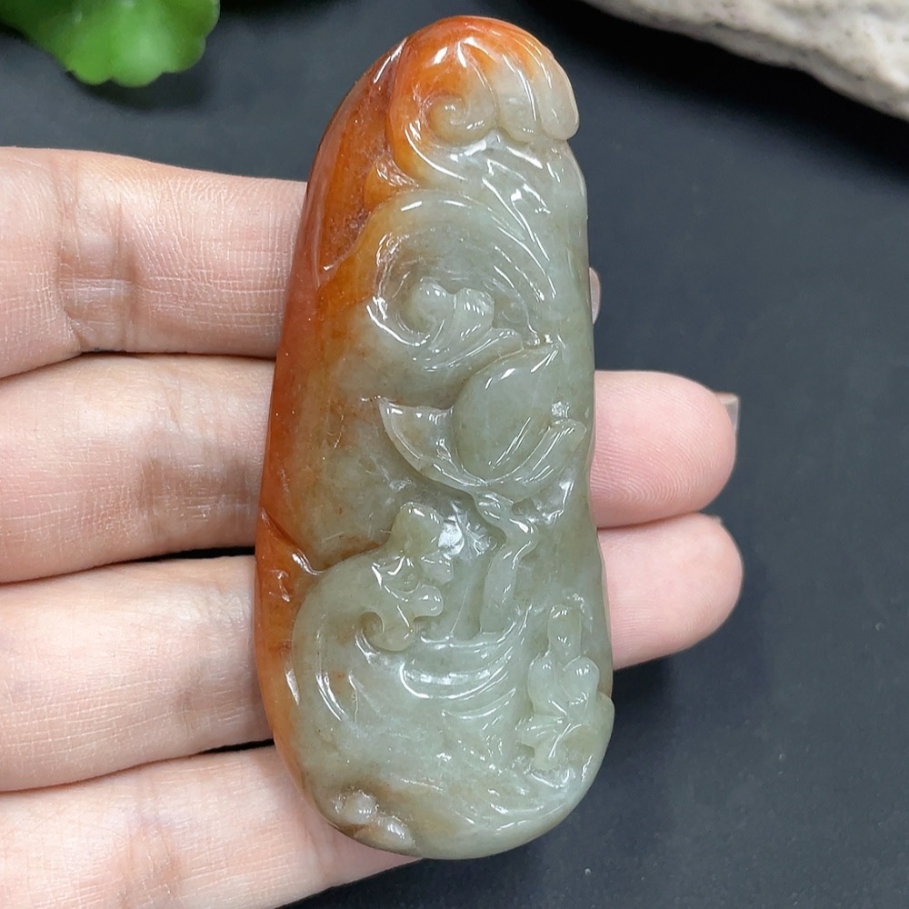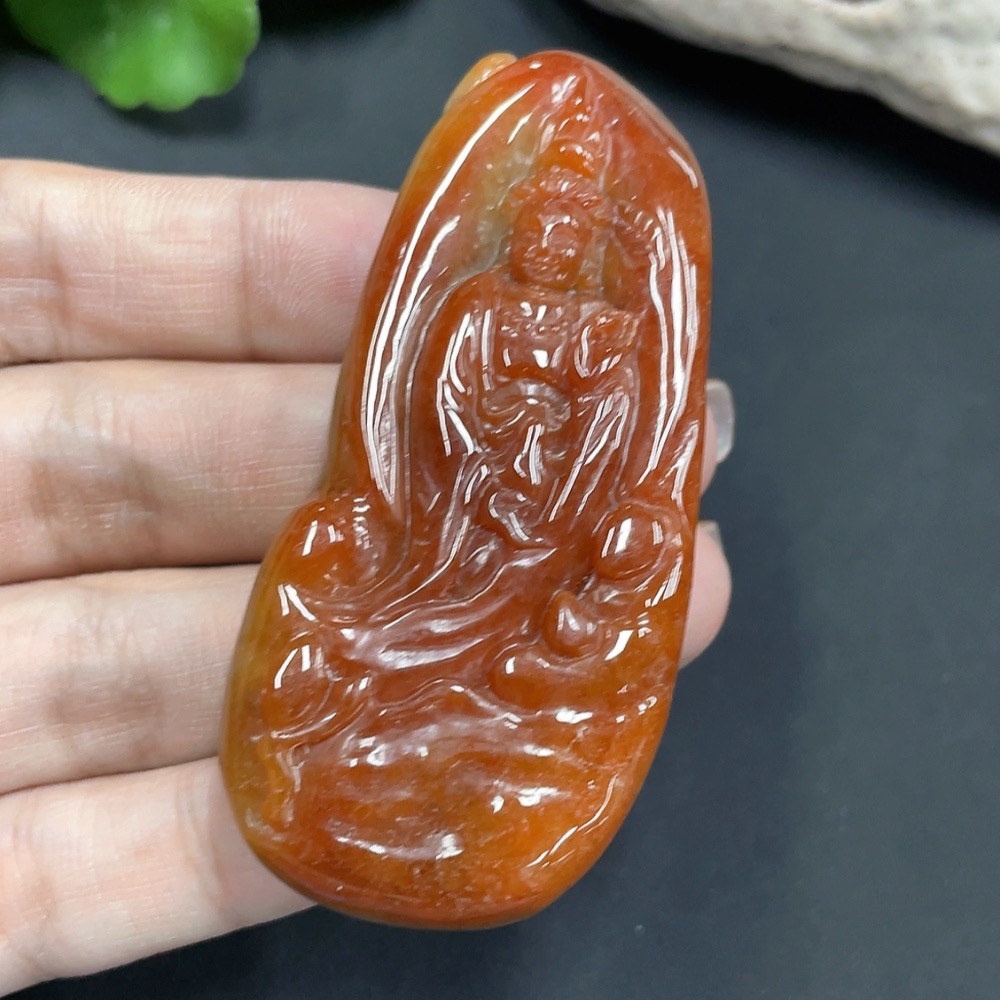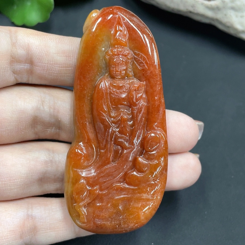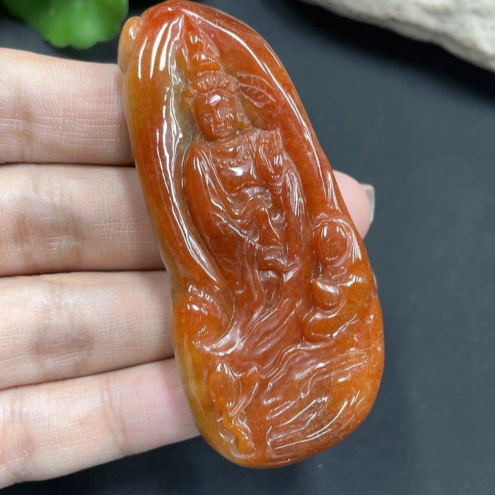 Jadeite pendant Guanyin, color origin undetermined