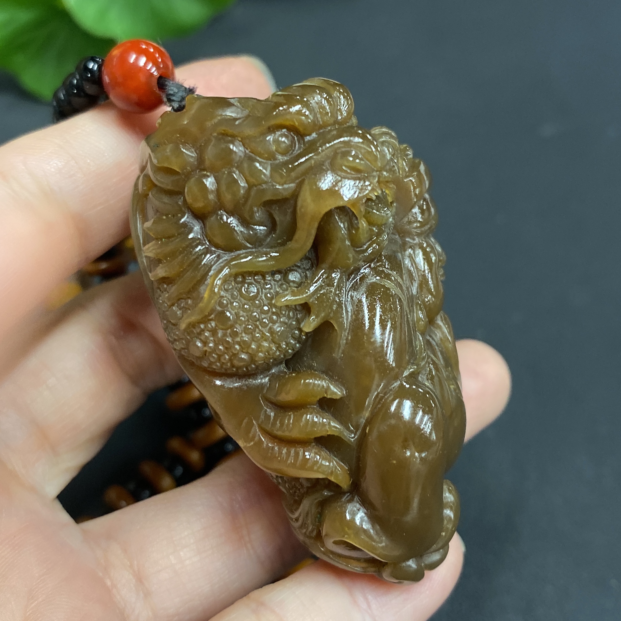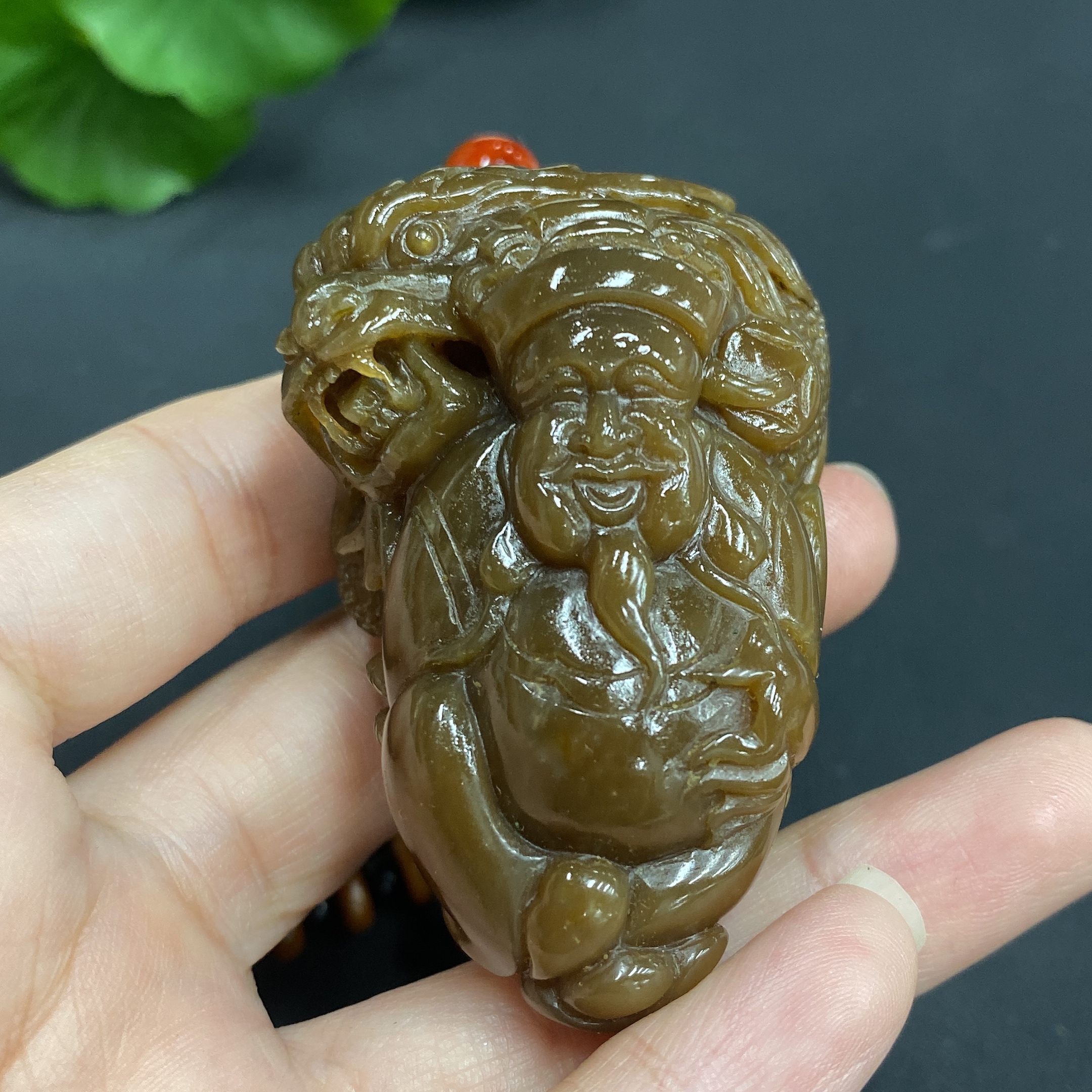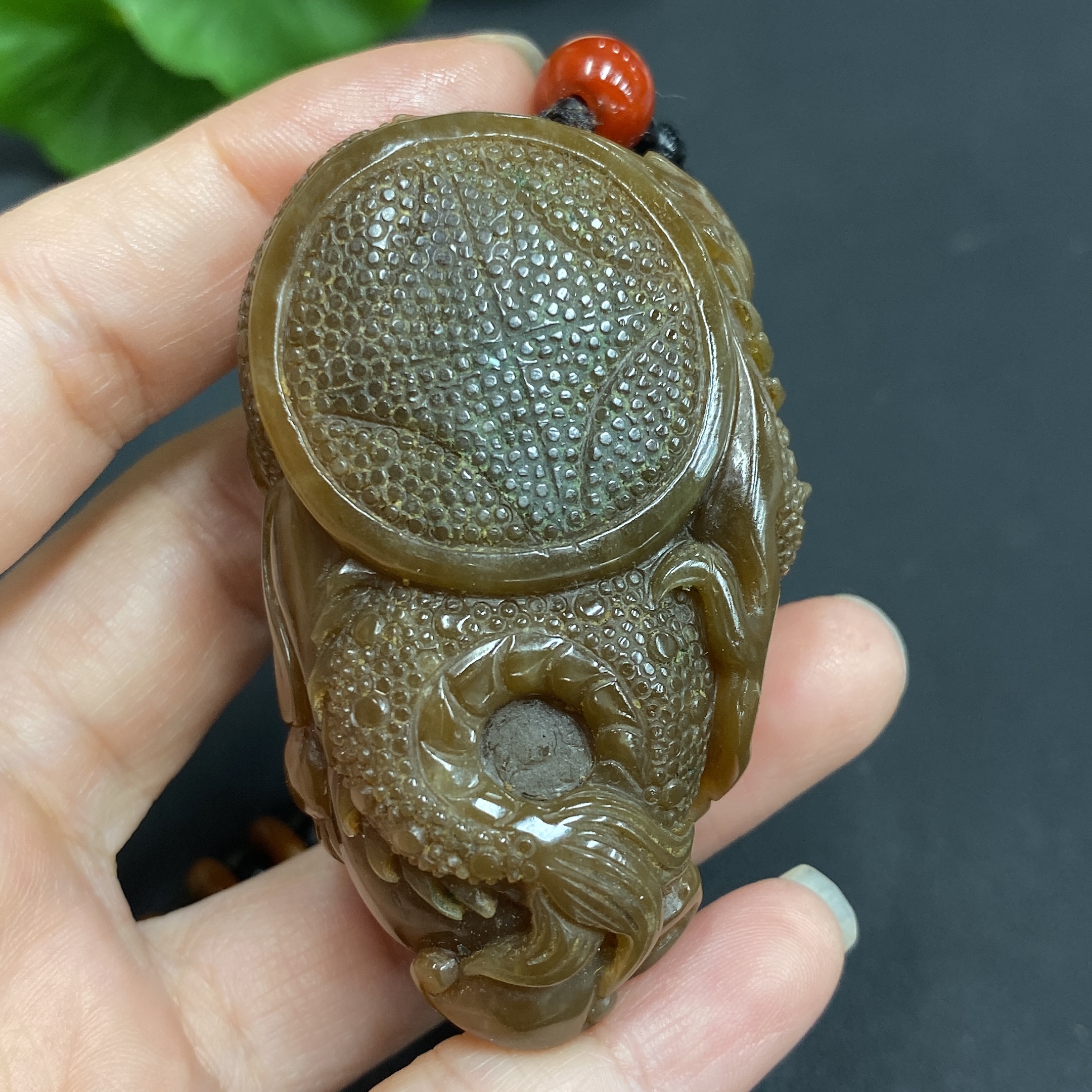Hetian Jade Handheld Ornament - Dragon, Total Weight (Including Chain): 99.4g