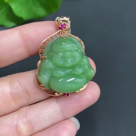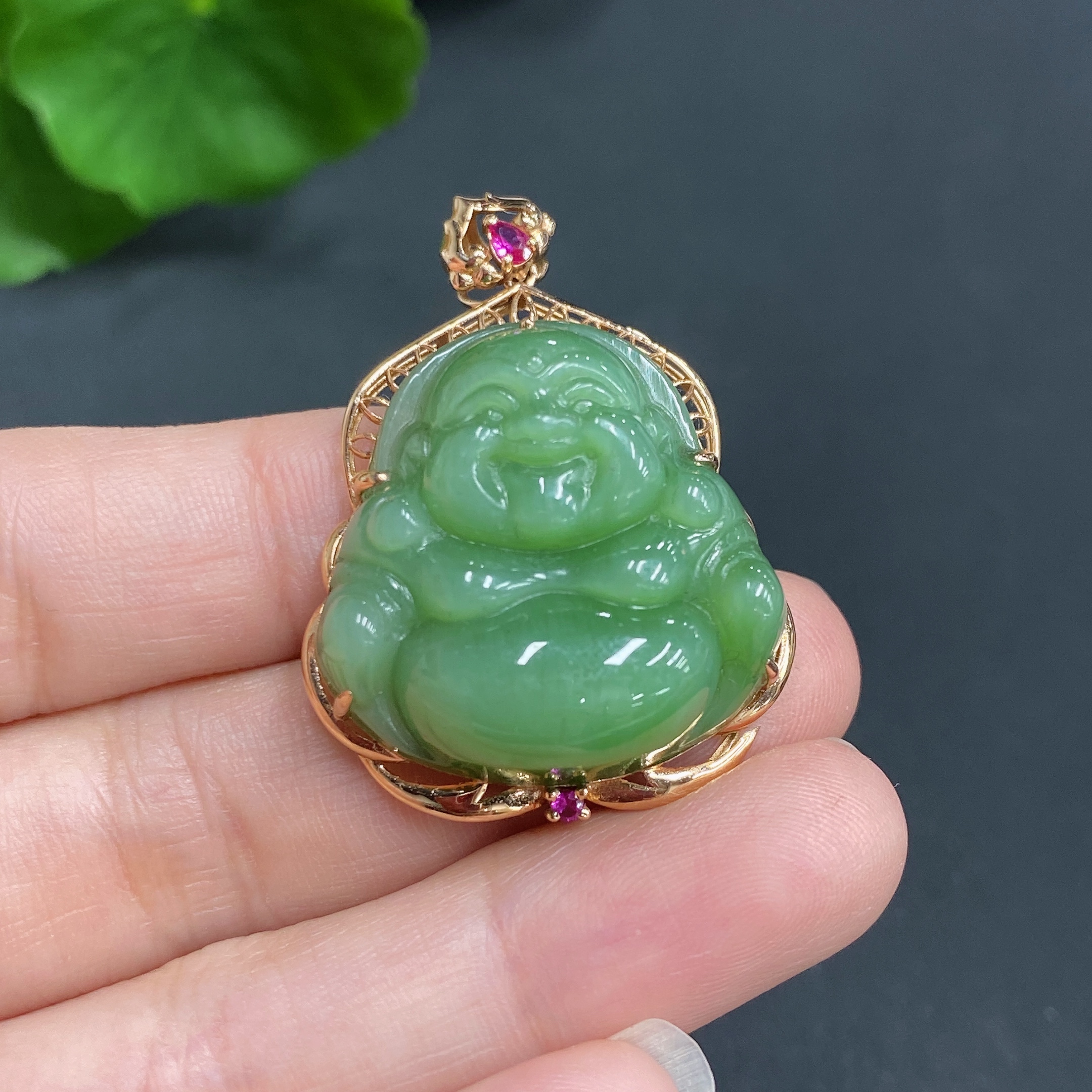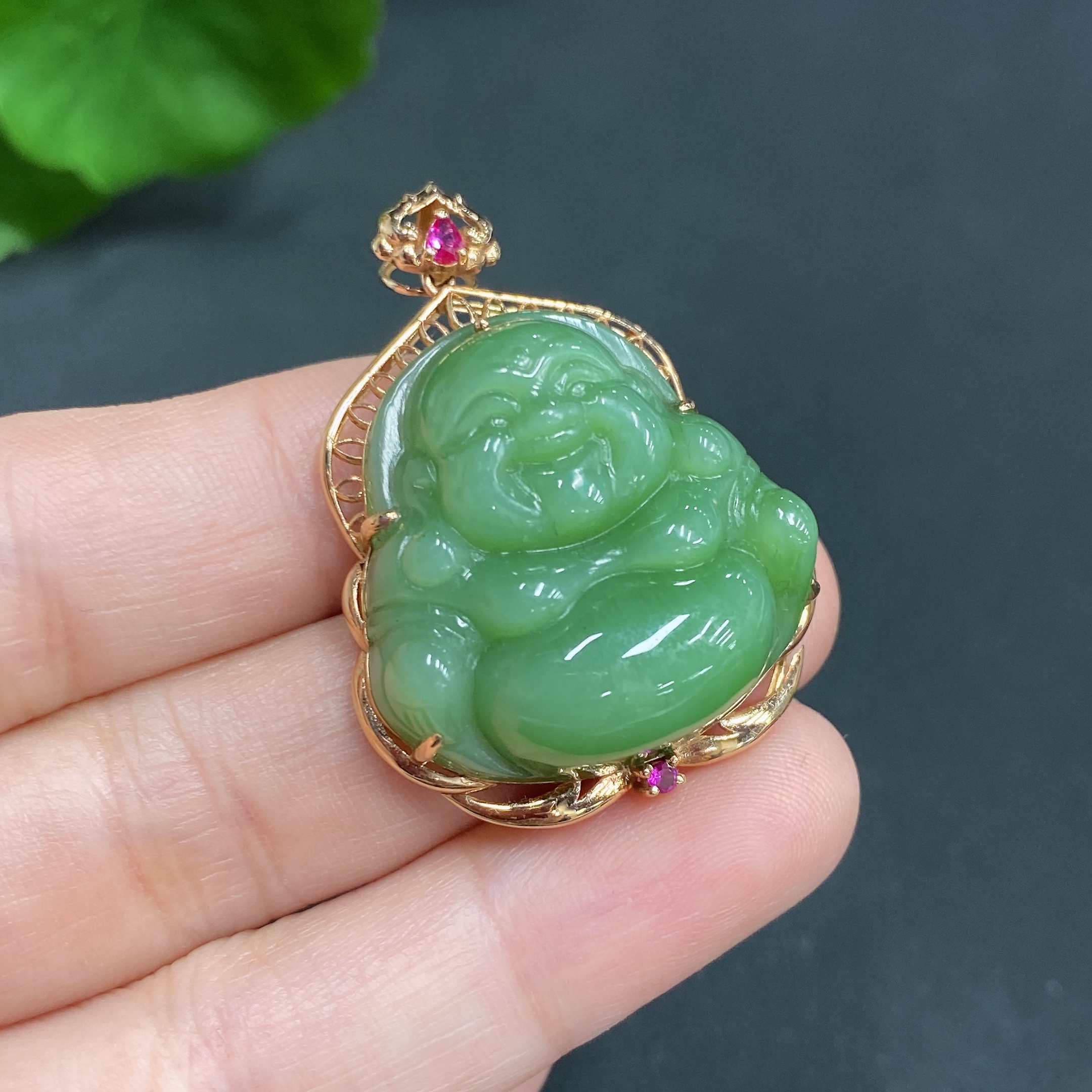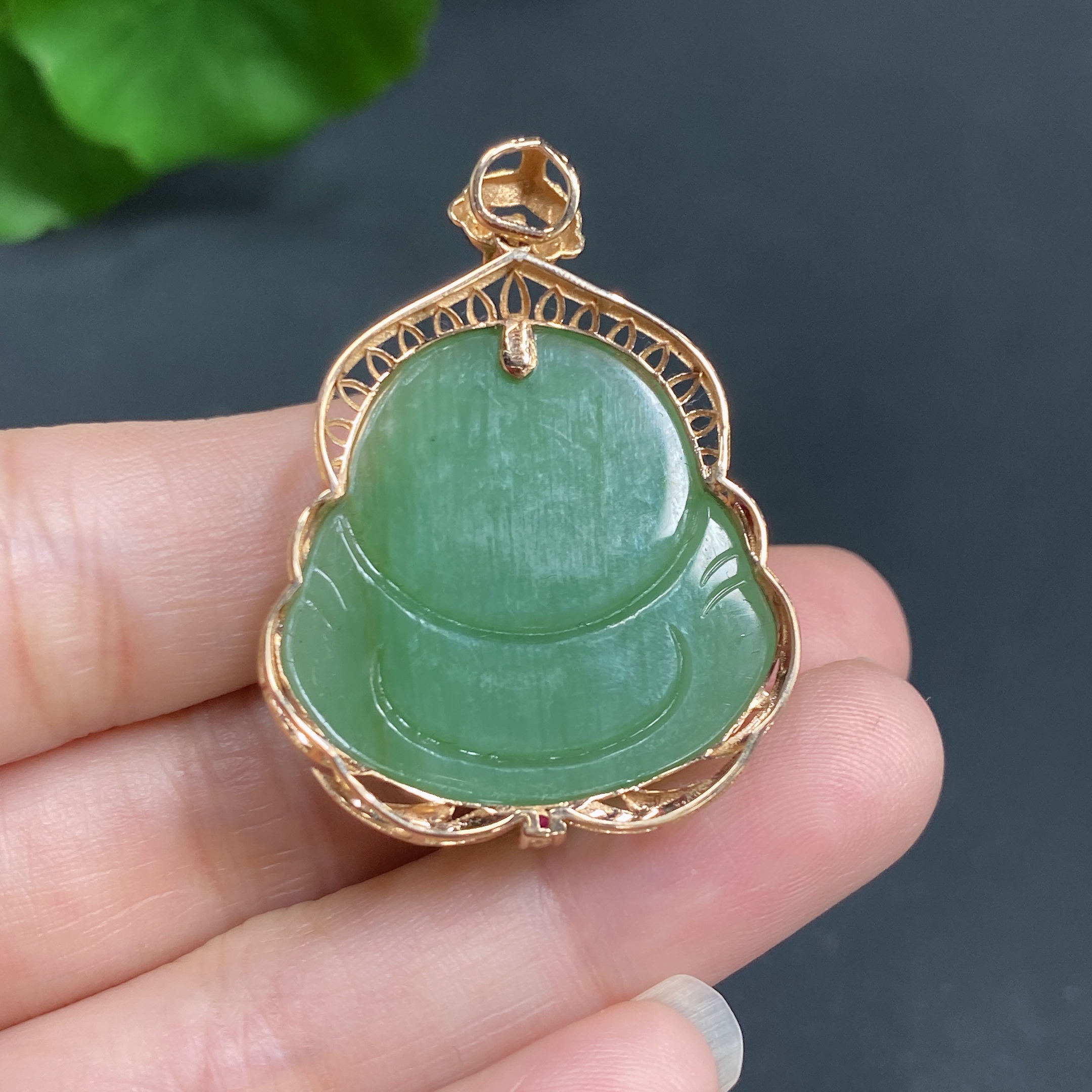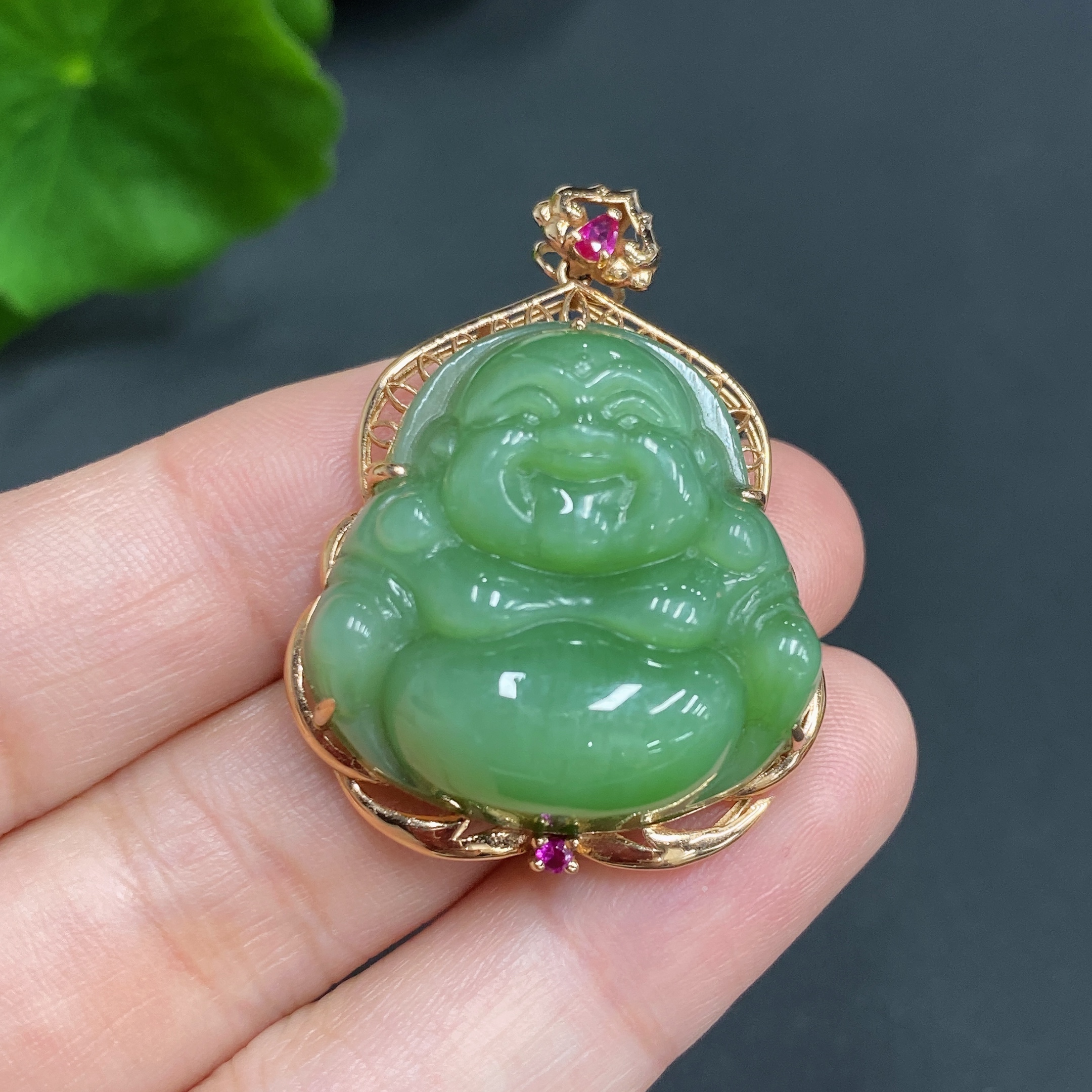 Hetian Jade Inlaid Buddha 18K Gold Total Weight Approx. 9.5g
