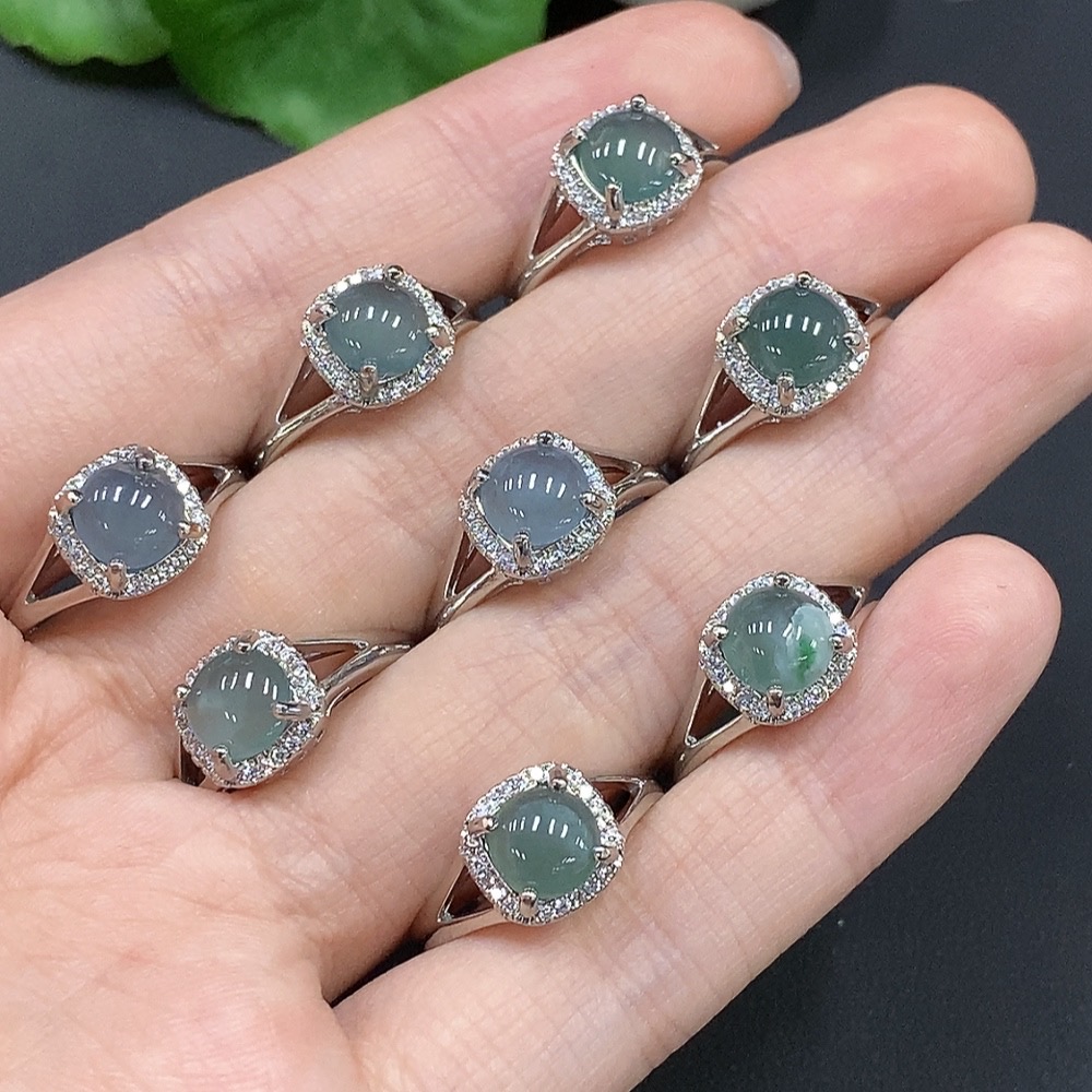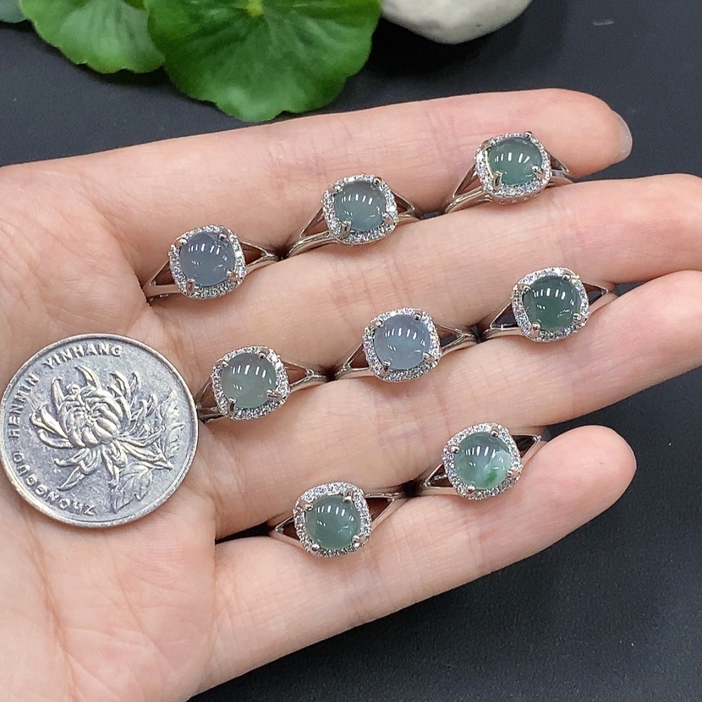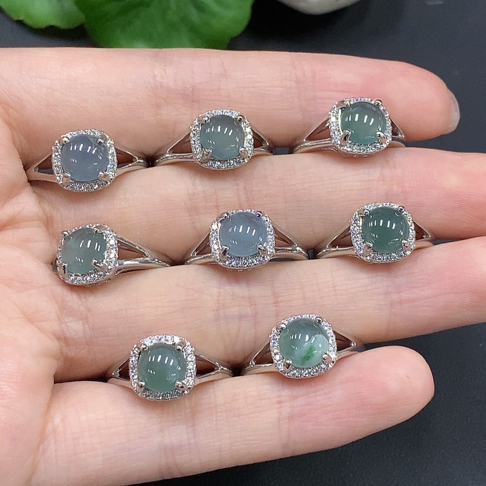 Jadeite Cabochon Ring (Non-Gold Setting, Adjustable Band)