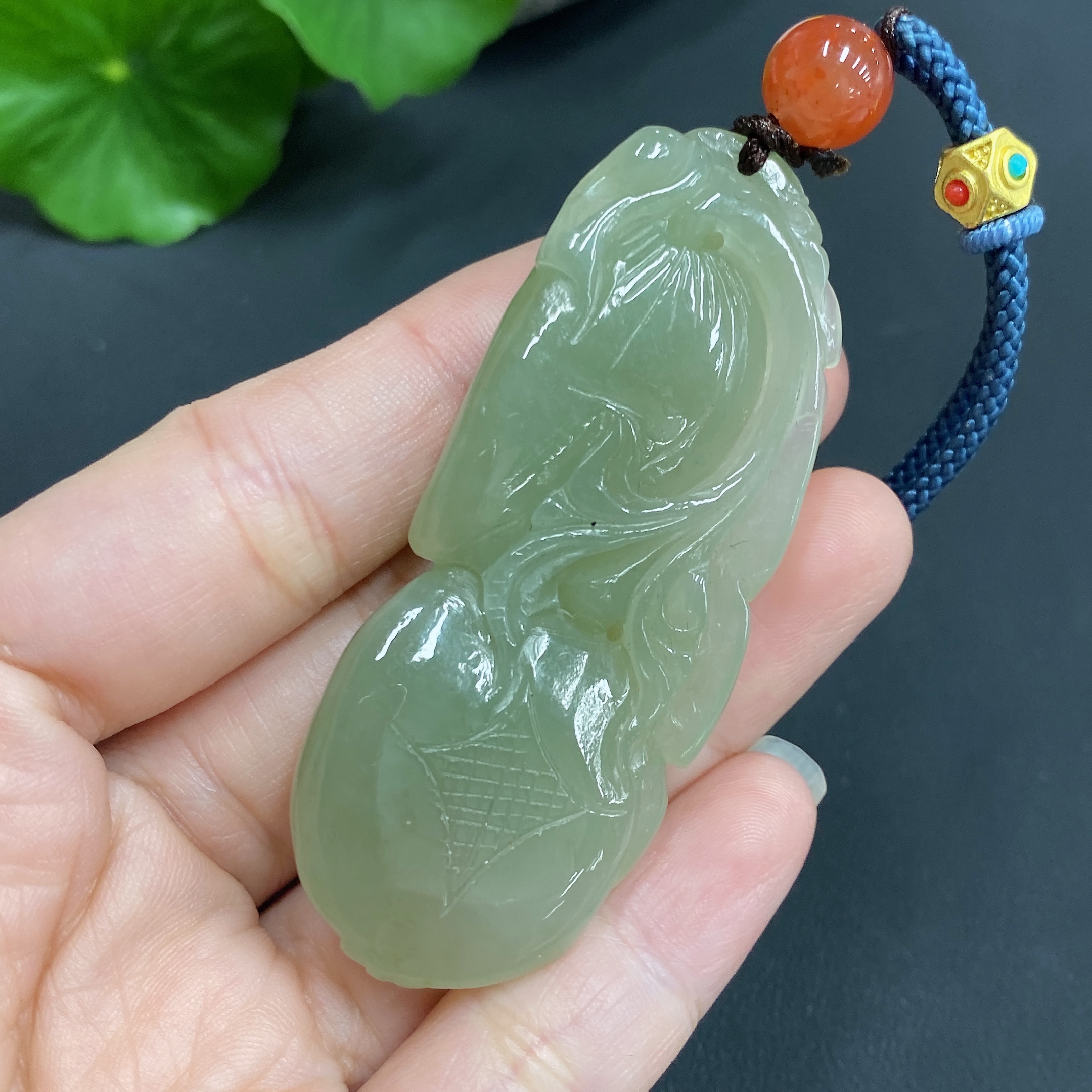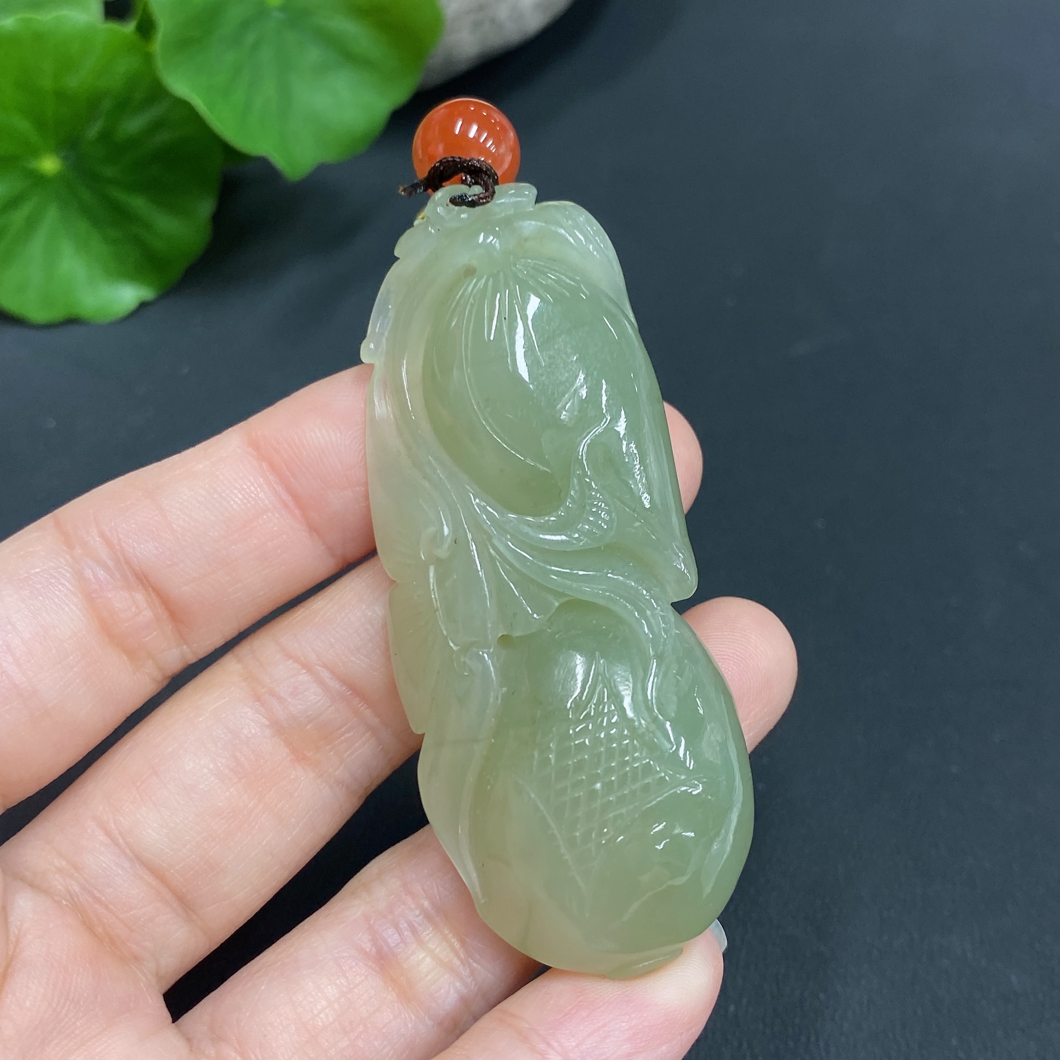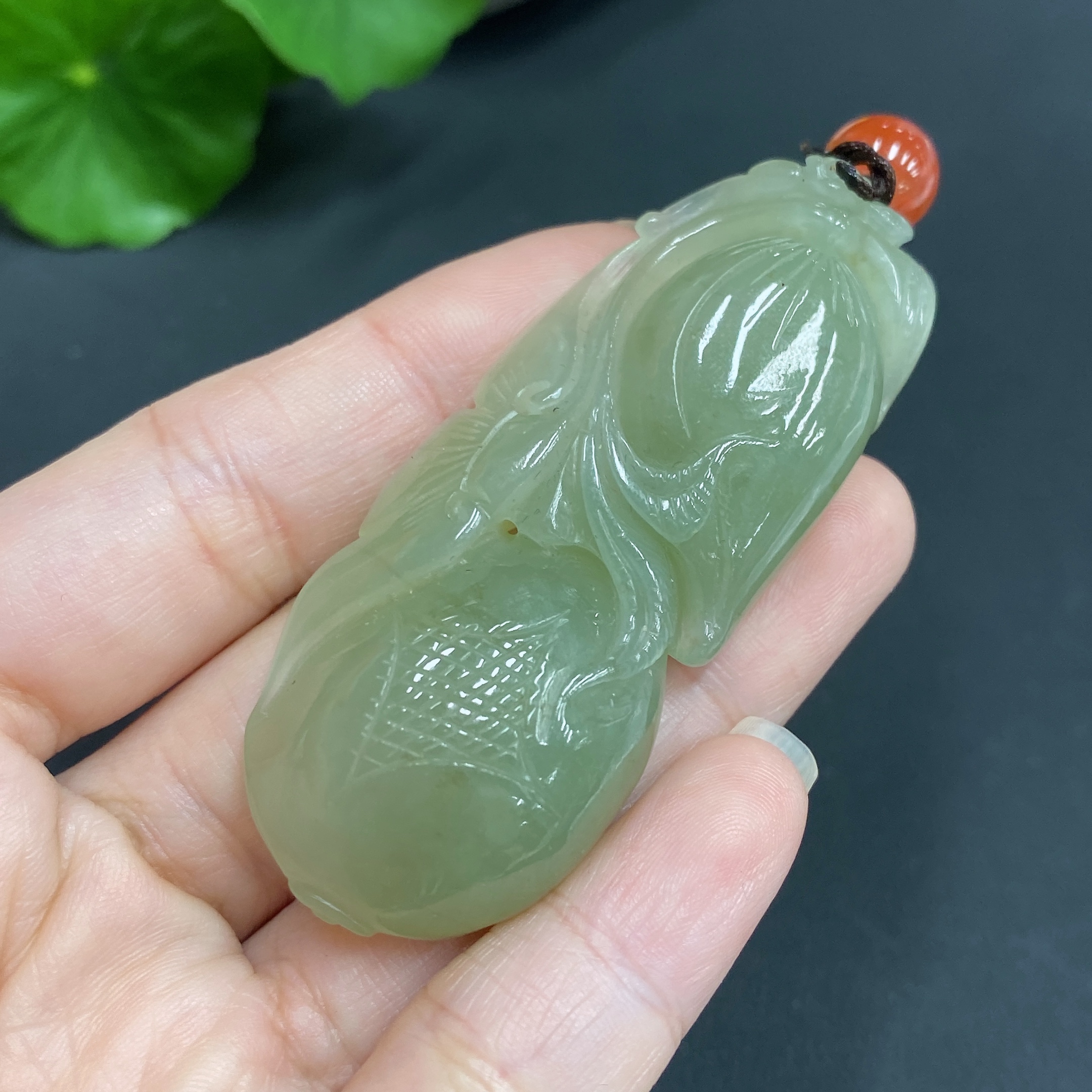 Hetian Jade Pendant, Fu Melon, Total Weight Approx. (with rope) 31.3g