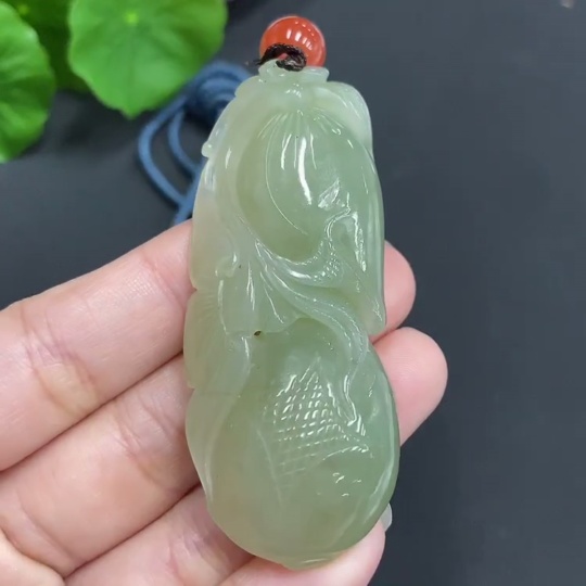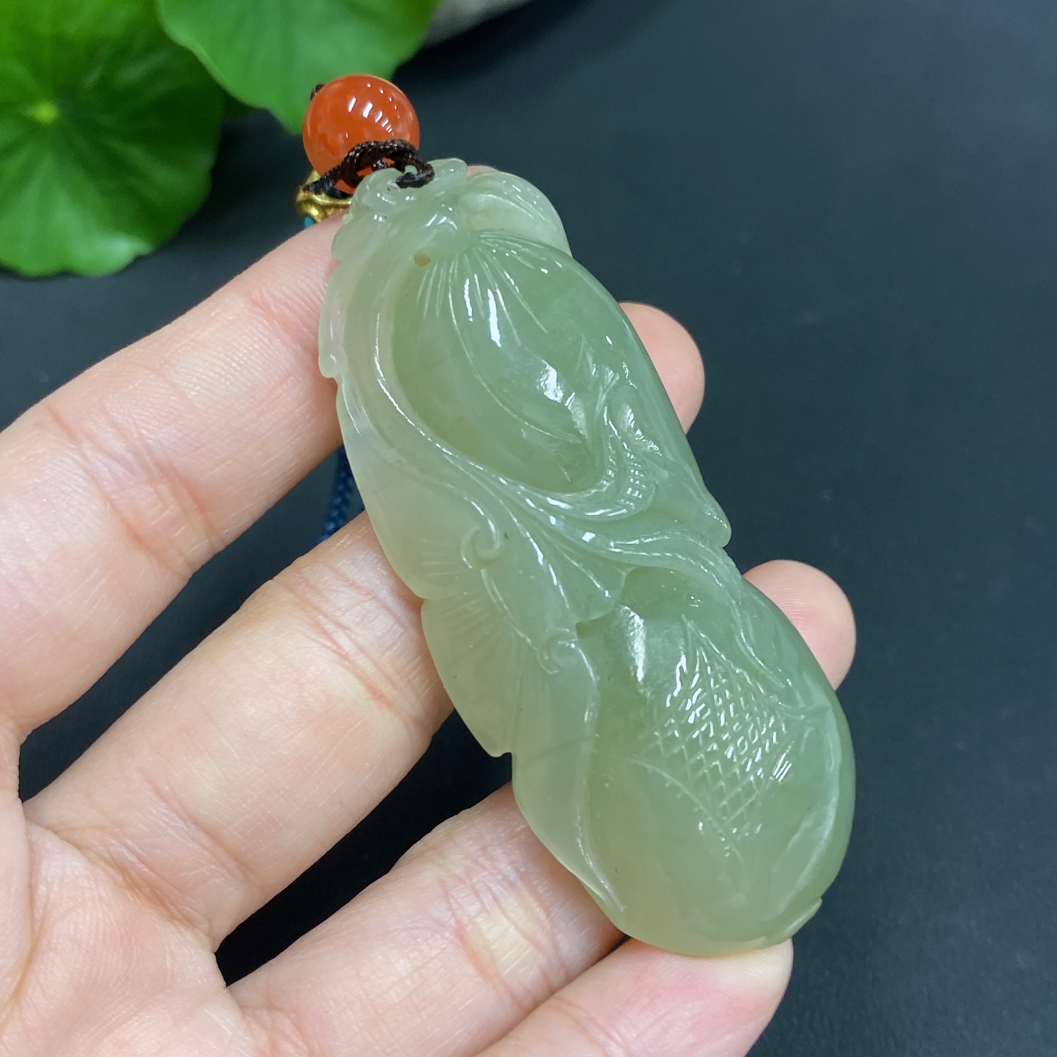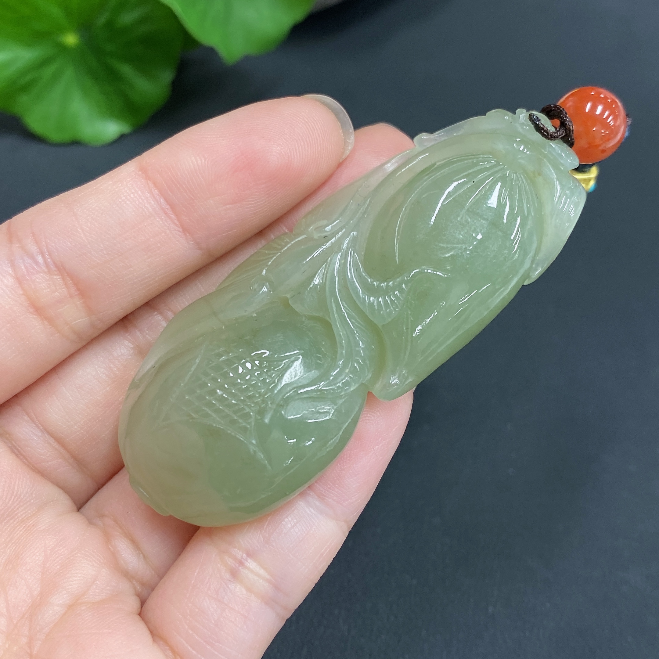 Hetian Jade Pendant, Fu Melon, Total Weight Approx. (with rope) 31.3g