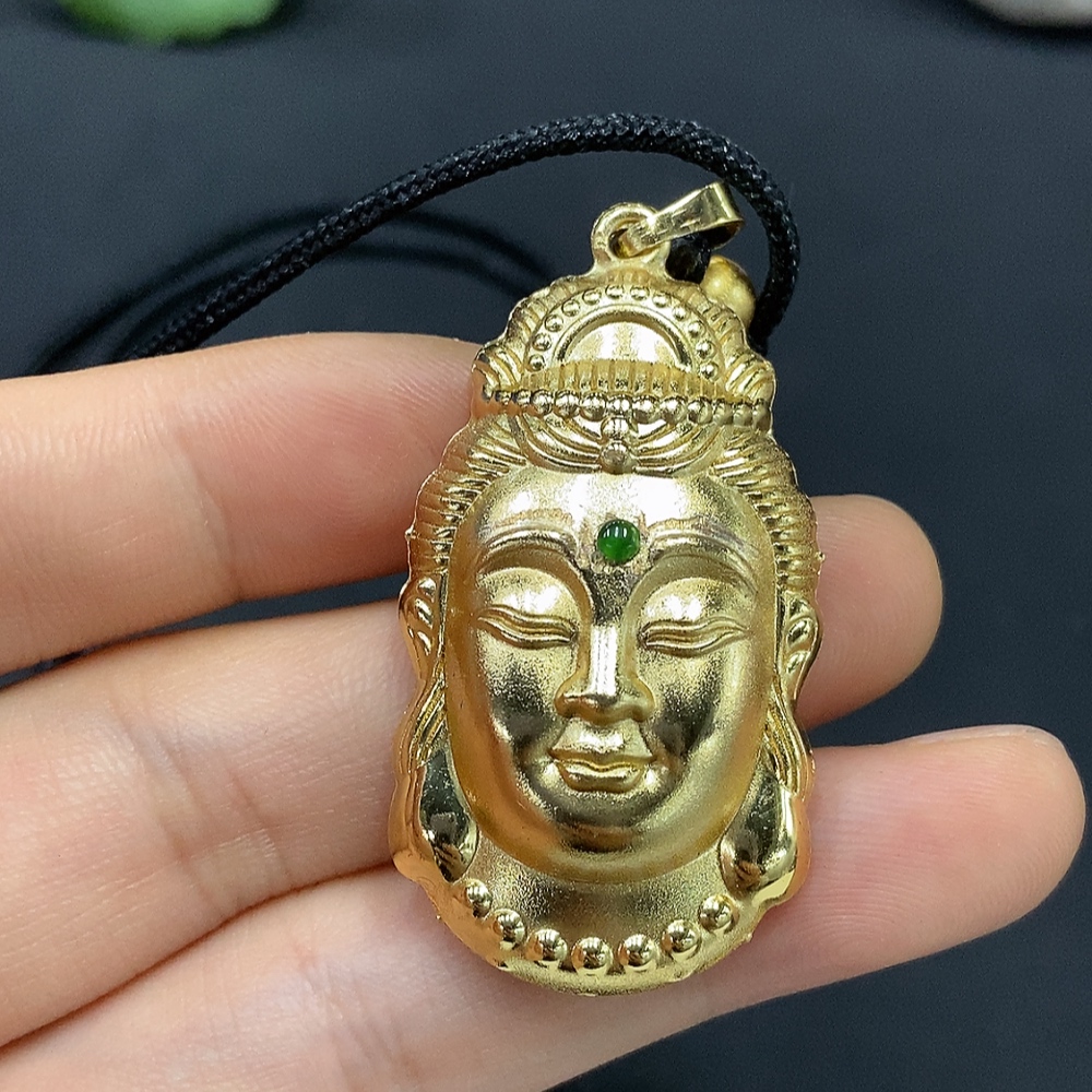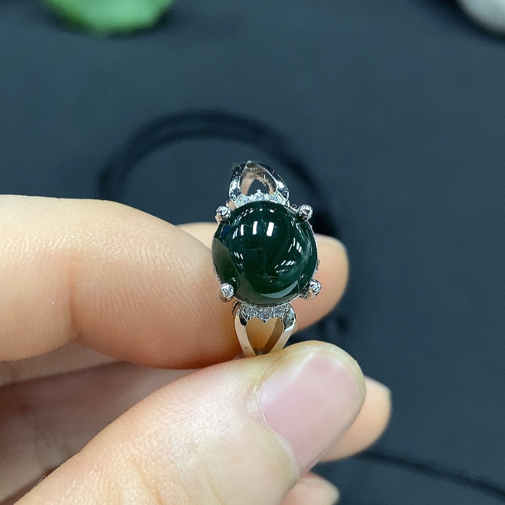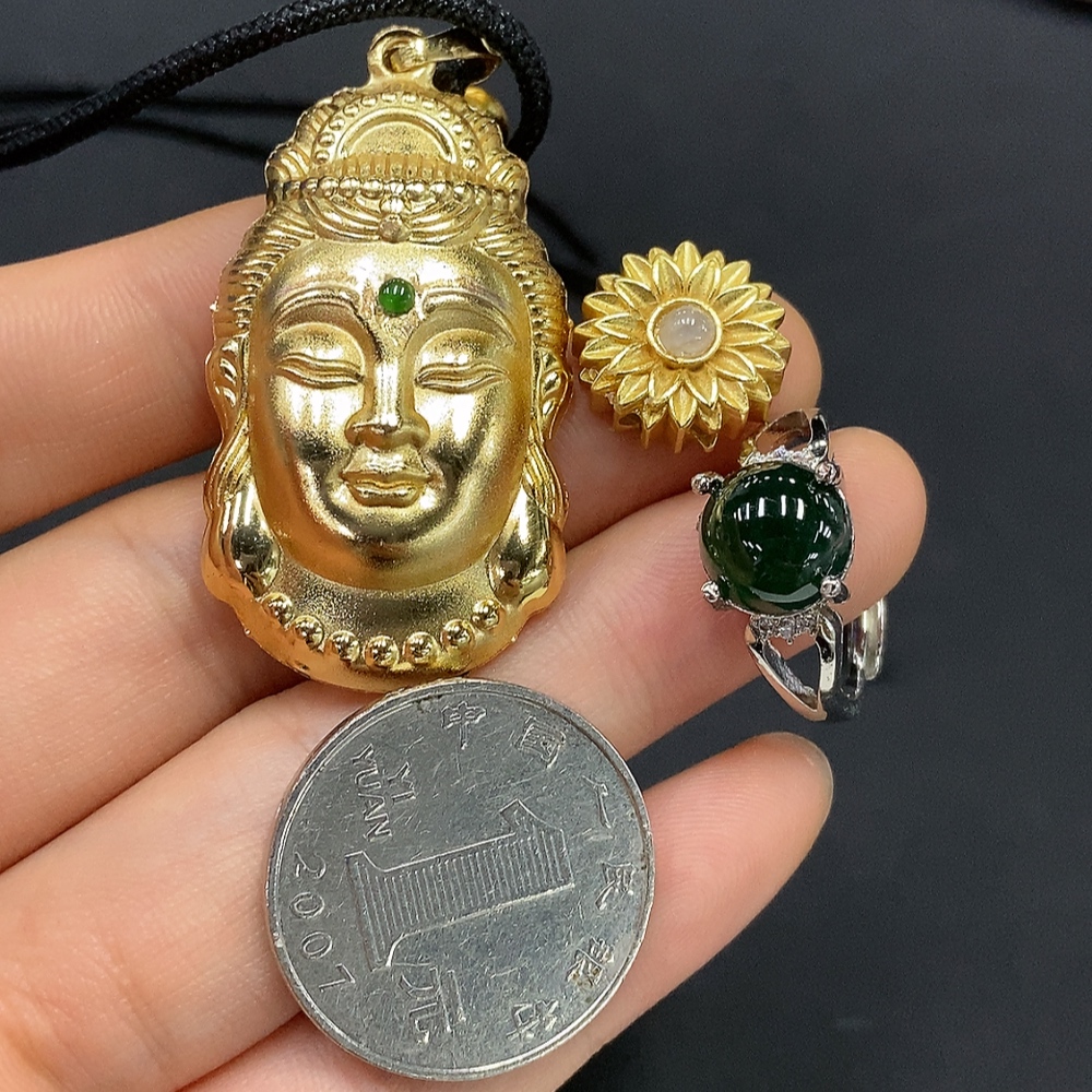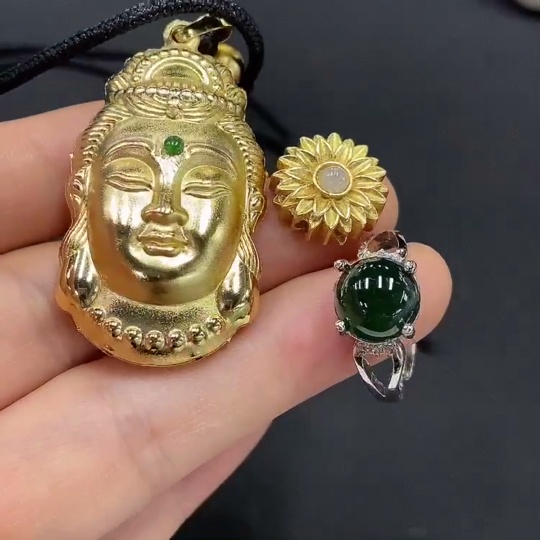 Jadeite inlaid pendant and inlaid ring with adjustable opening (non-gold inlaid)