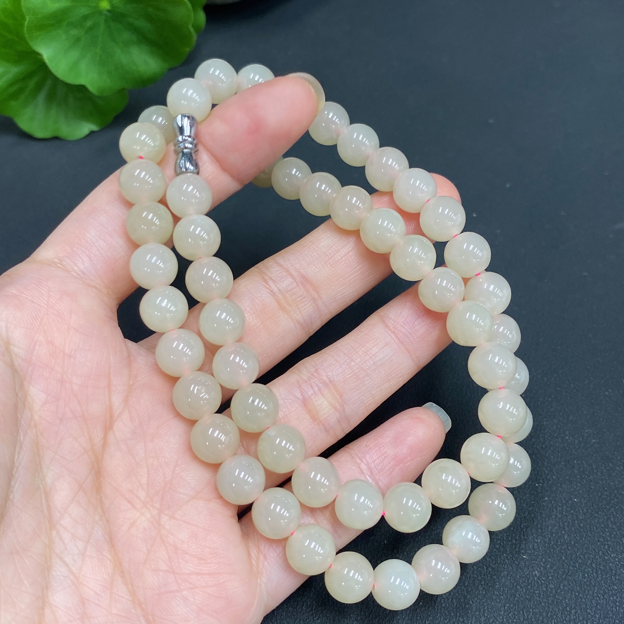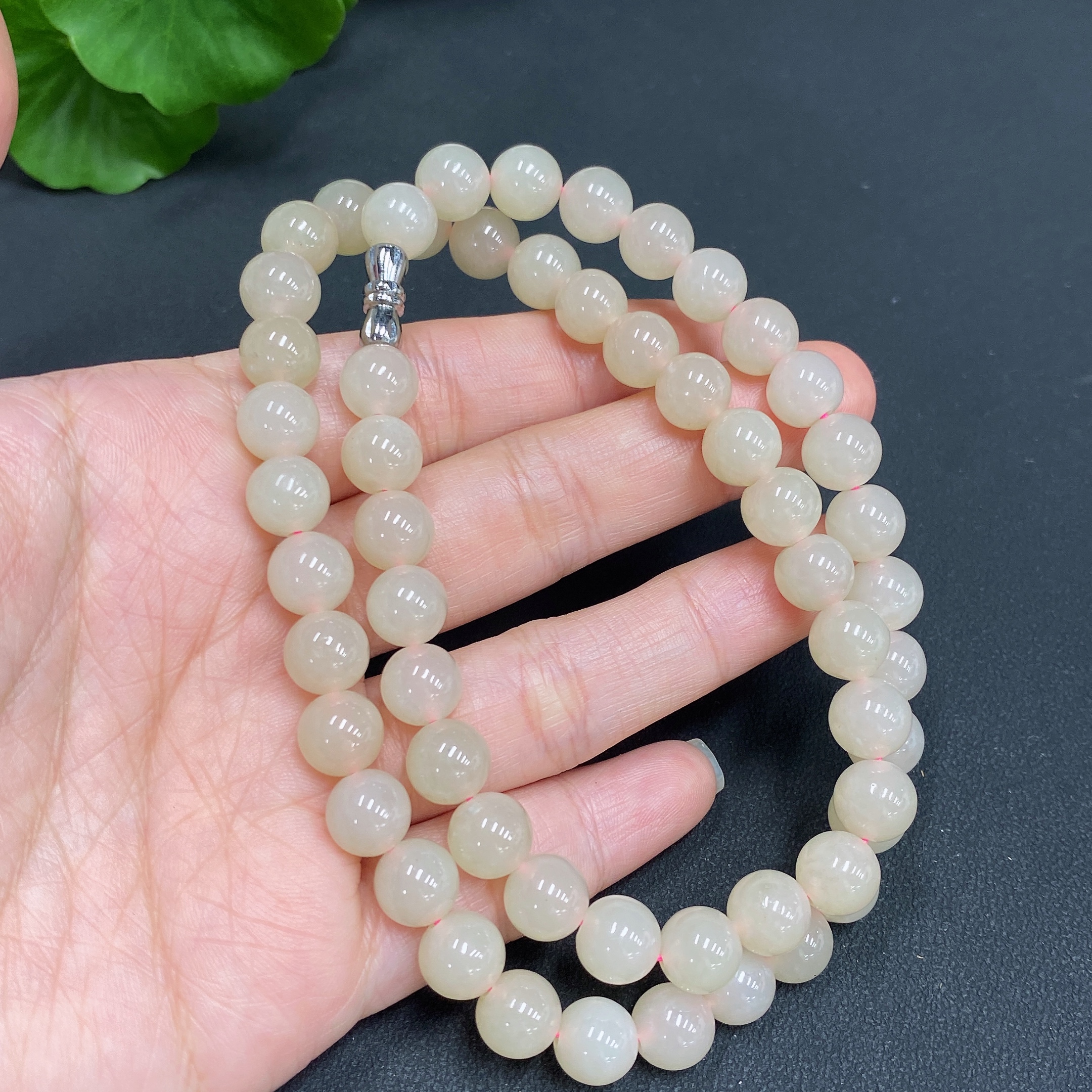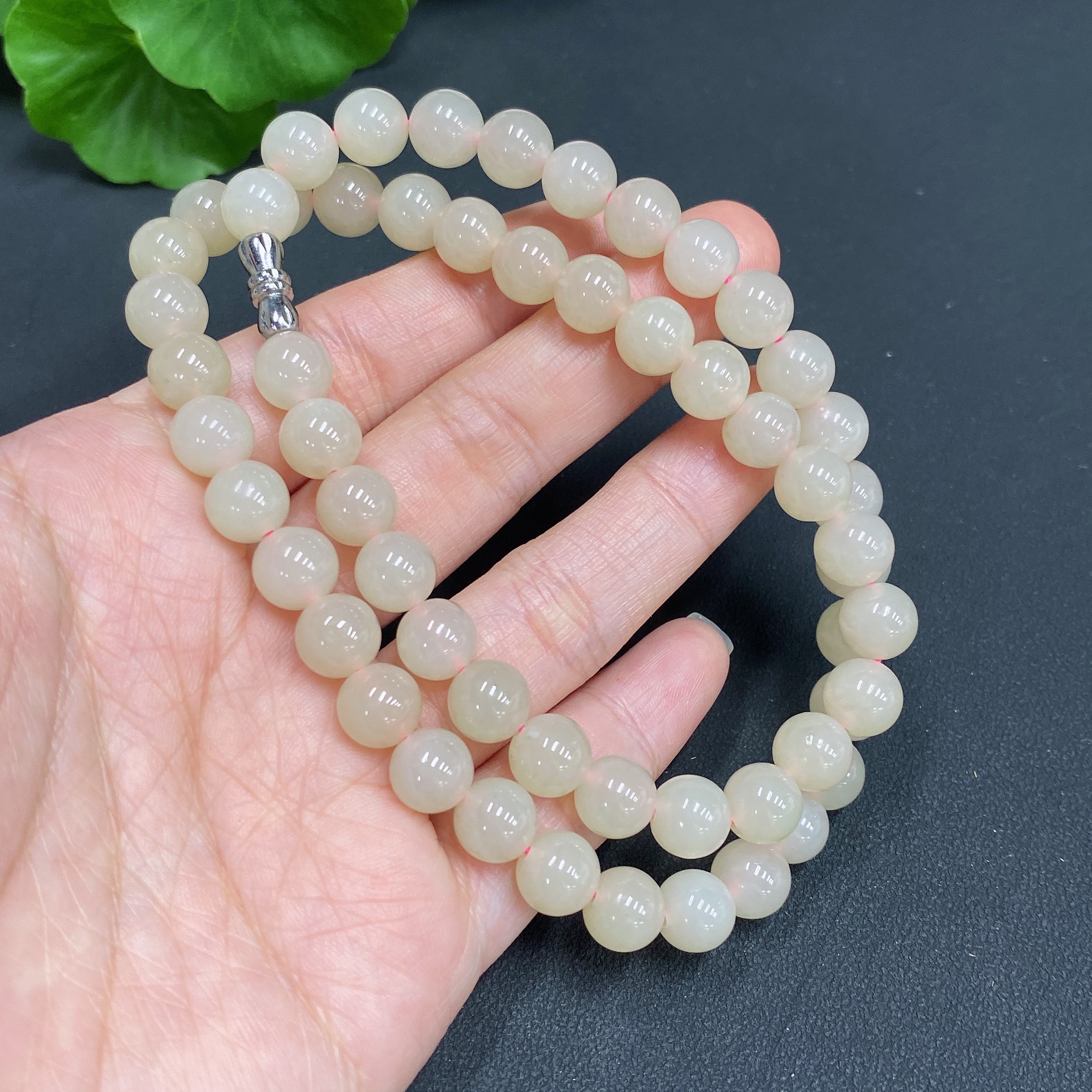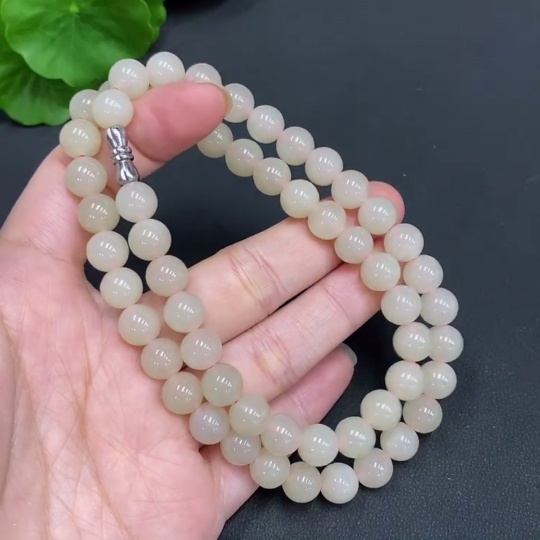 Hetian Jade Bead Necklace, approx. 7.5mm, total weight approx. 42.9g