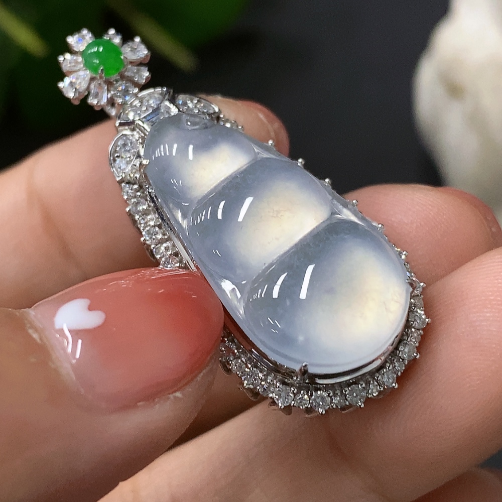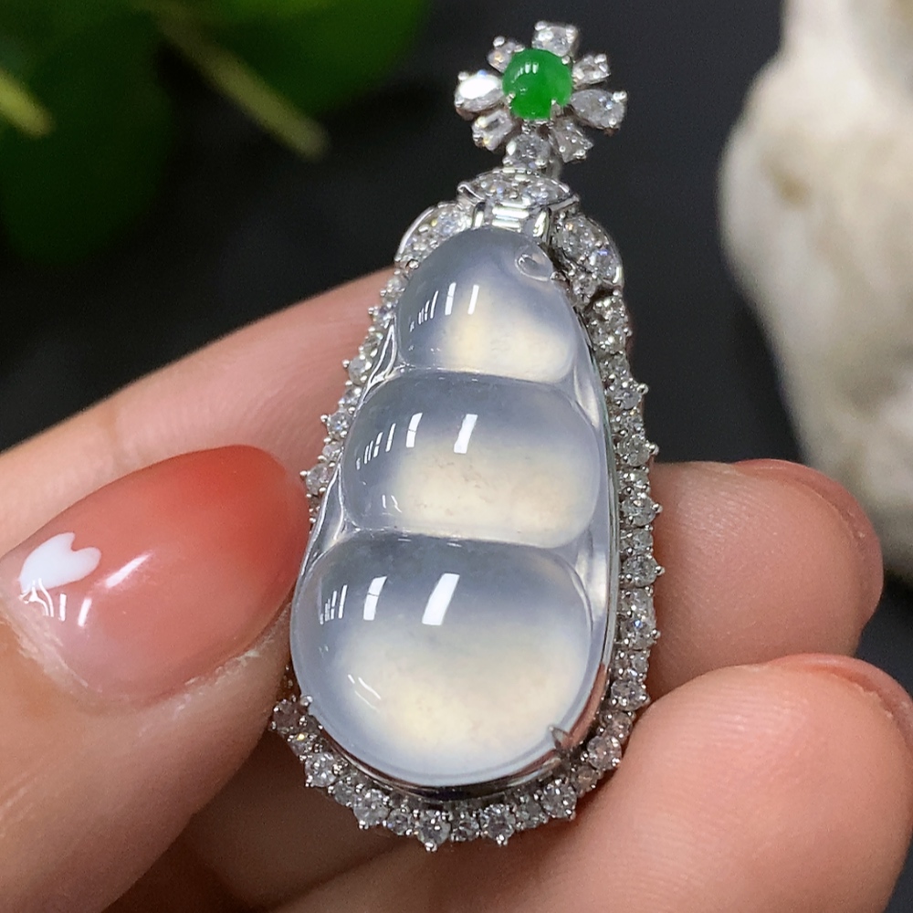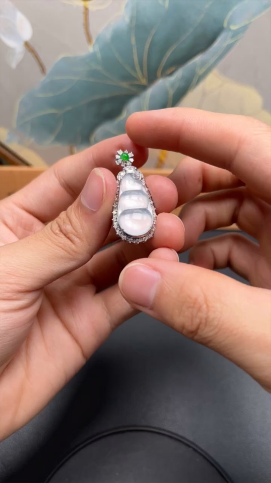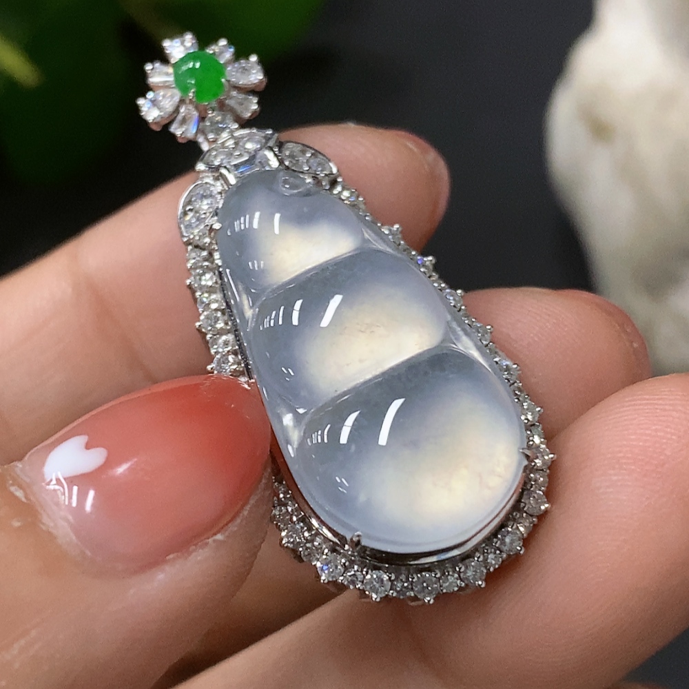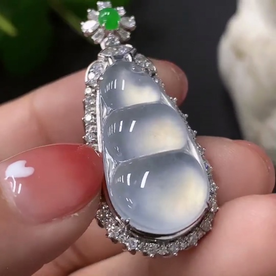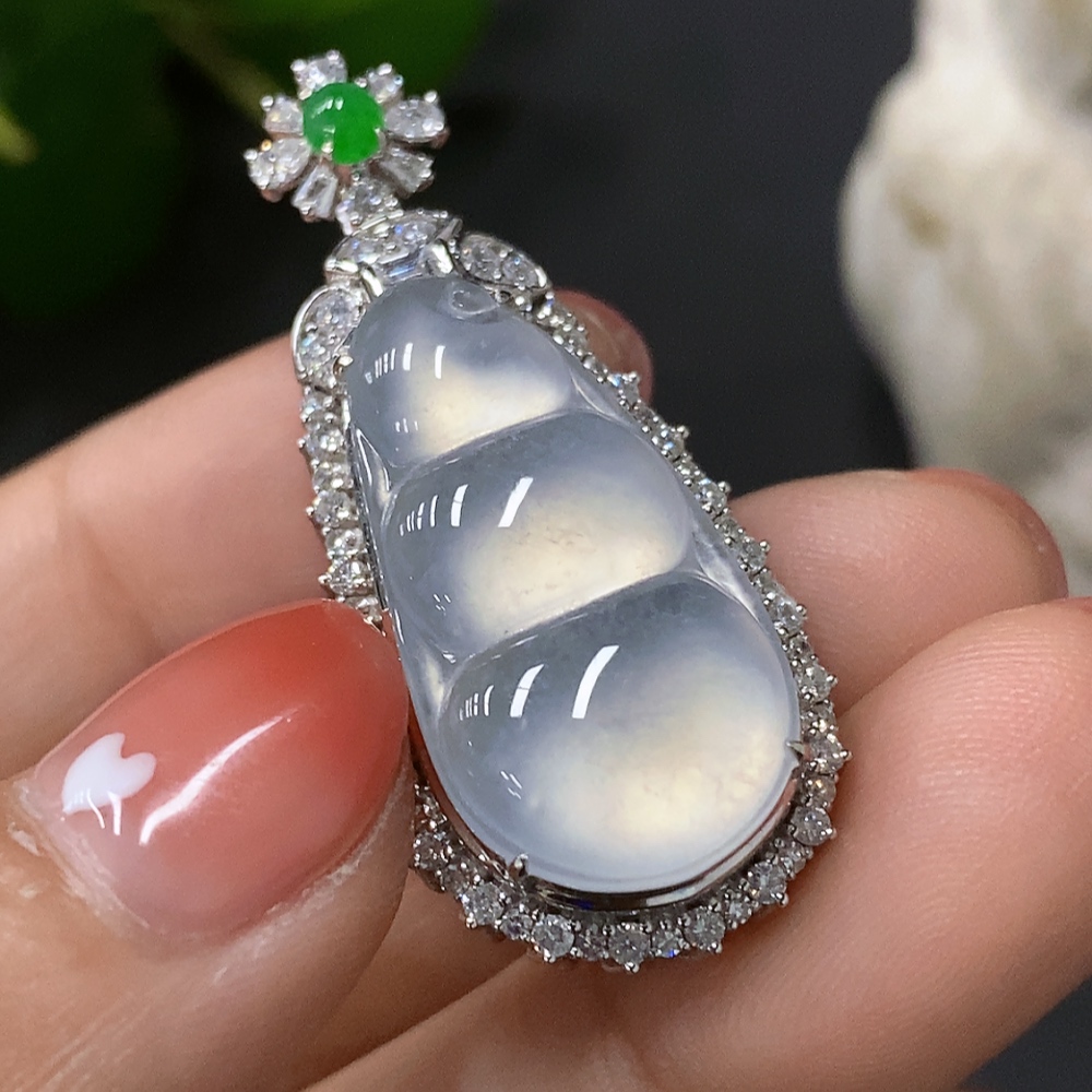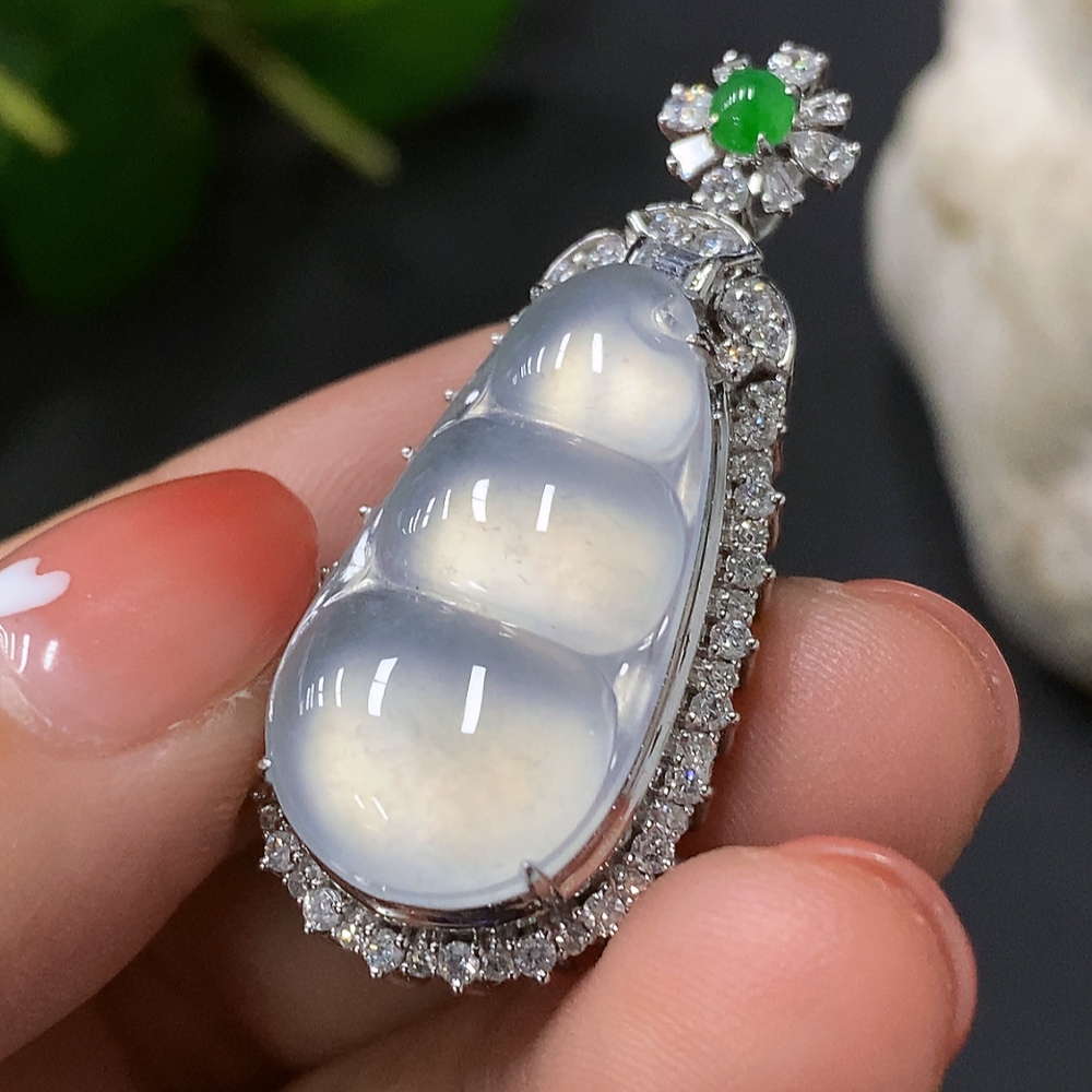 Emerald Bean Pendant with 18K Gold Setting, Total Weight Approximately 7.8g