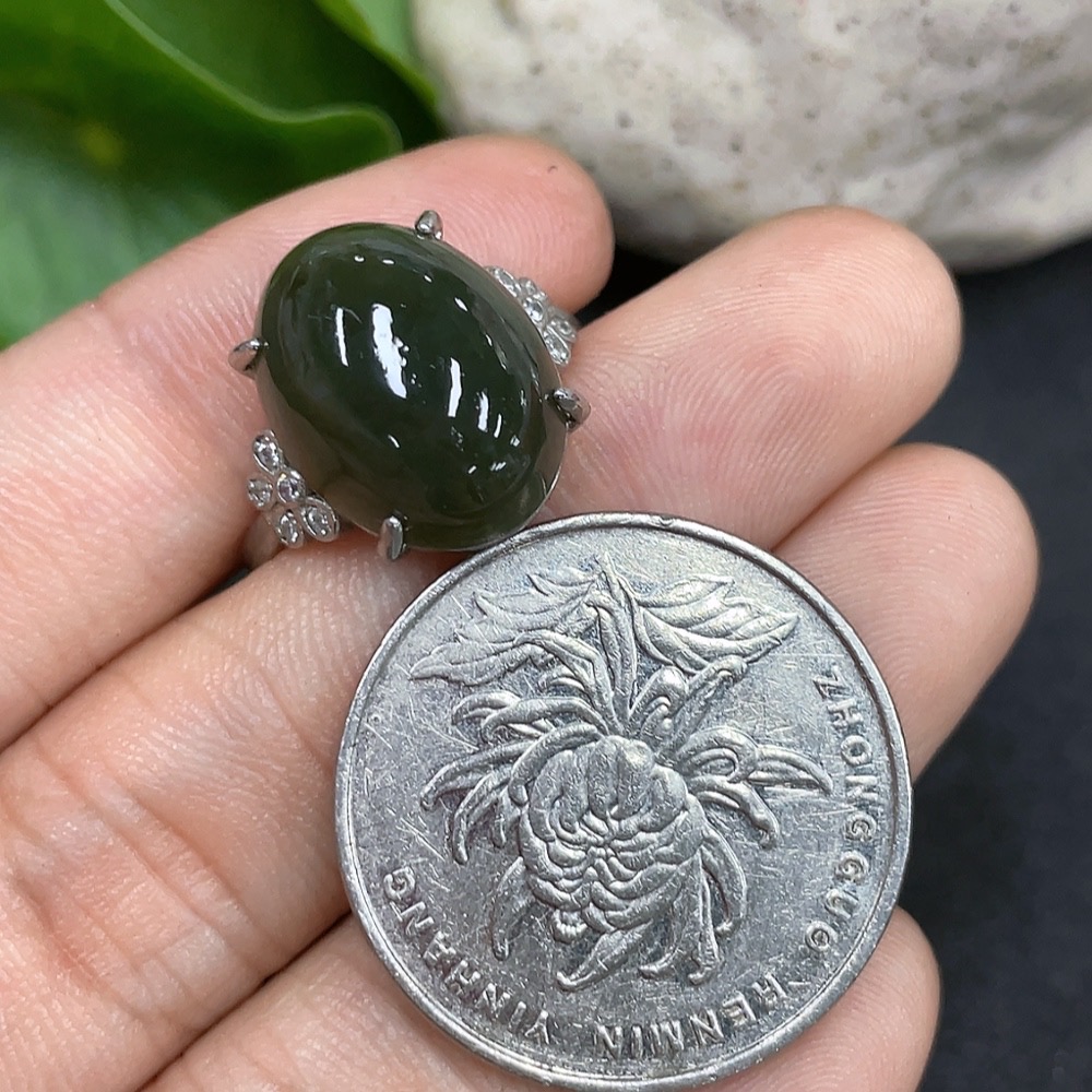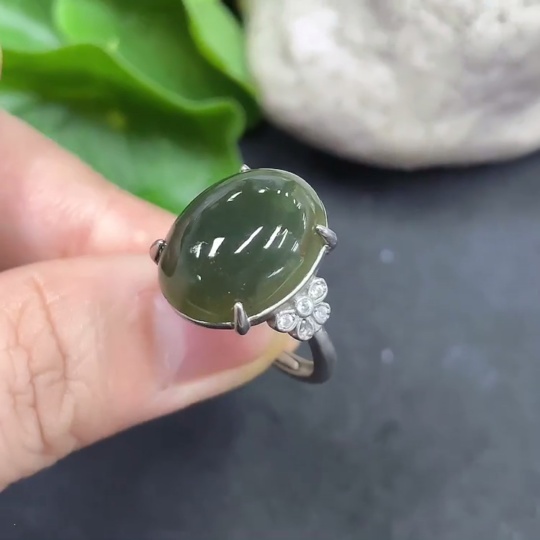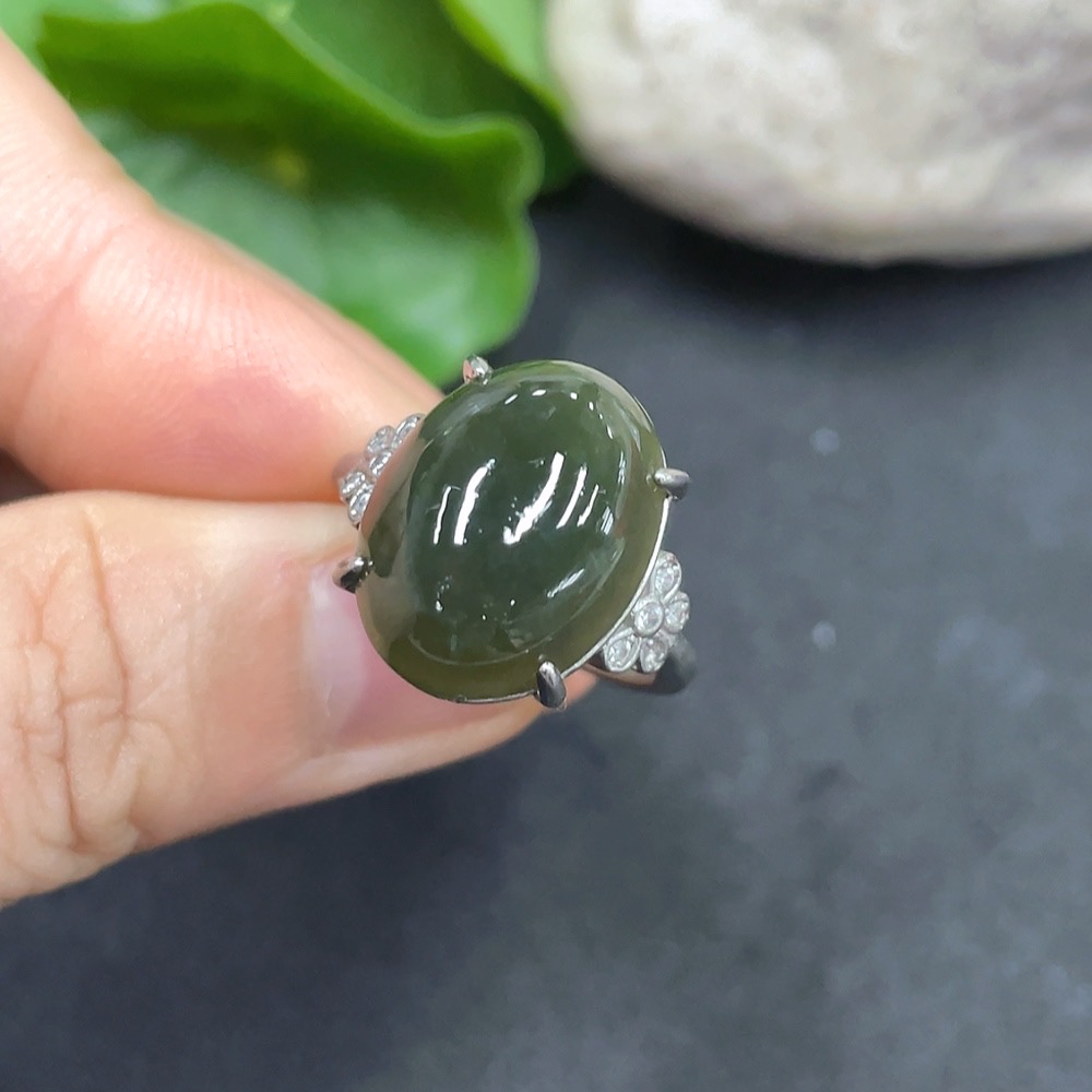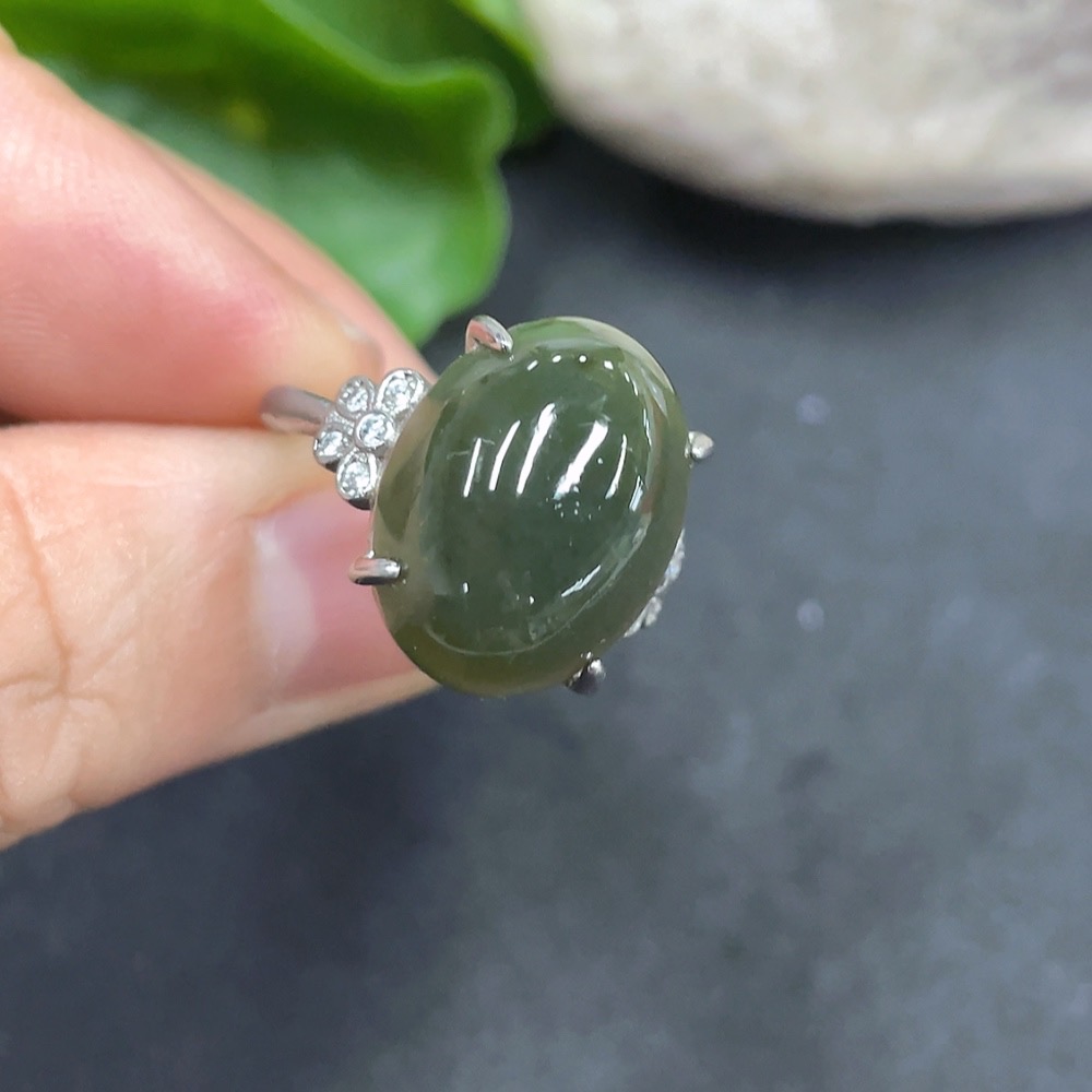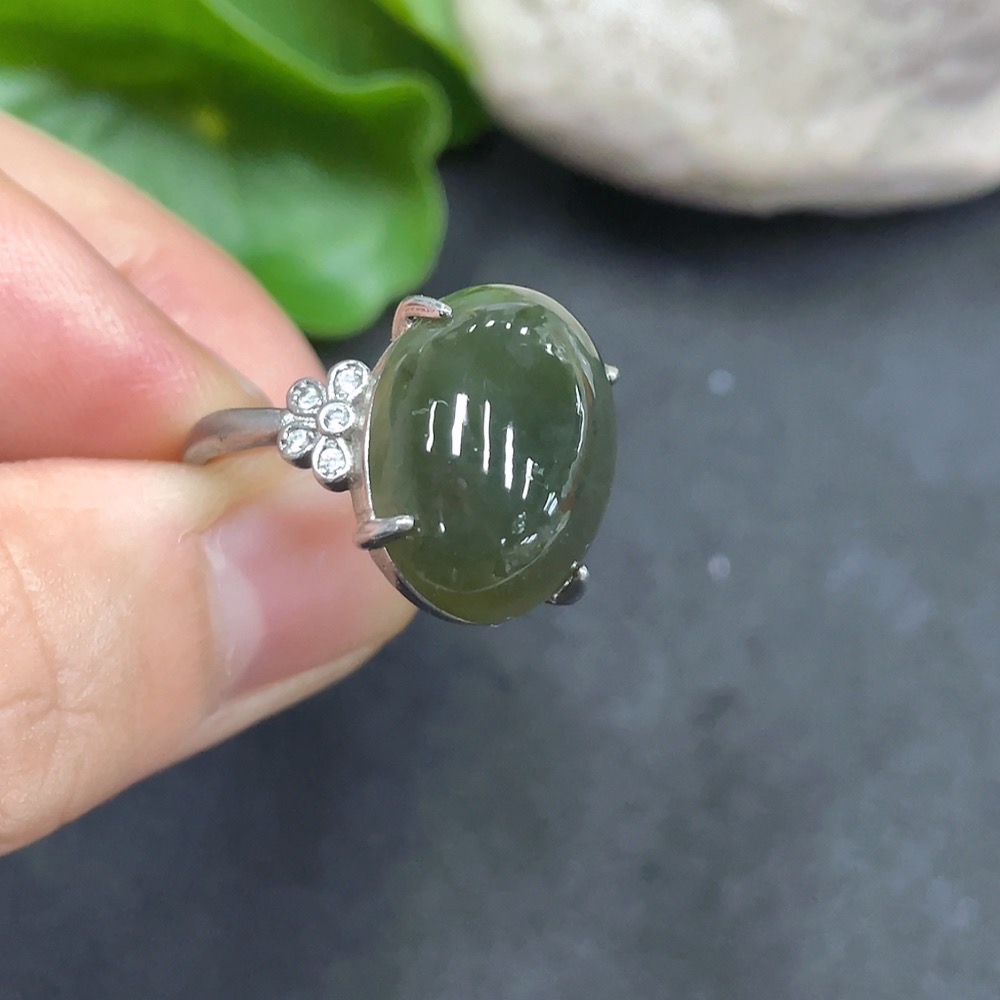 Khotan Jade Cabochon Ring with Adjustable Band, Non-Gold Setting, Total Weight Approx. 3.28g
