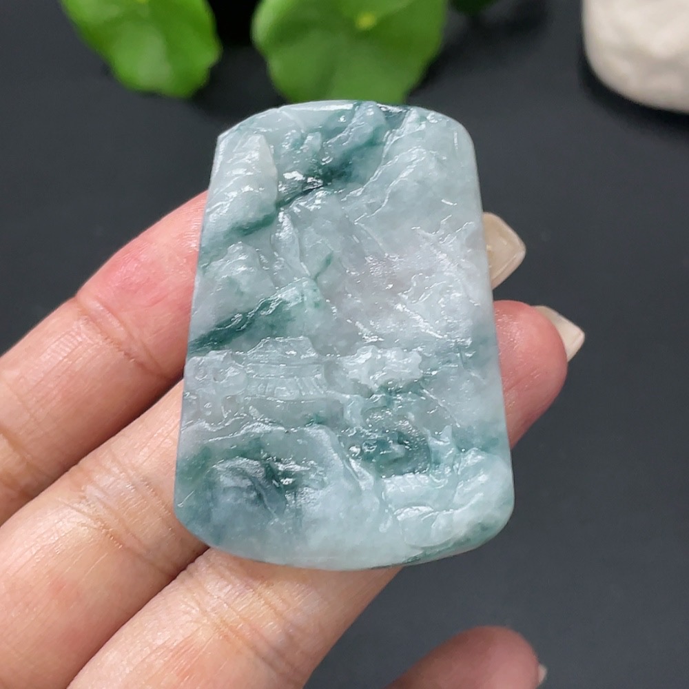 JadeiteRough Landscape Pendant Total Weight 16.995g