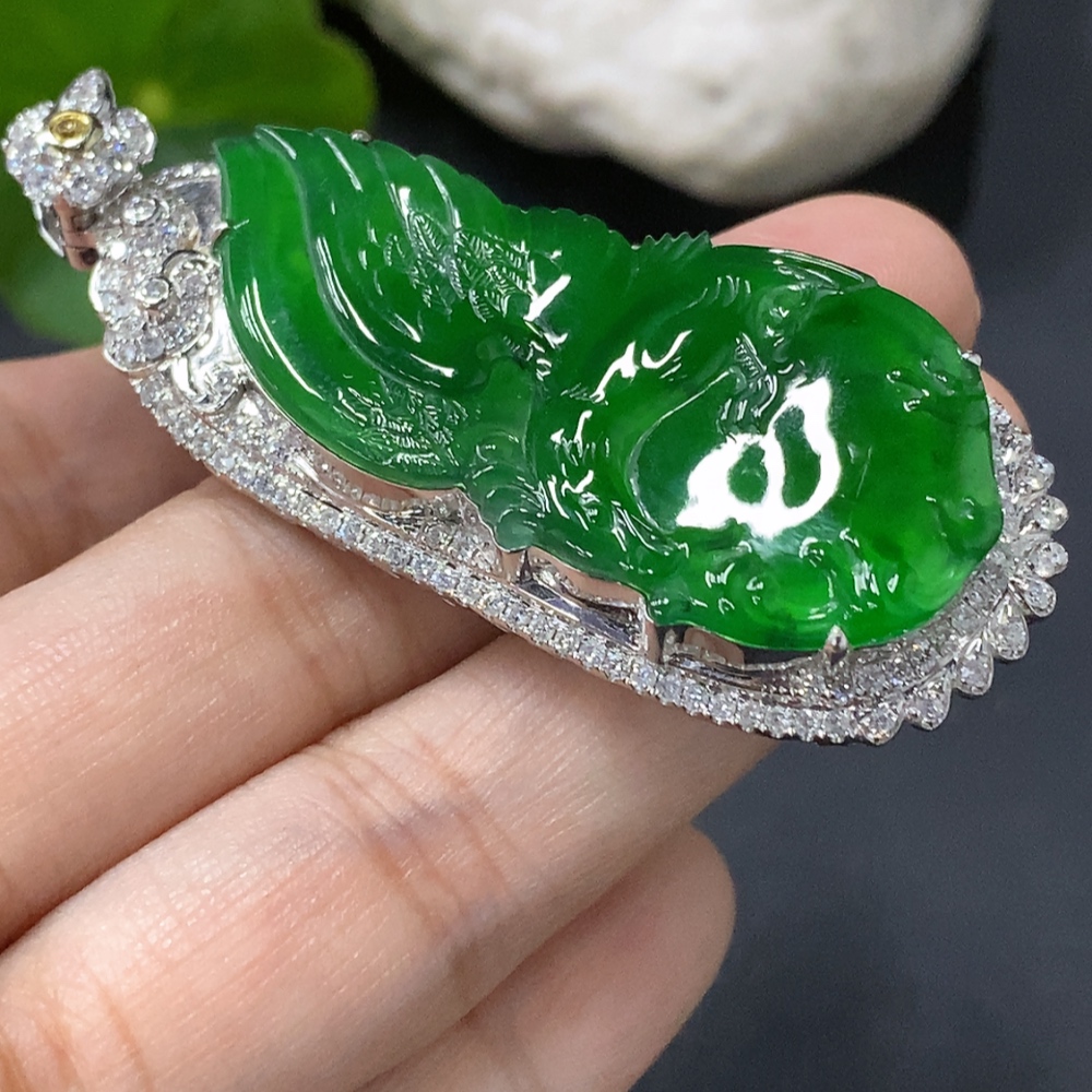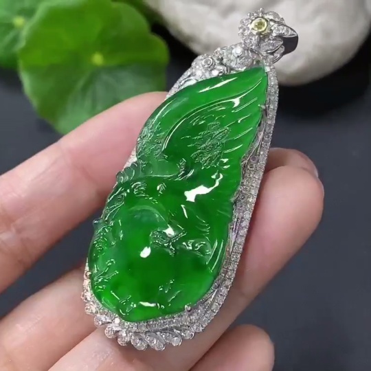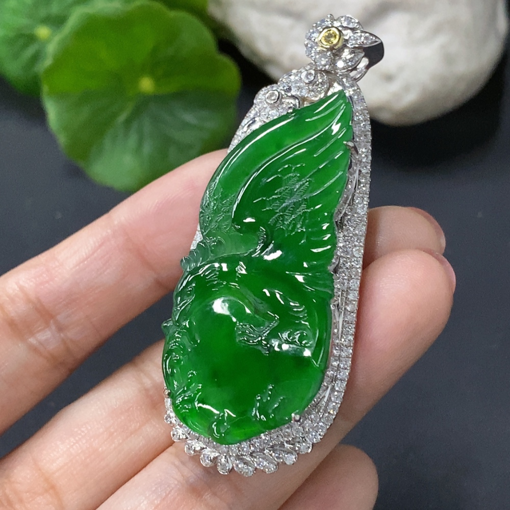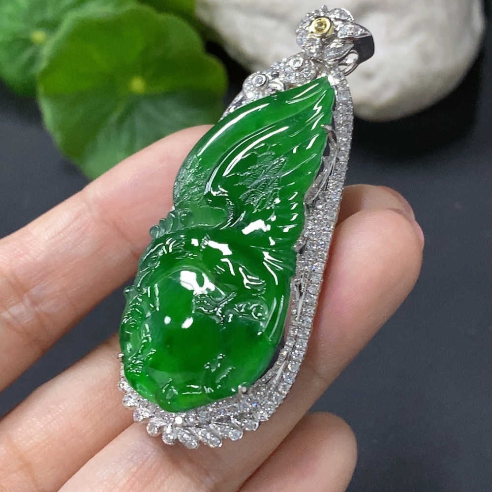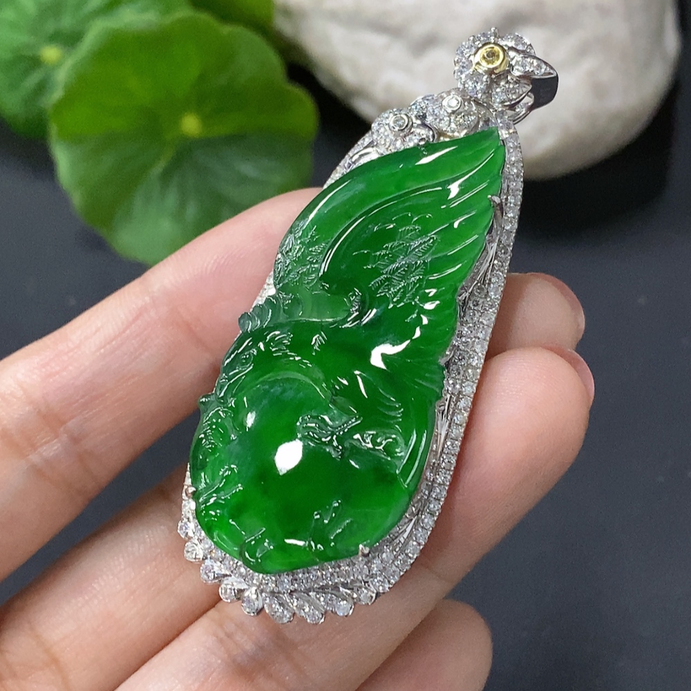 Trezaar - Jadeite Inlaid Pendant Eagle 18K Gold Inlaid Total Weight Approx. 14.8g