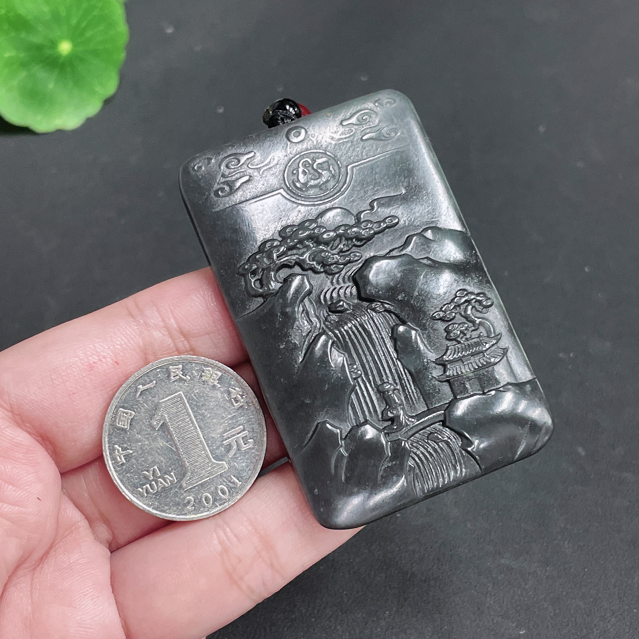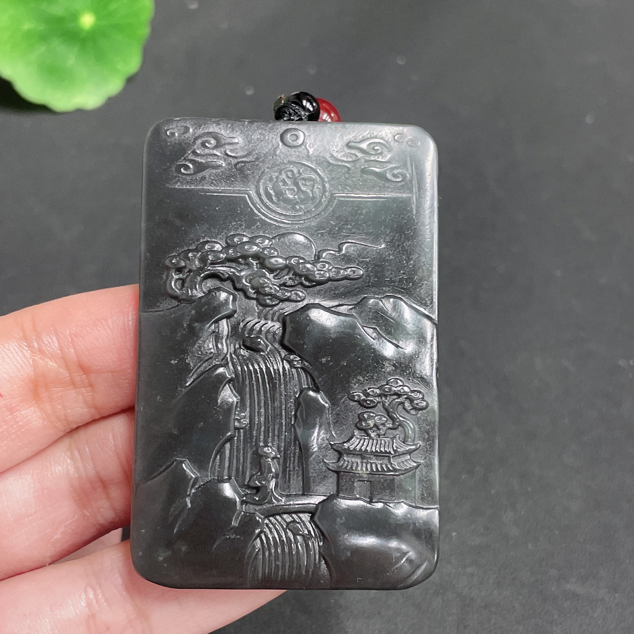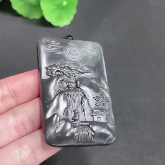 Hetian Jade Pendant - Landscape Plaque, with Cord, Total Weight 49.04g