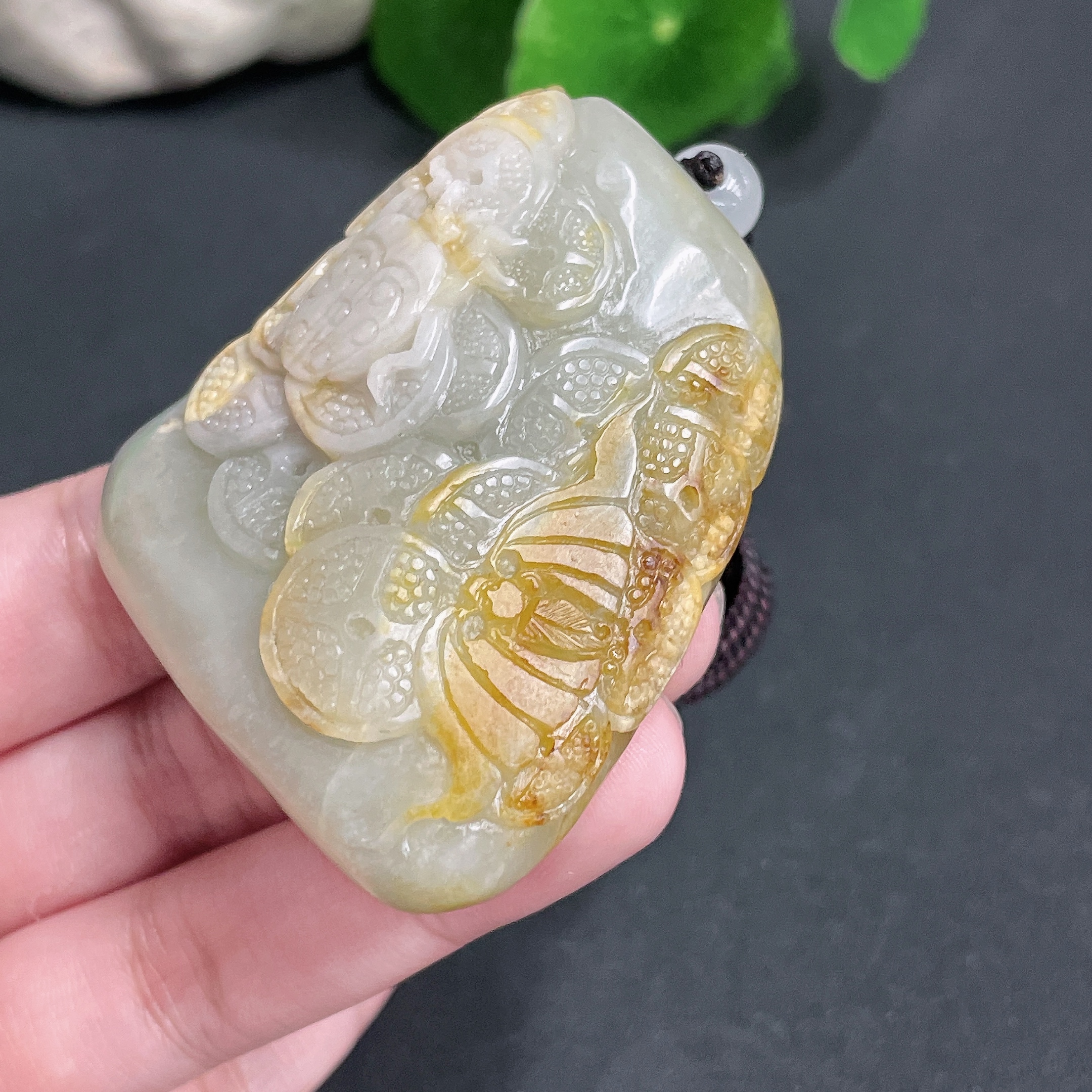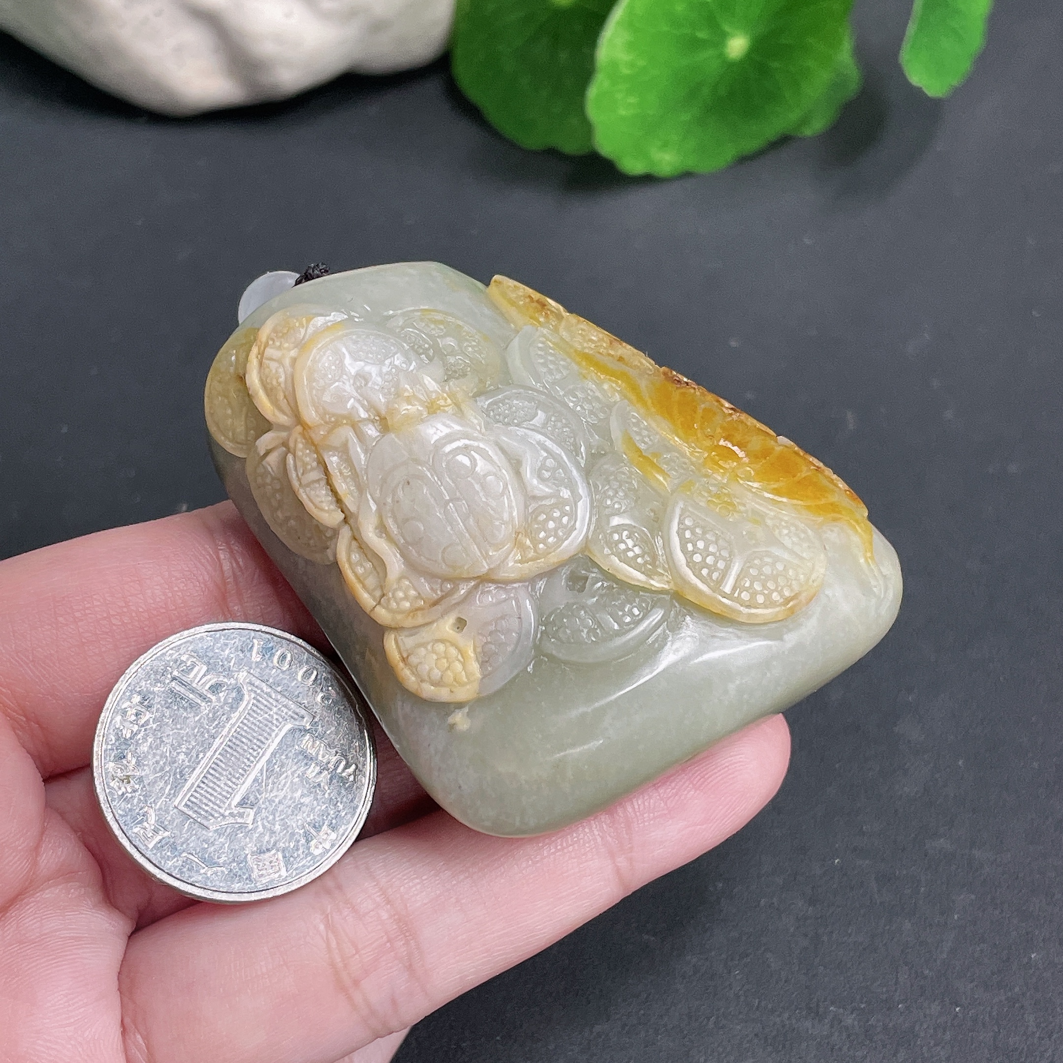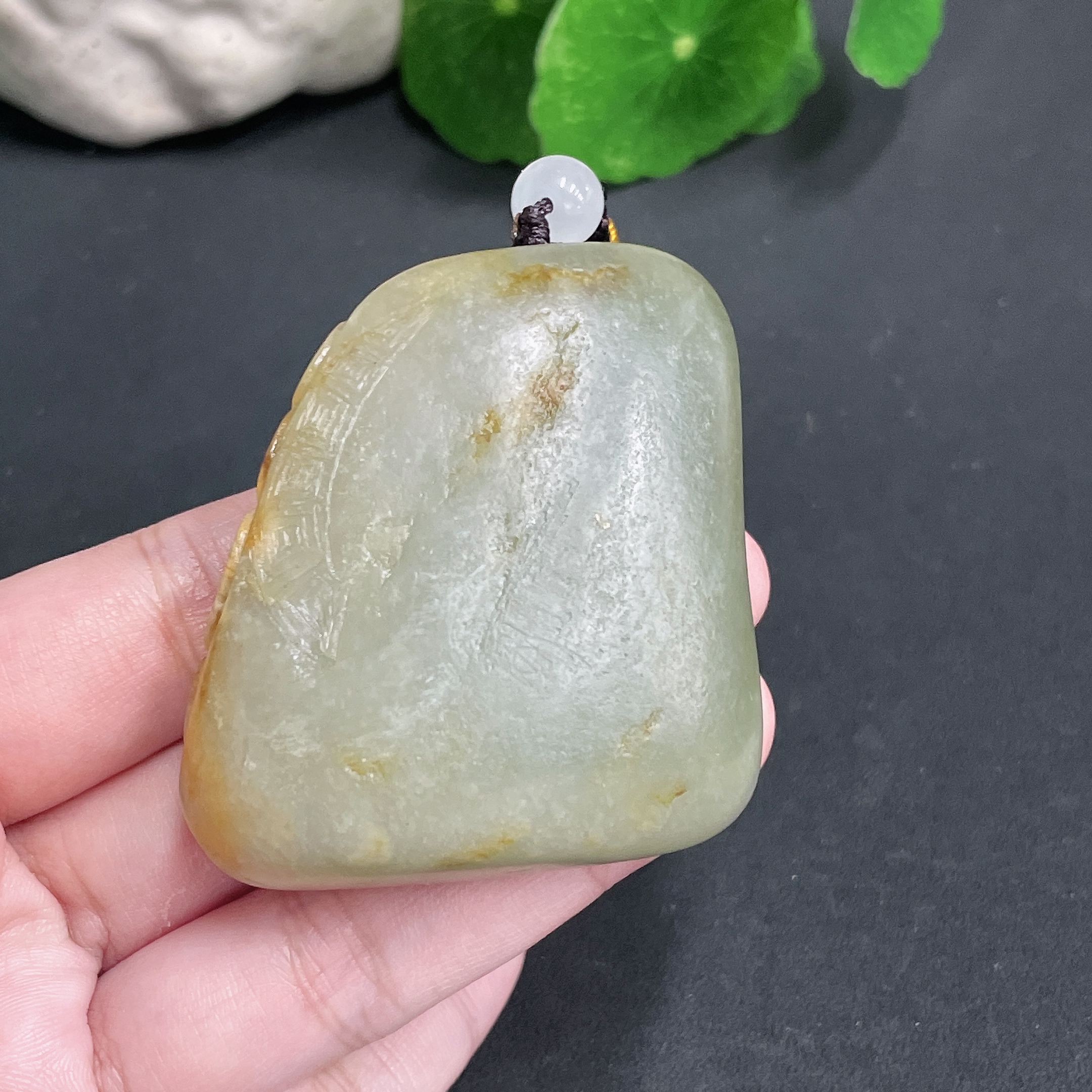 Hetian Jade Handheld Piece 'Wealth Encompassing the World' with cord, total weight 111.16g, undetermined skin color origin
