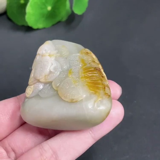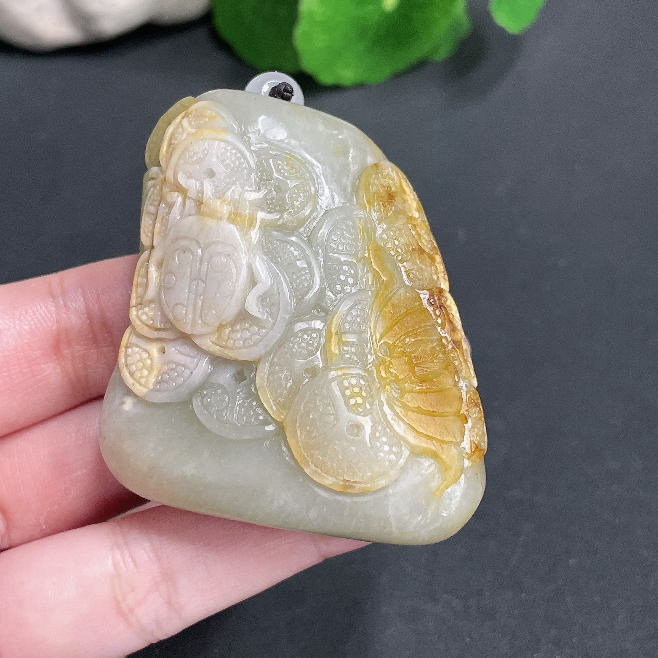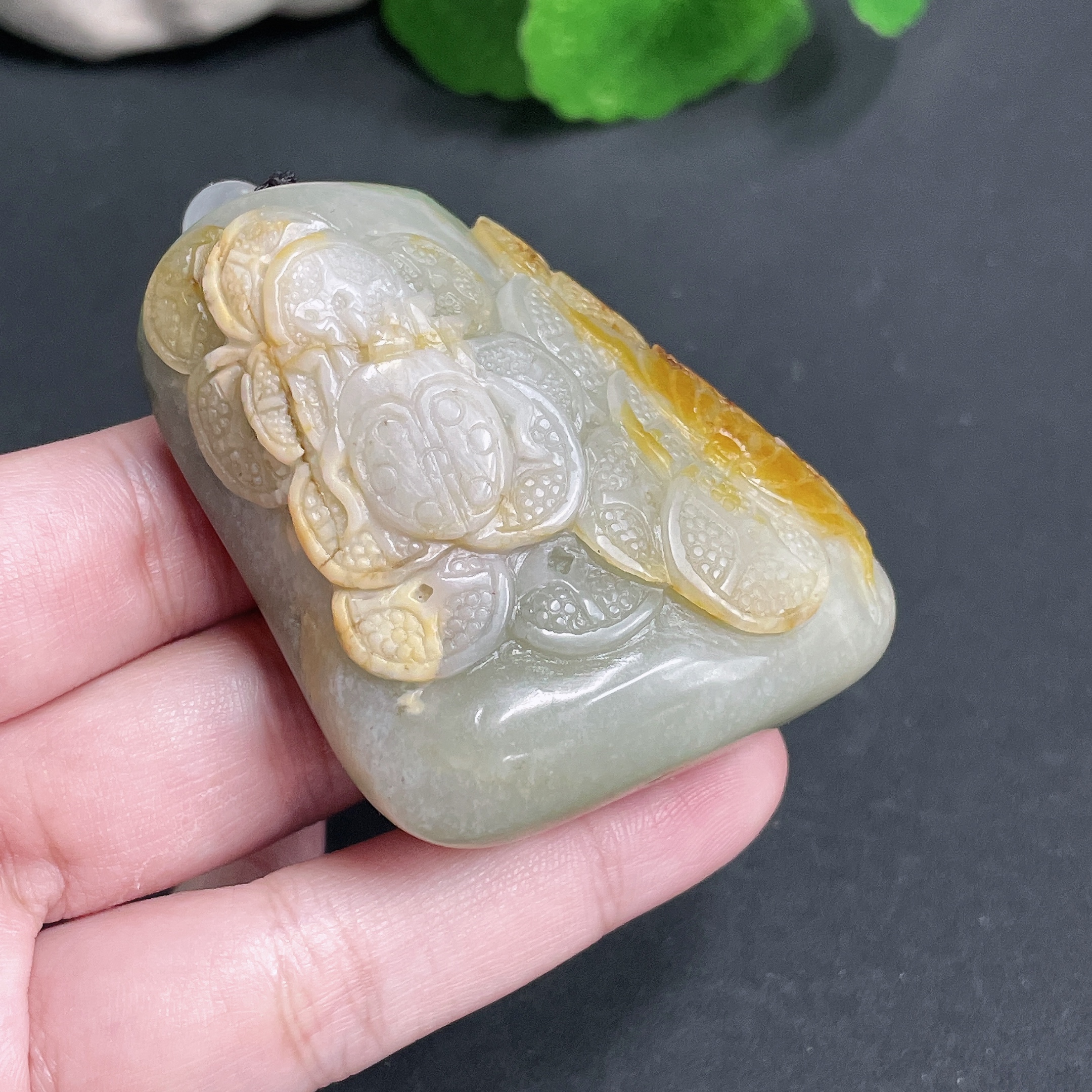 Hetian Jade Handheld Piece 'Wealth Encompassing the World' with cord, total weight 111.16g, undetermined skin color origin