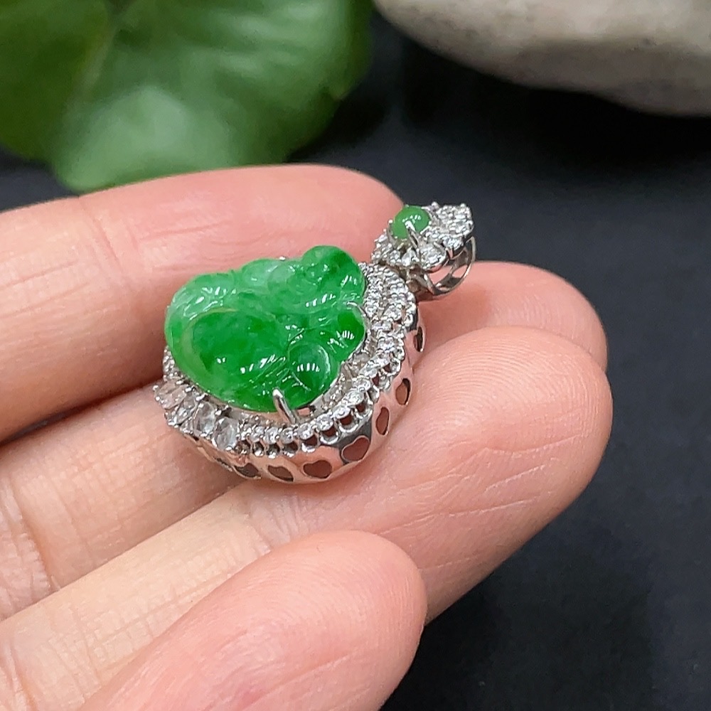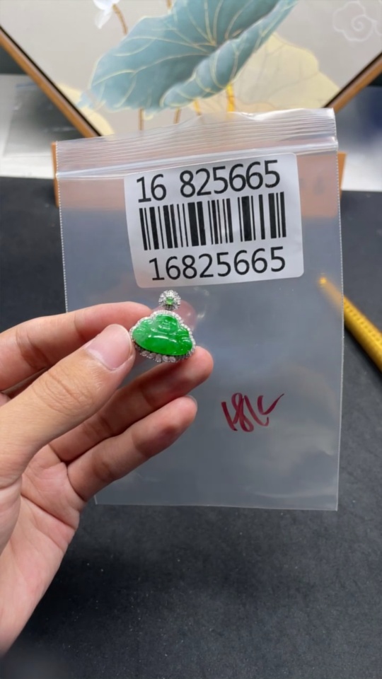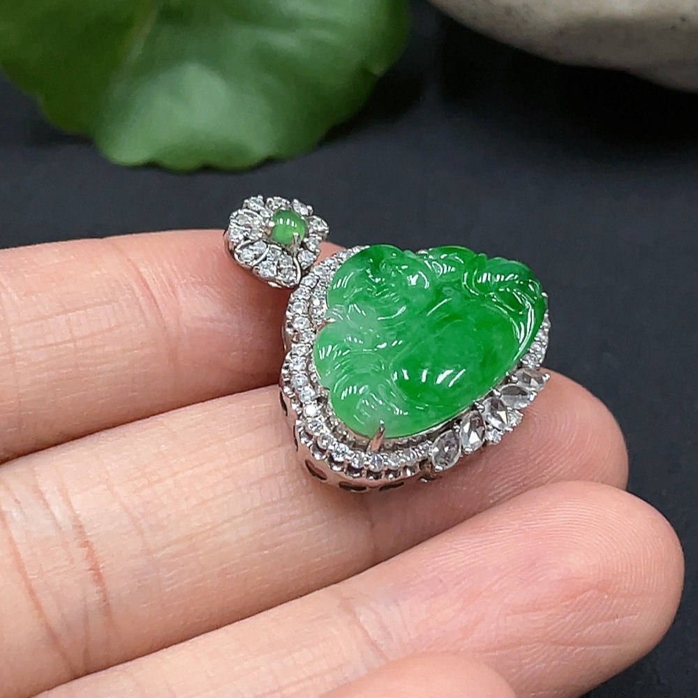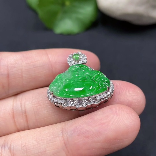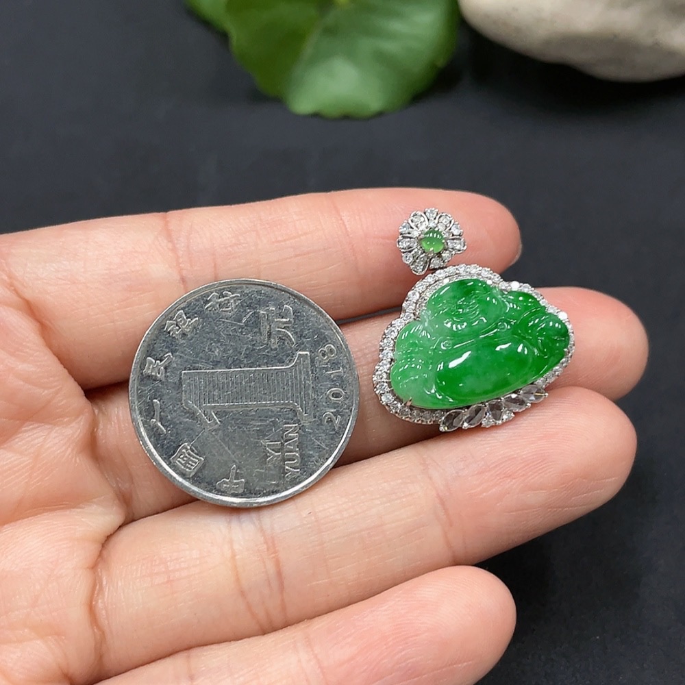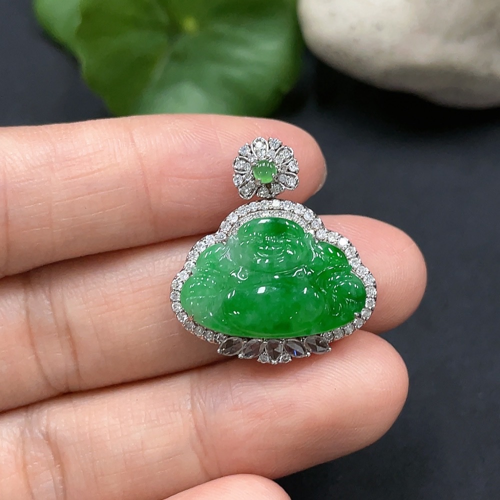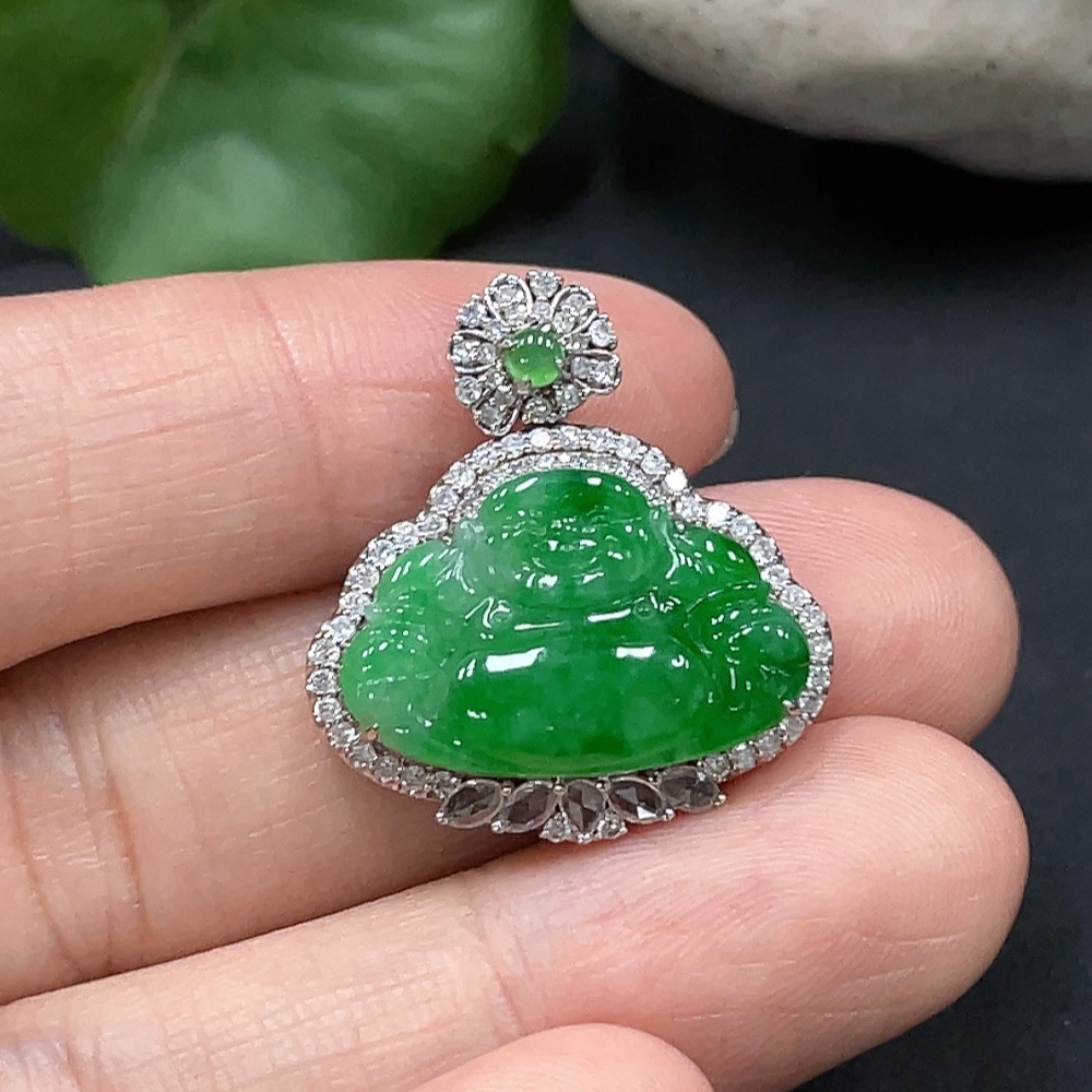 JadeiteBuddha Pendant, 18K Gold Inlaid, Total Weight Approx. 4.37g