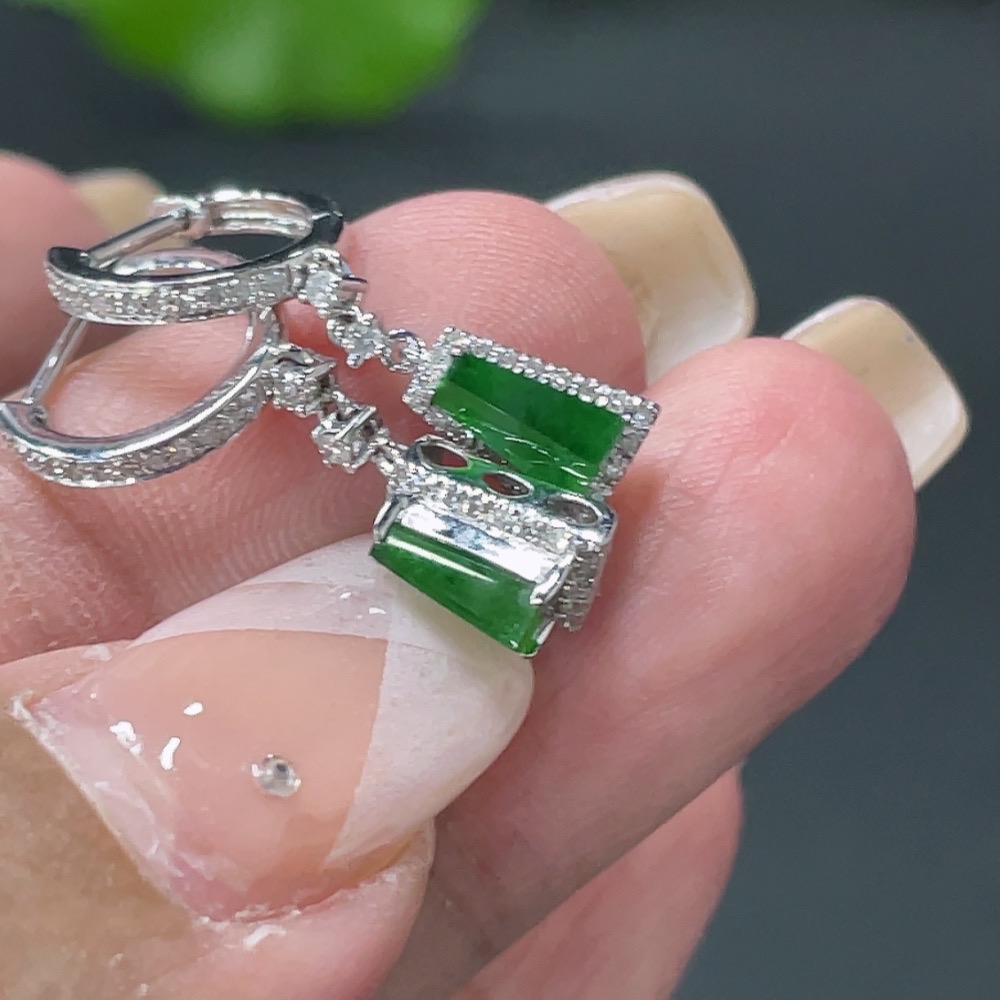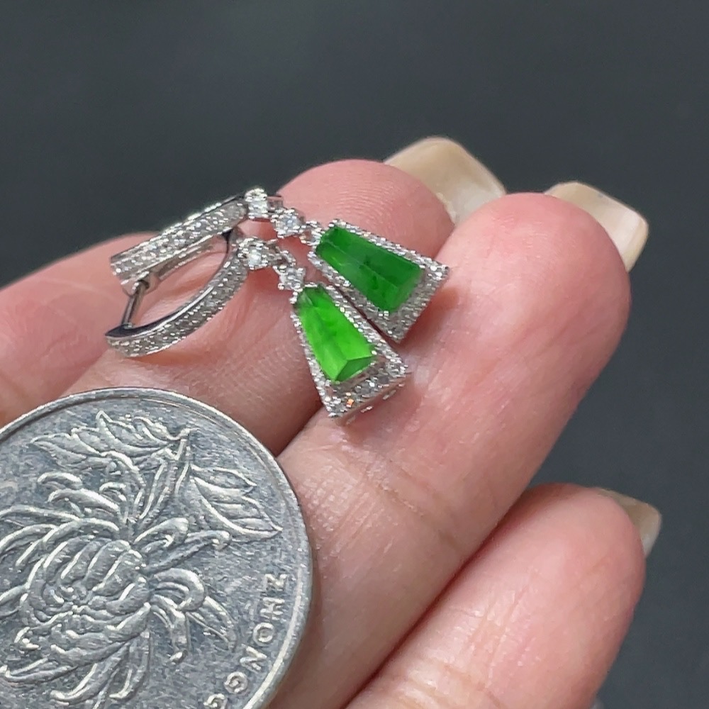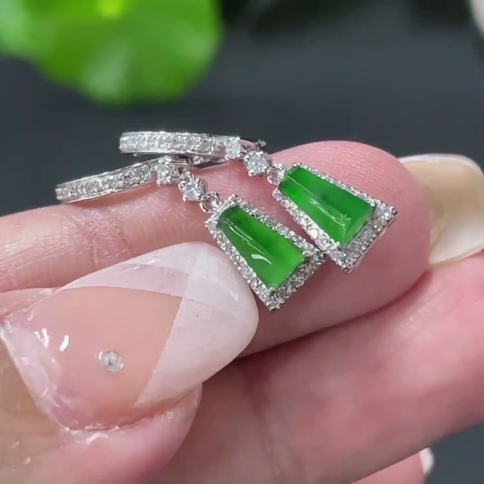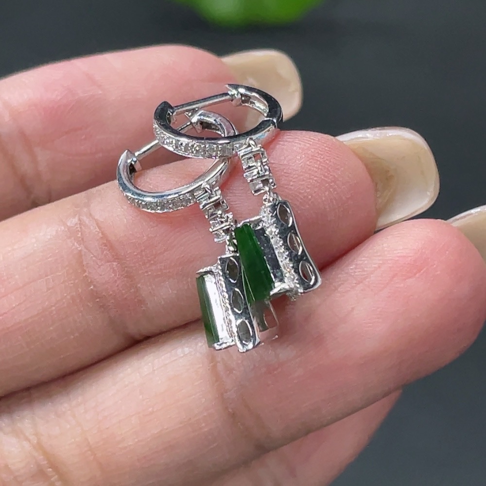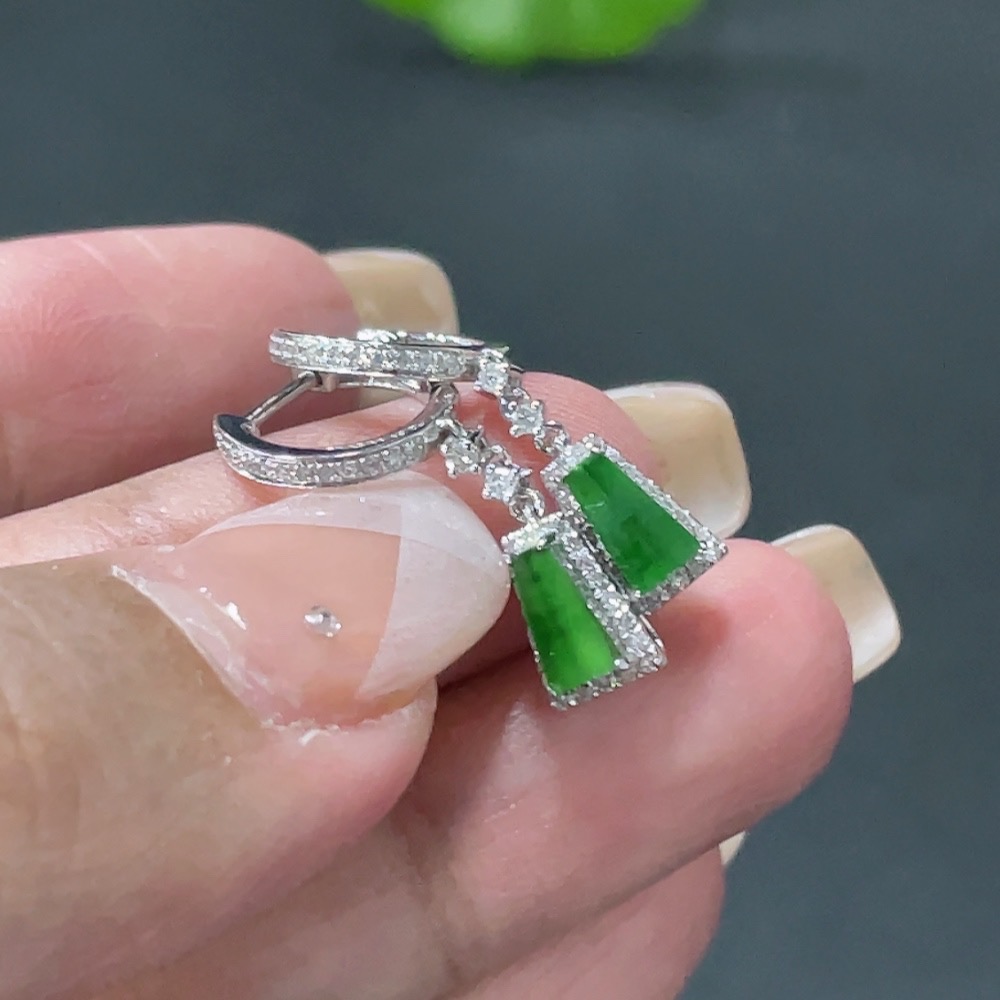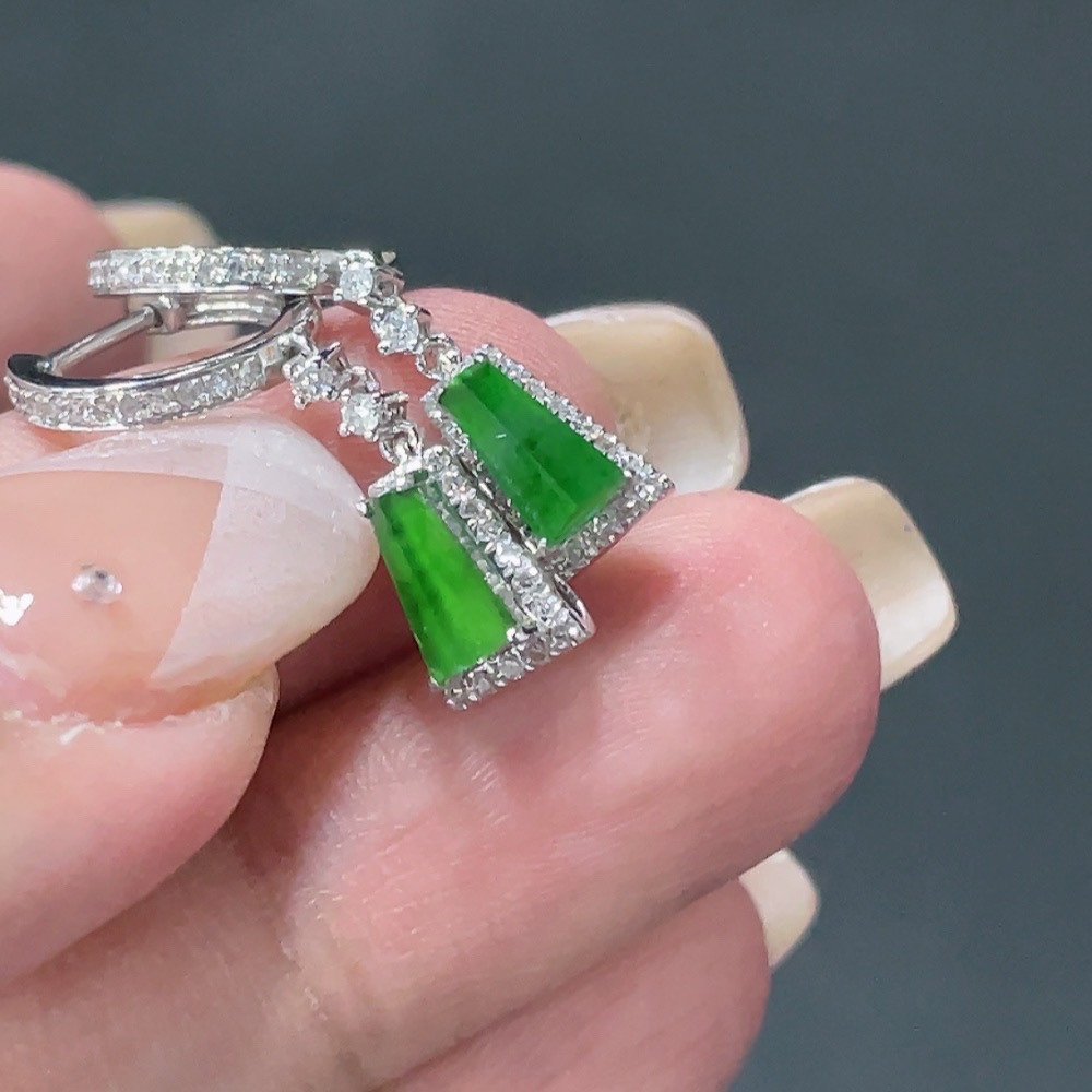 A pair of jadeite inlaid ear clips, set in 18k gold, approximately 2.52g