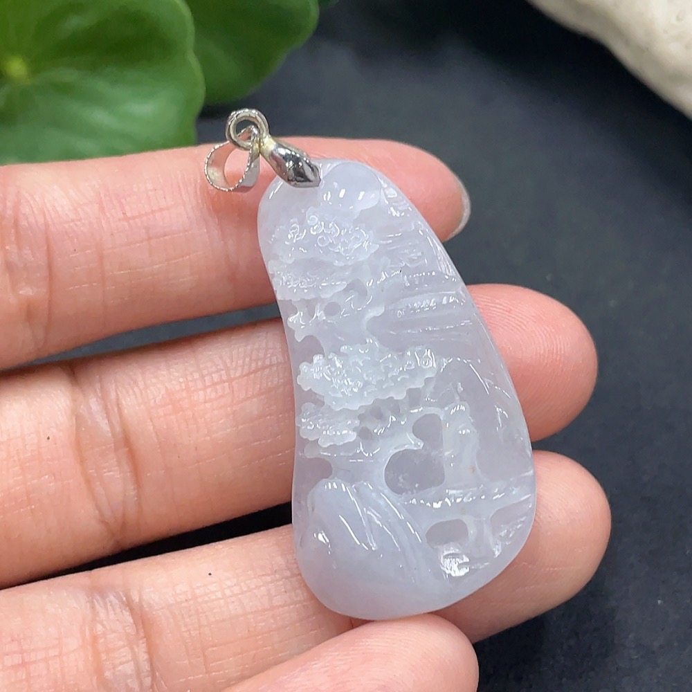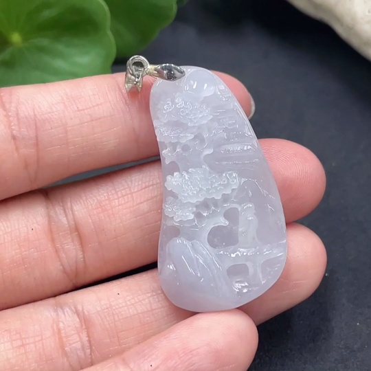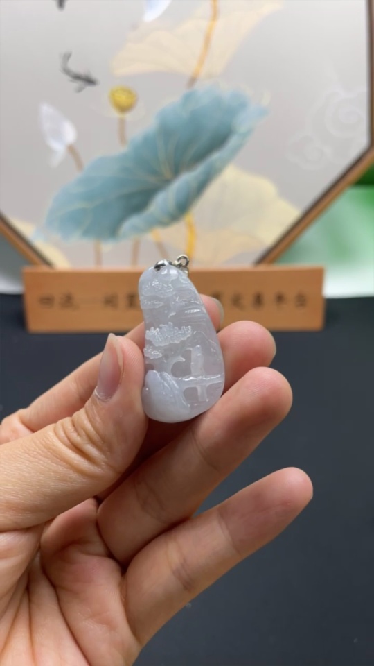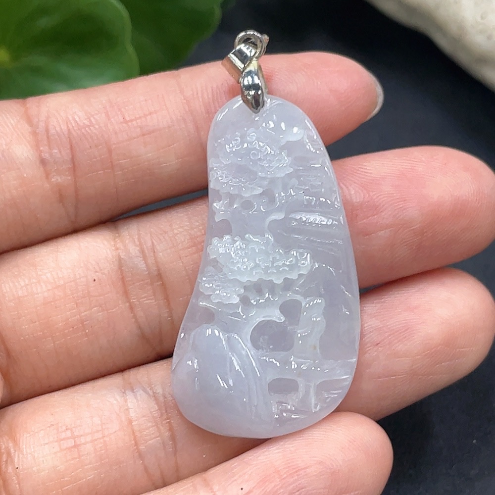 Jadeitelandscape pendant, non-gold inlaid, total weight 10.284g