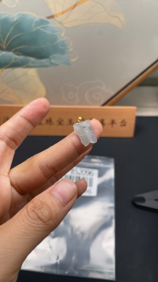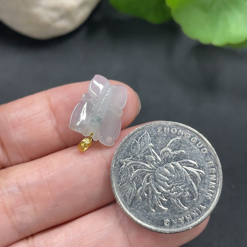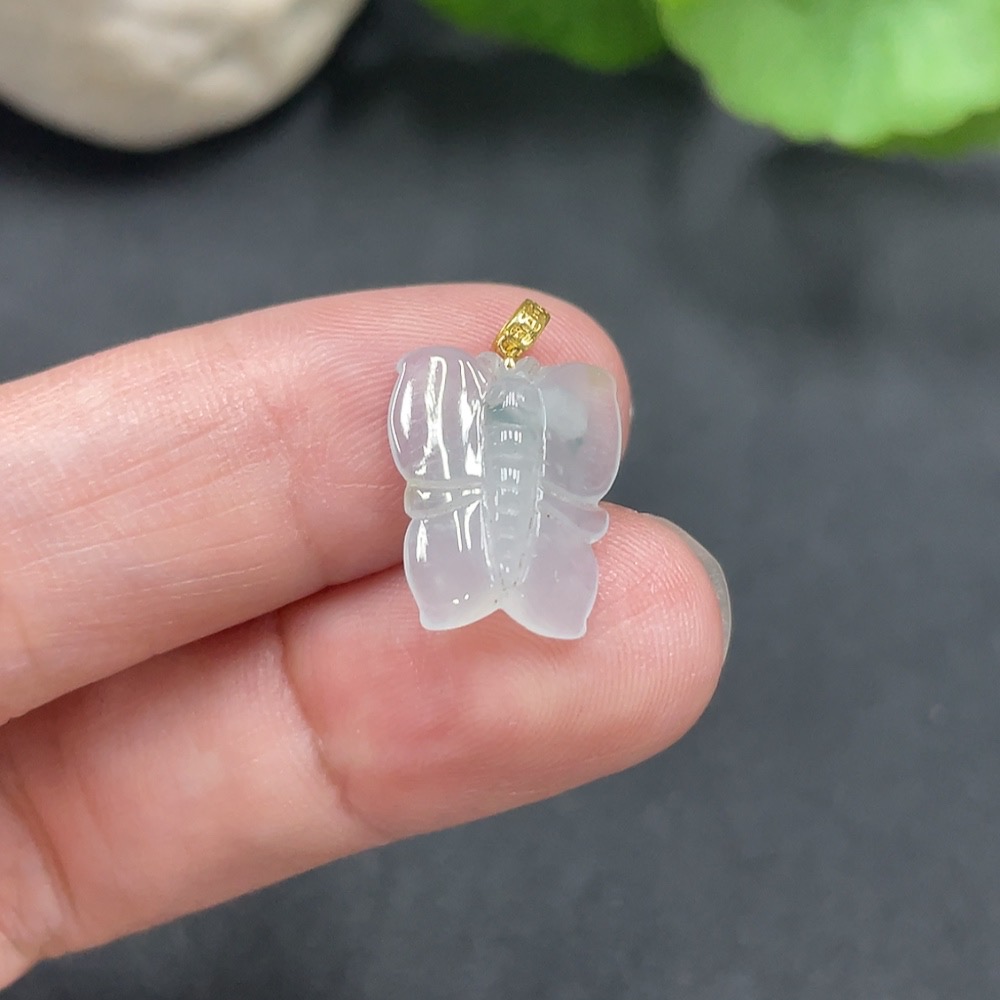 Jadeite Butterfly Pendant with 18K Gold Clasp, Total Weight 1.111g