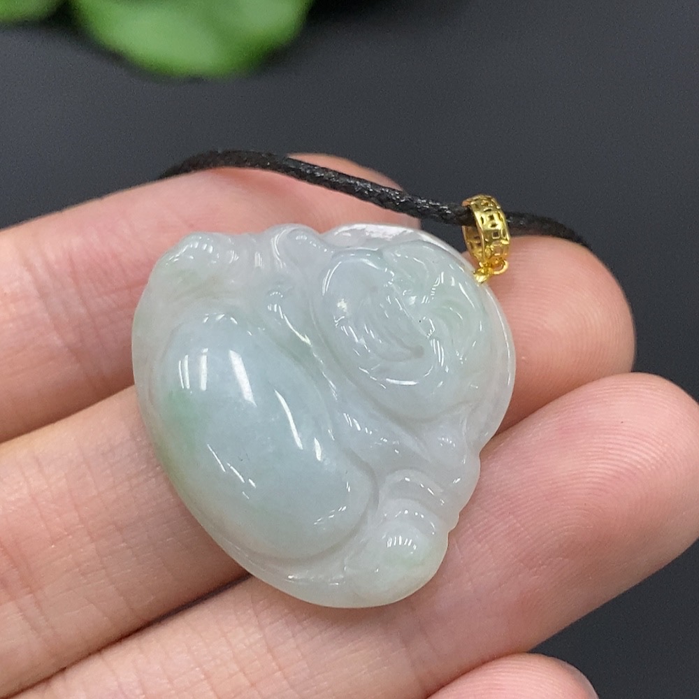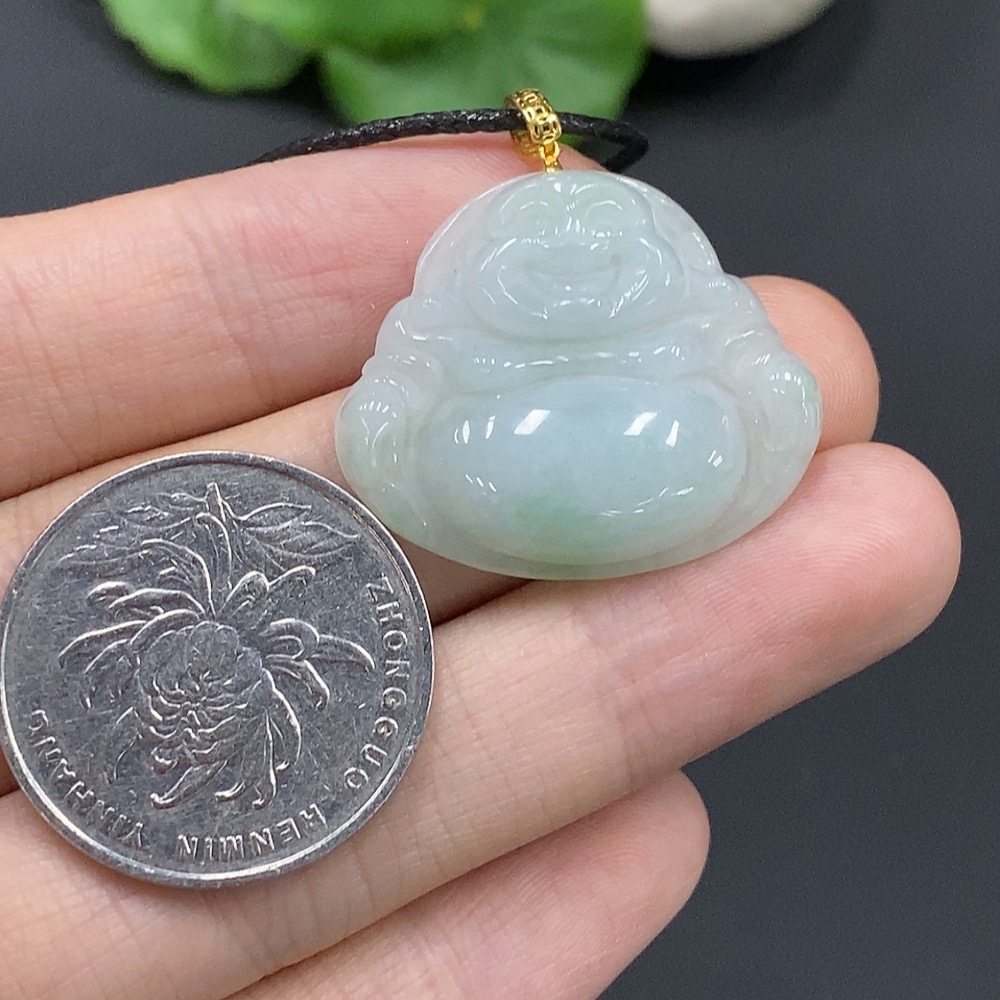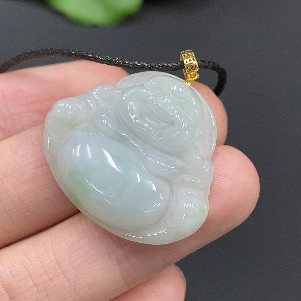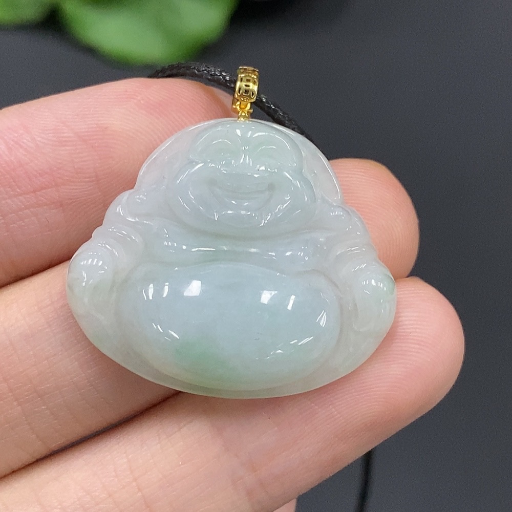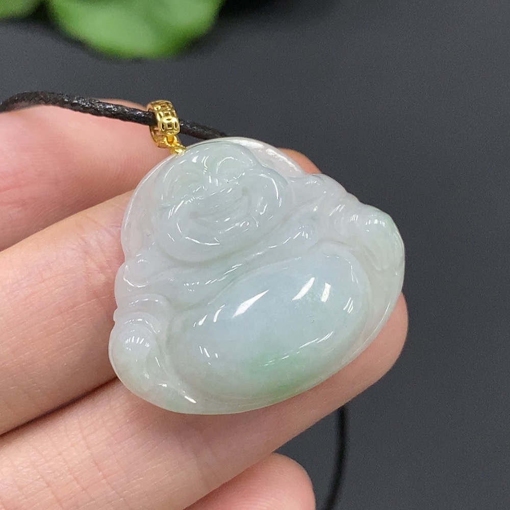 JadeiteBuddha Pendant with 18K Gold Clasp, Total Weight 7.175g