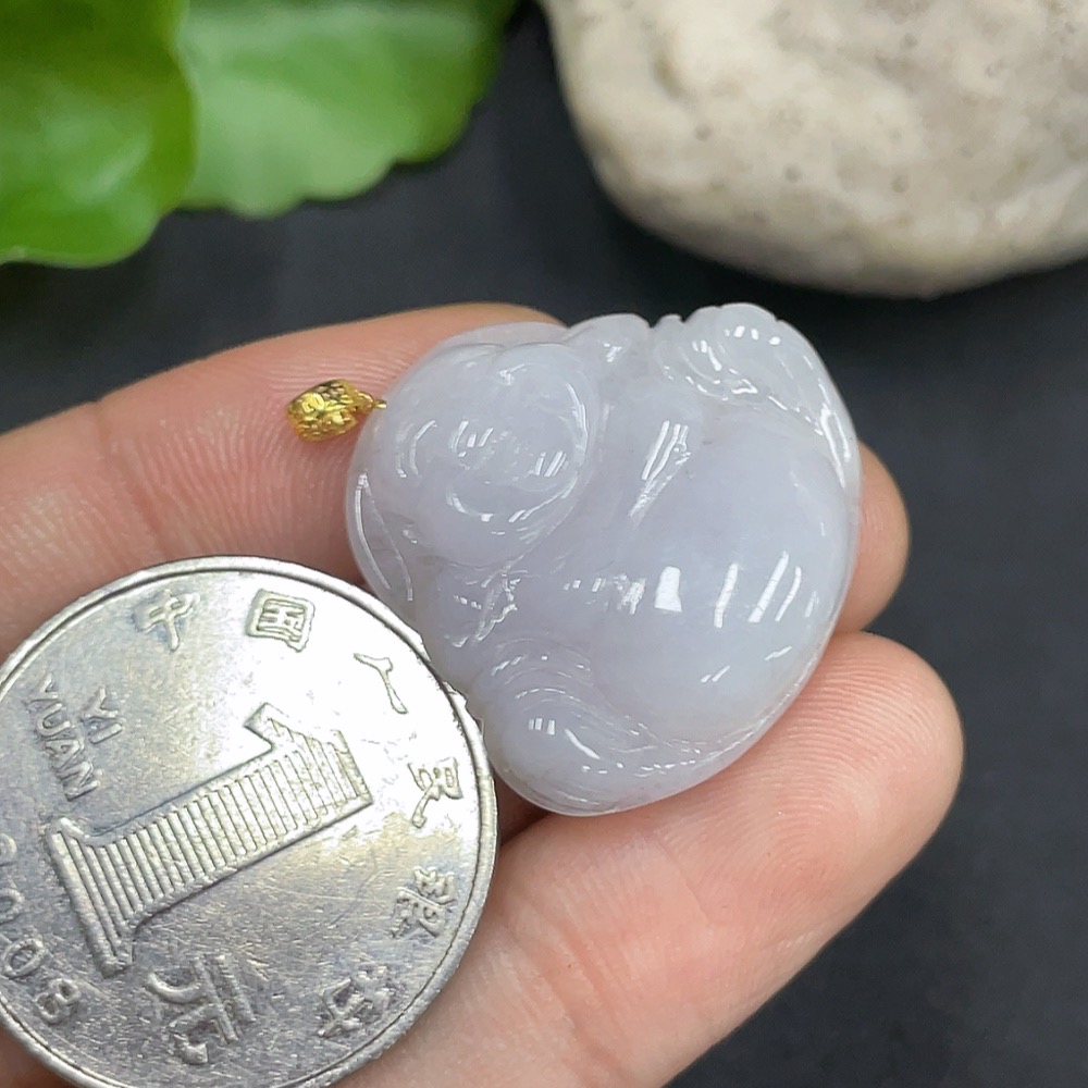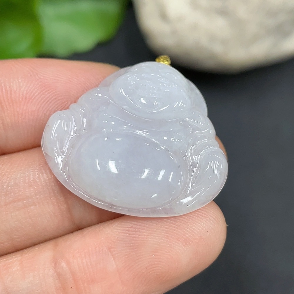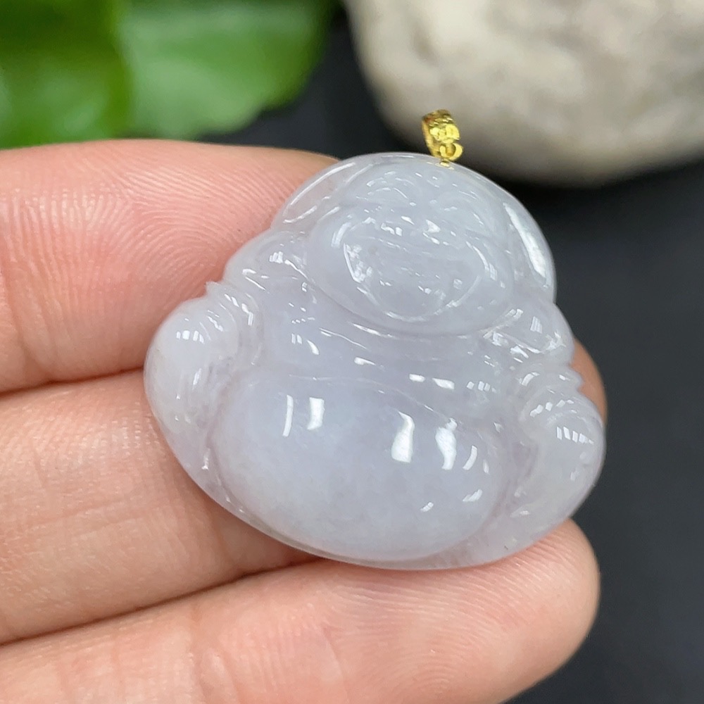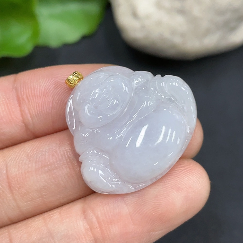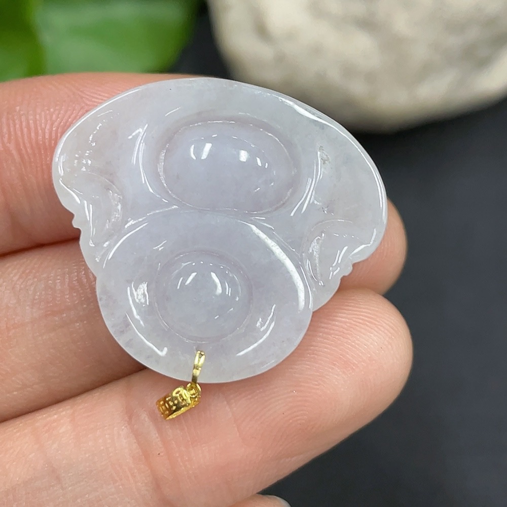 Jadeite Buddha Pendant with 18K Gold Clasp, Total Weight 4.985g