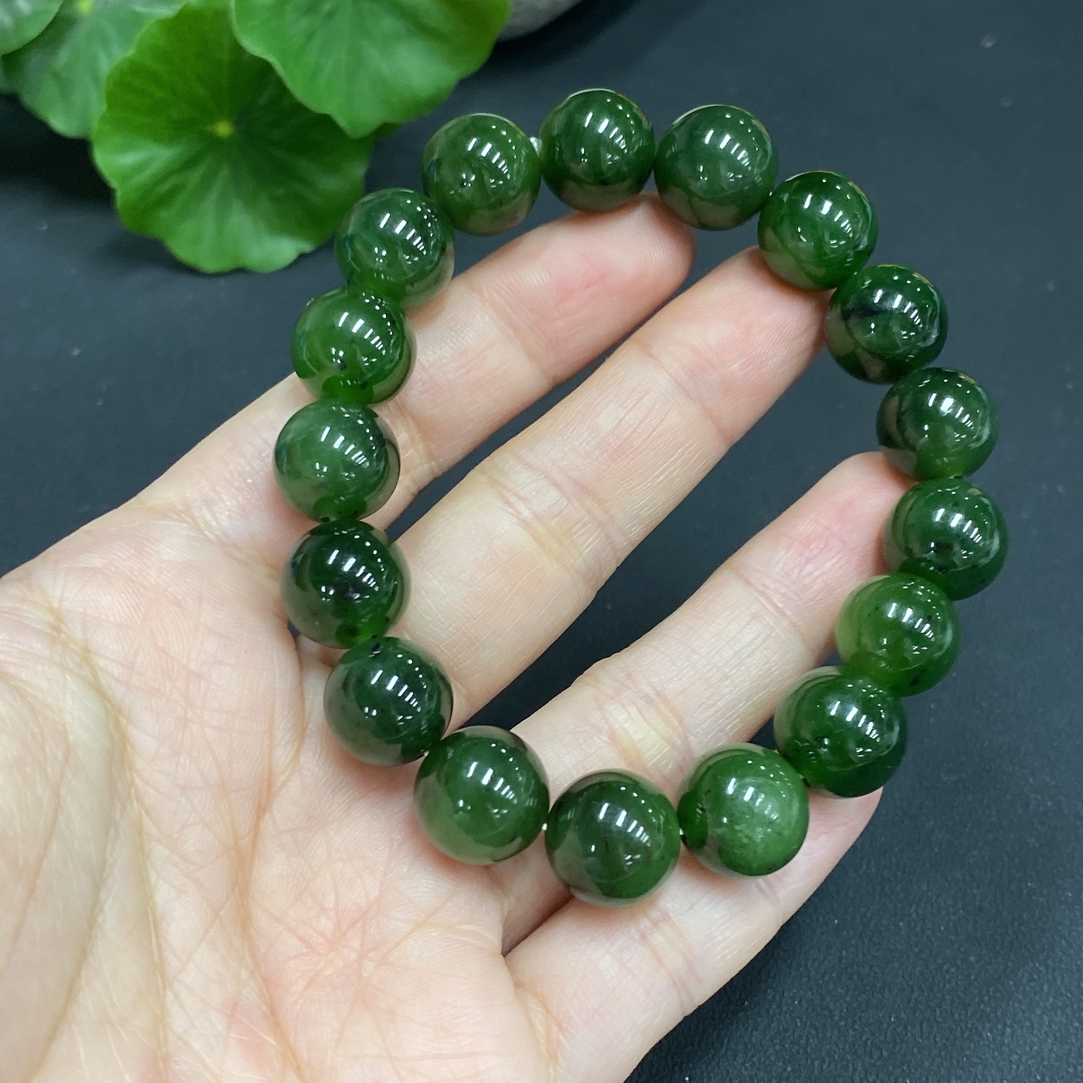 Hetian Jade Bead Bracelet, Approx. 11mm Beads, Total Weight About 40g