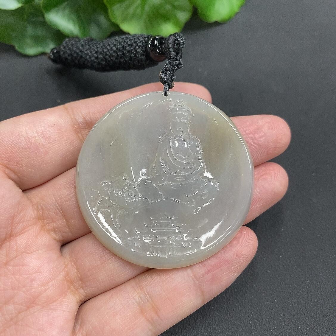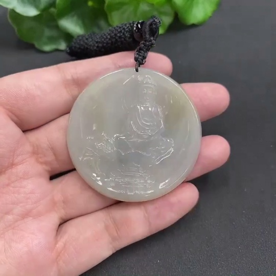 Jadeite Guanyin Pendant with Cracks