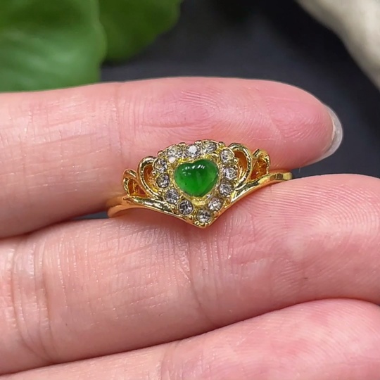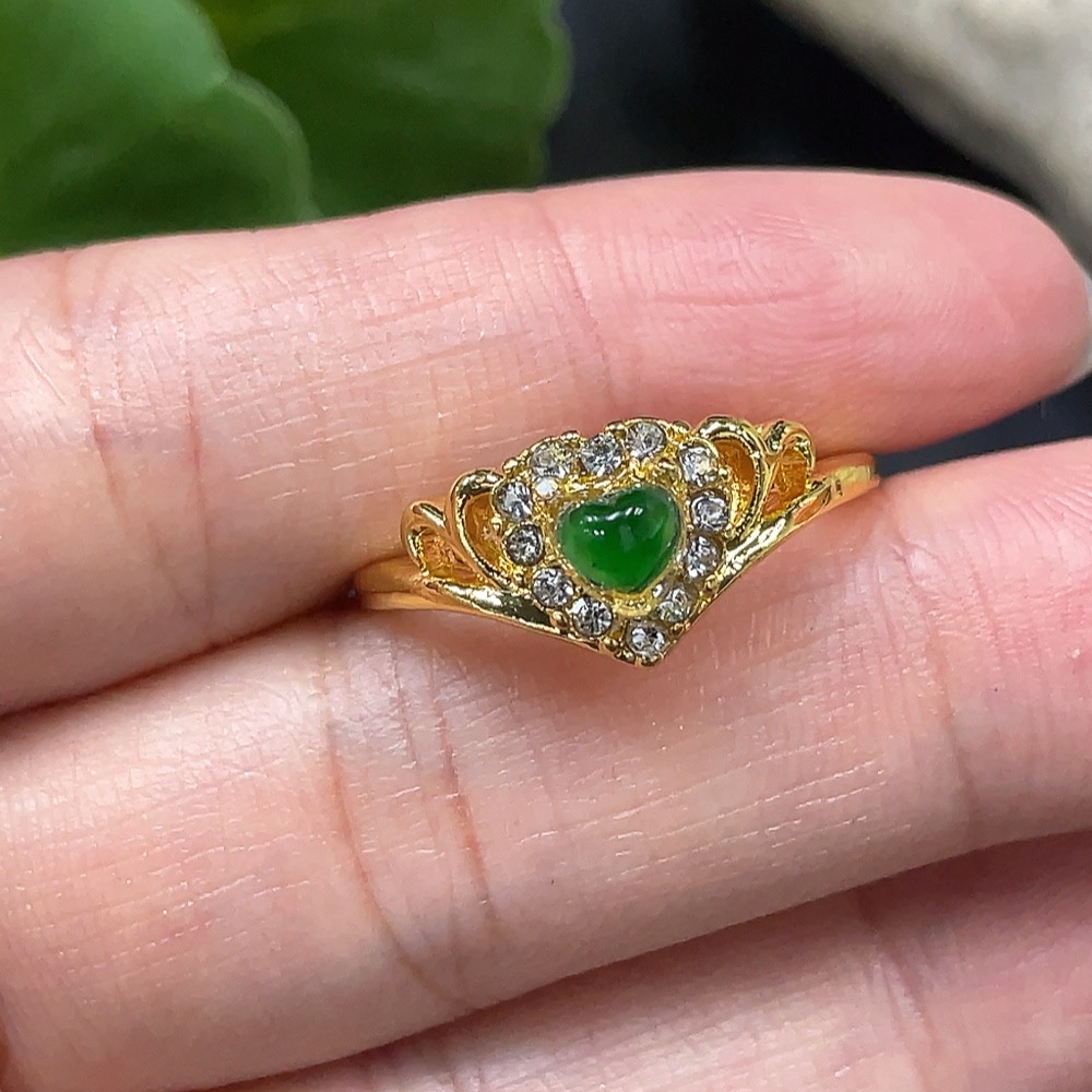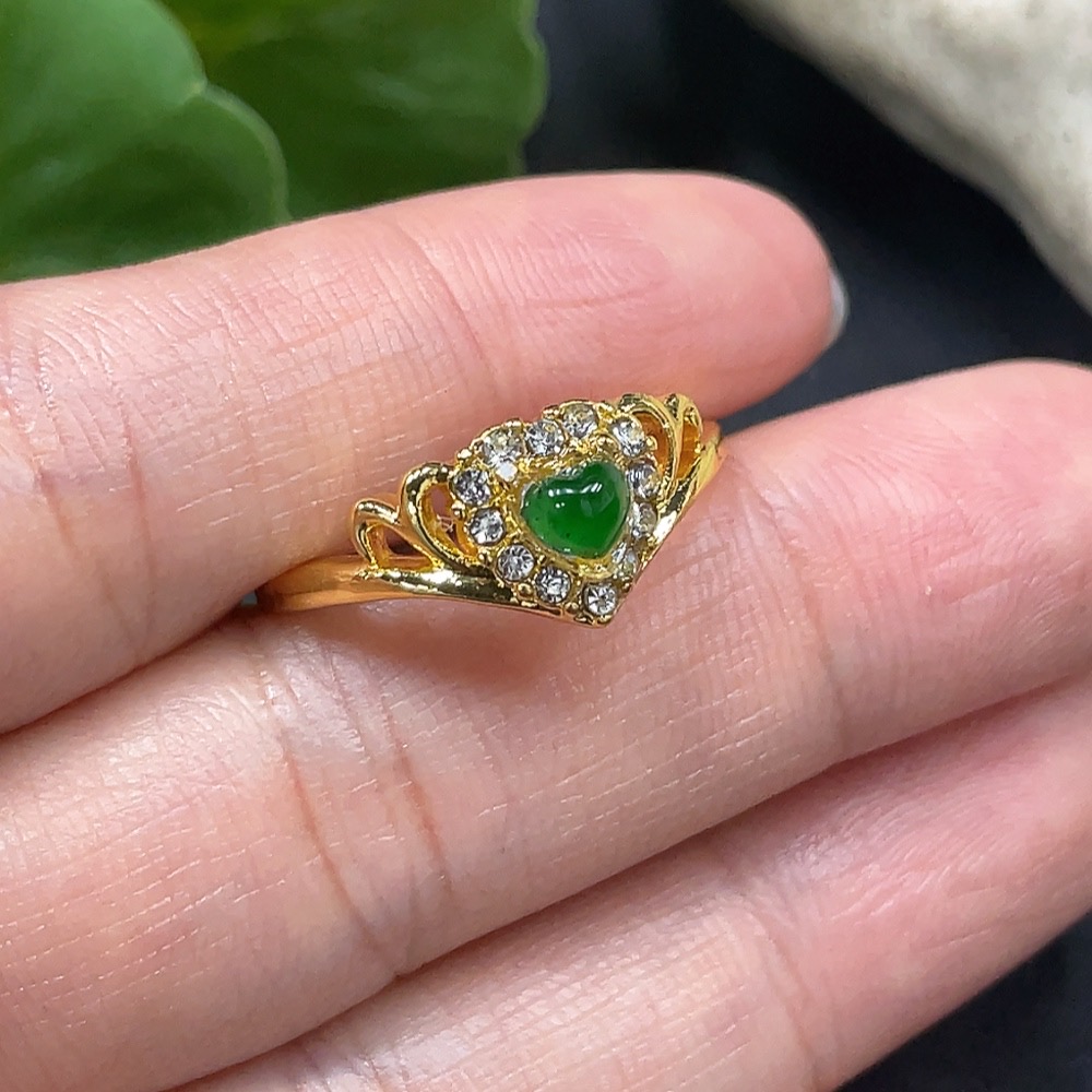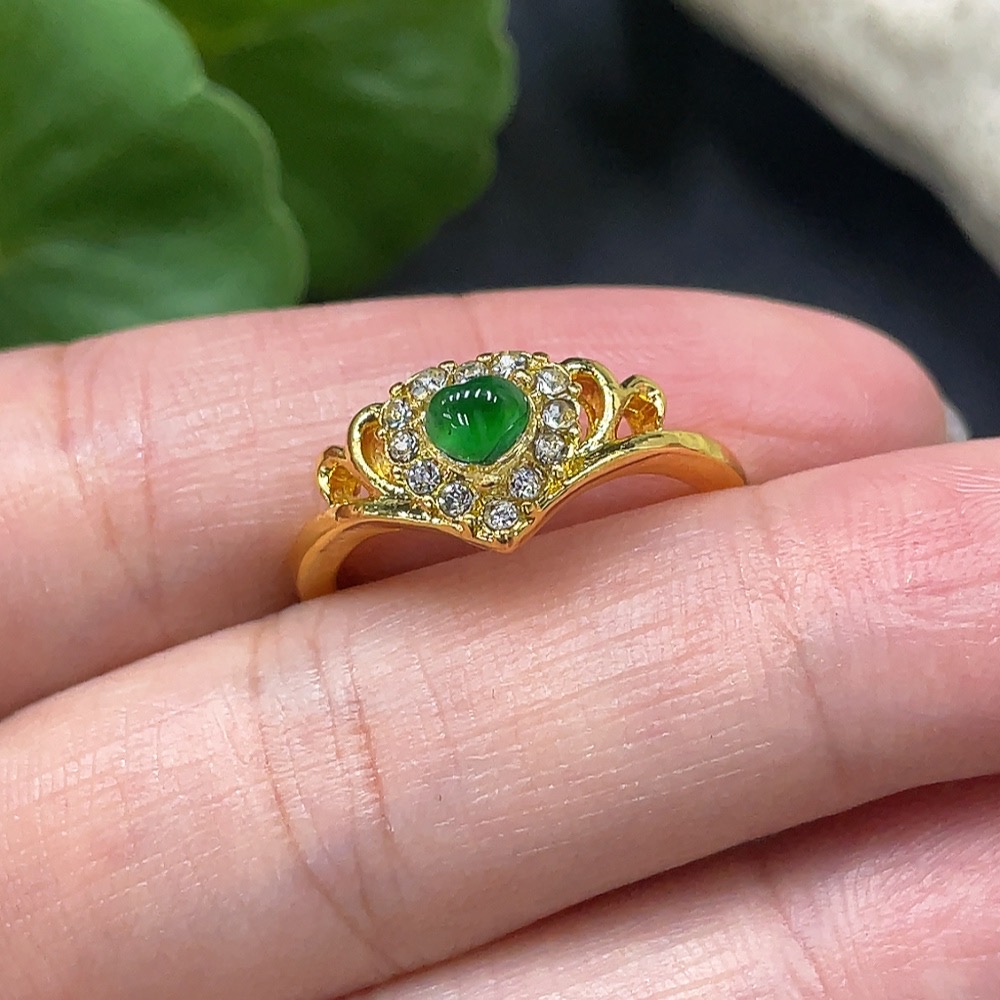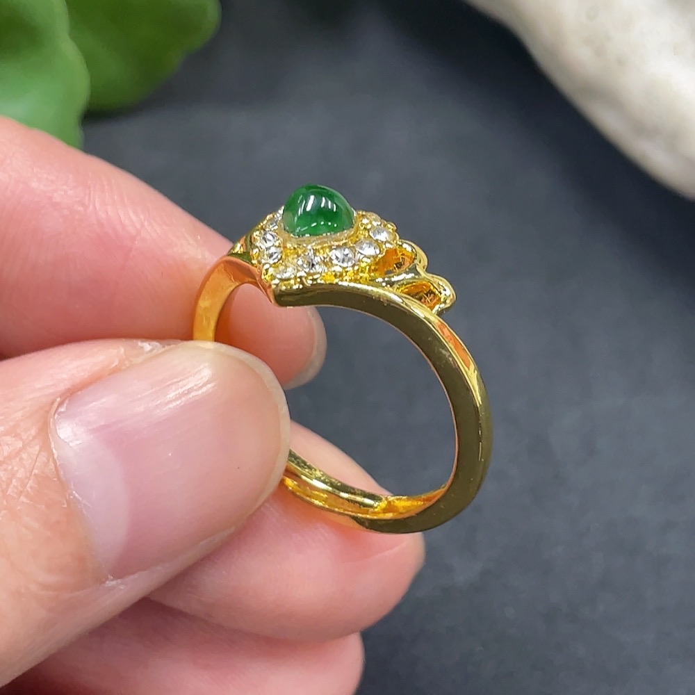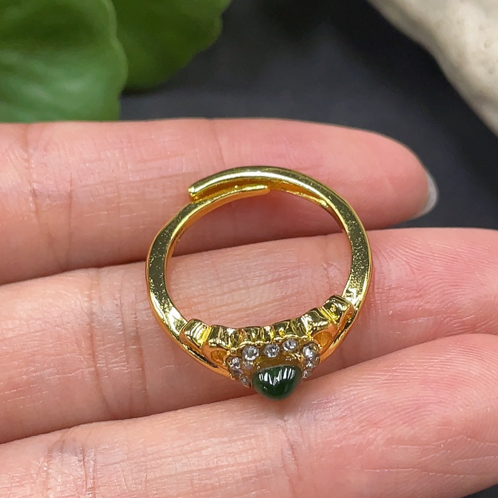Jadeite Inlaid Ring Non-Gold Setting Adjustable Total Weight 2.984g