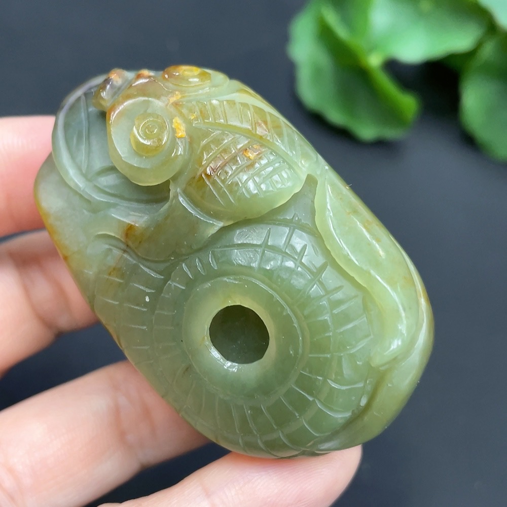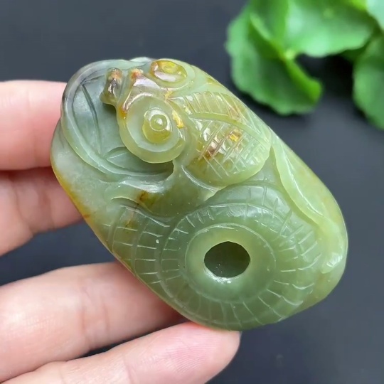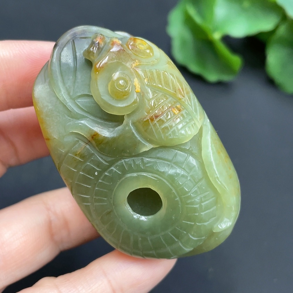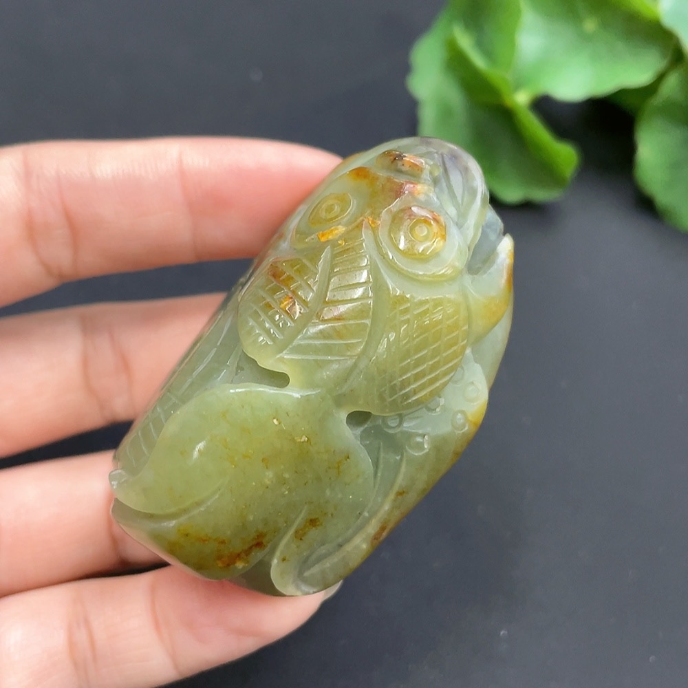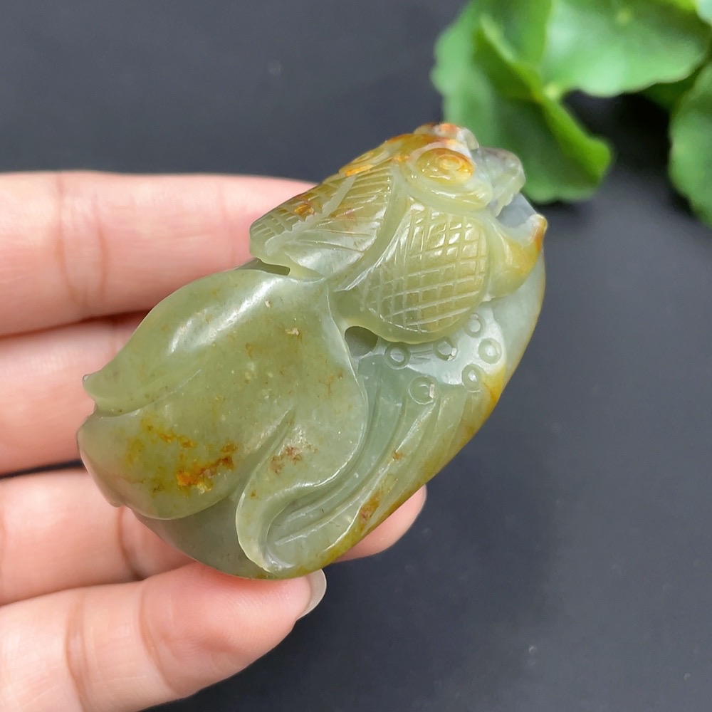 Hetian Jade Ornament 'Abundance Year after Year' with Undetermined Skin Color Formation, Total Weight Approx. 89.1g