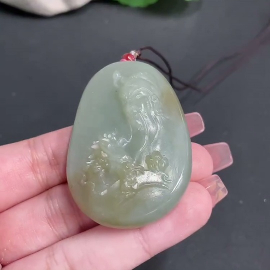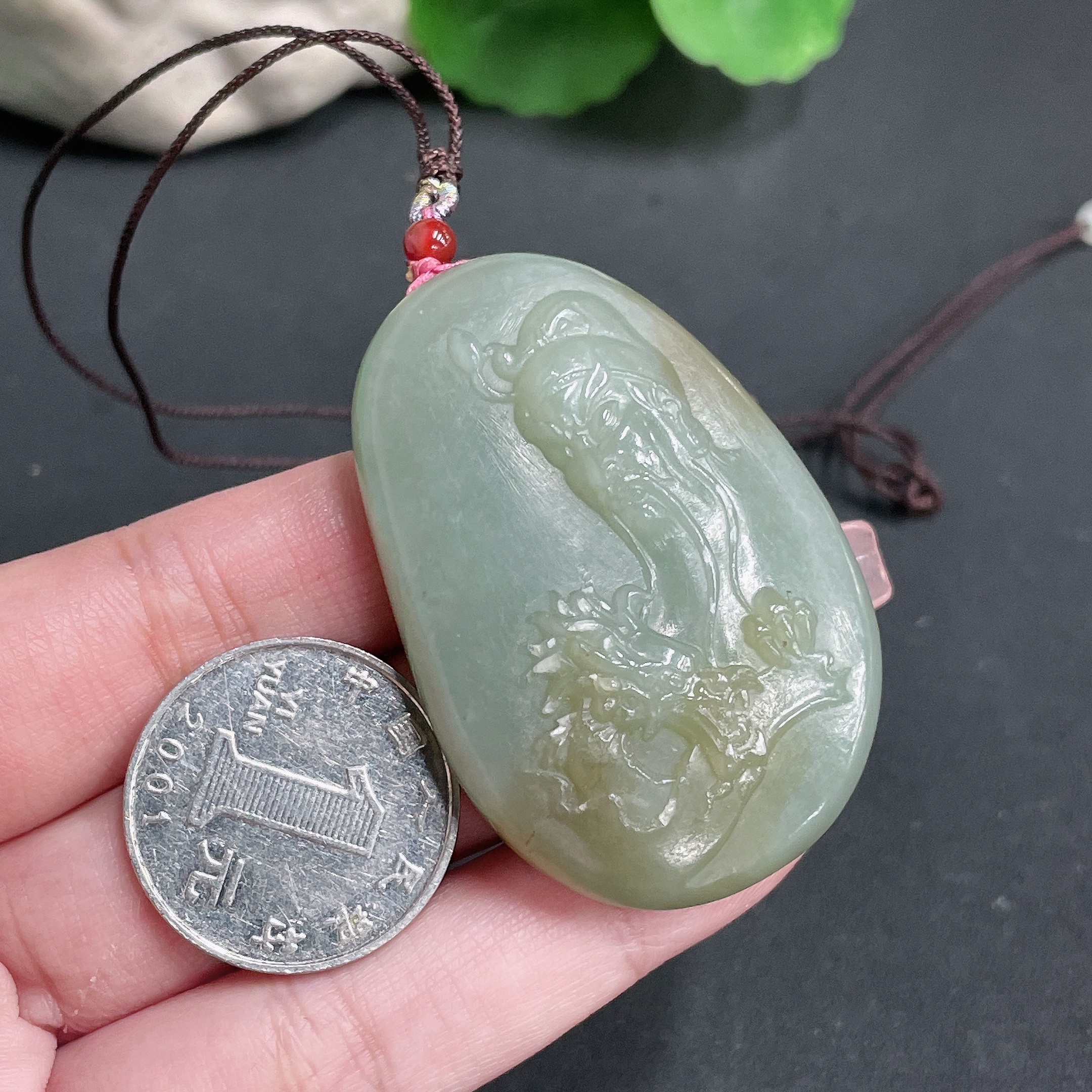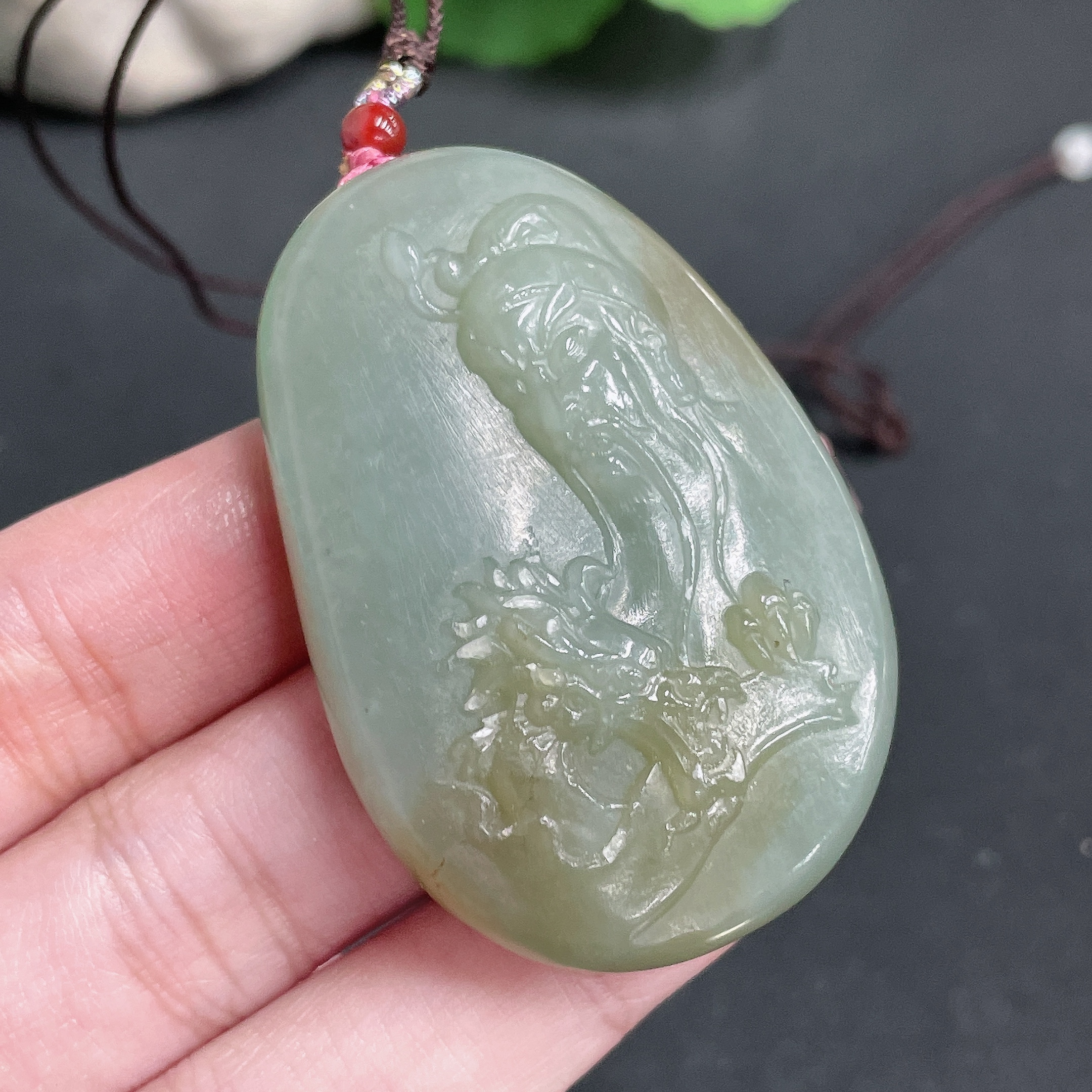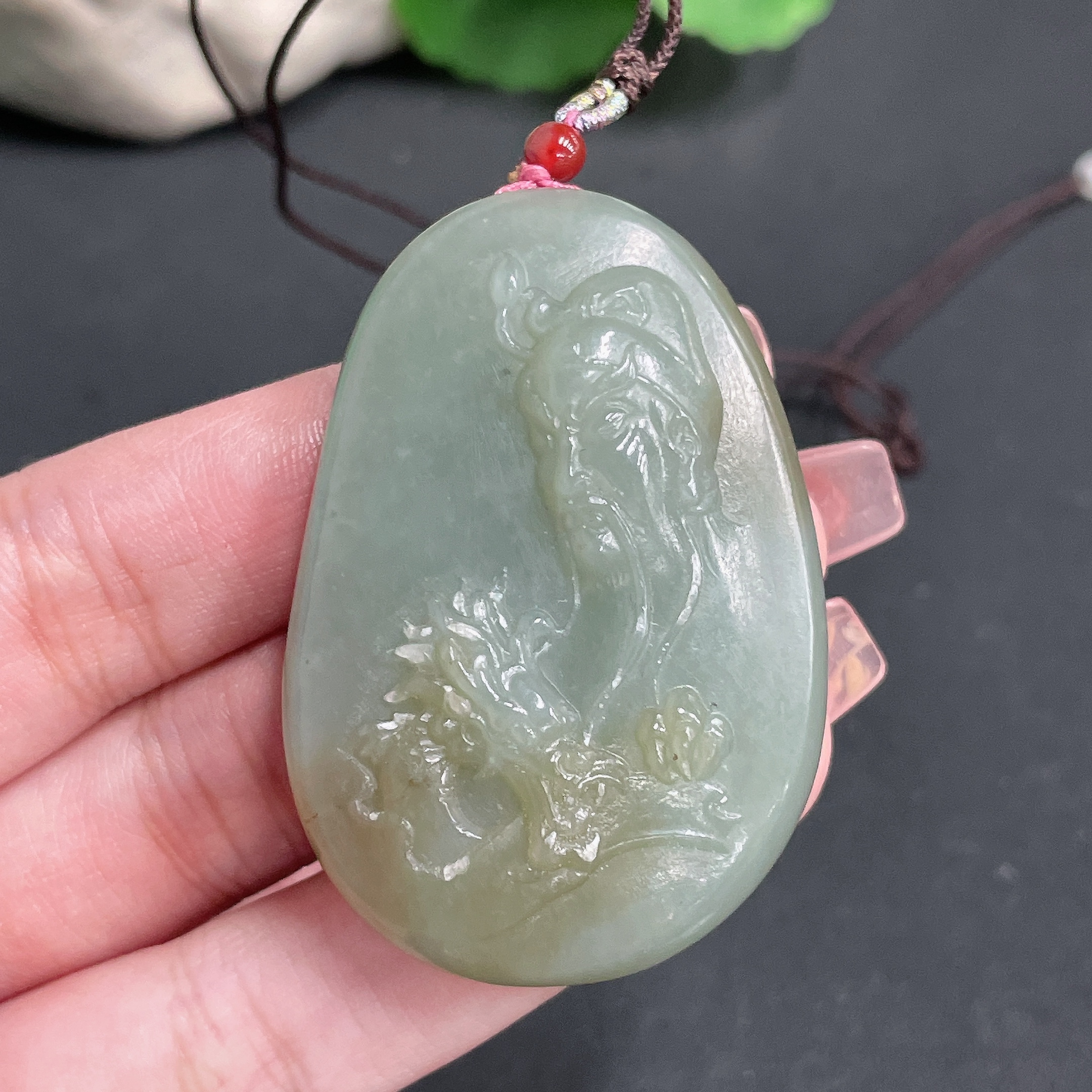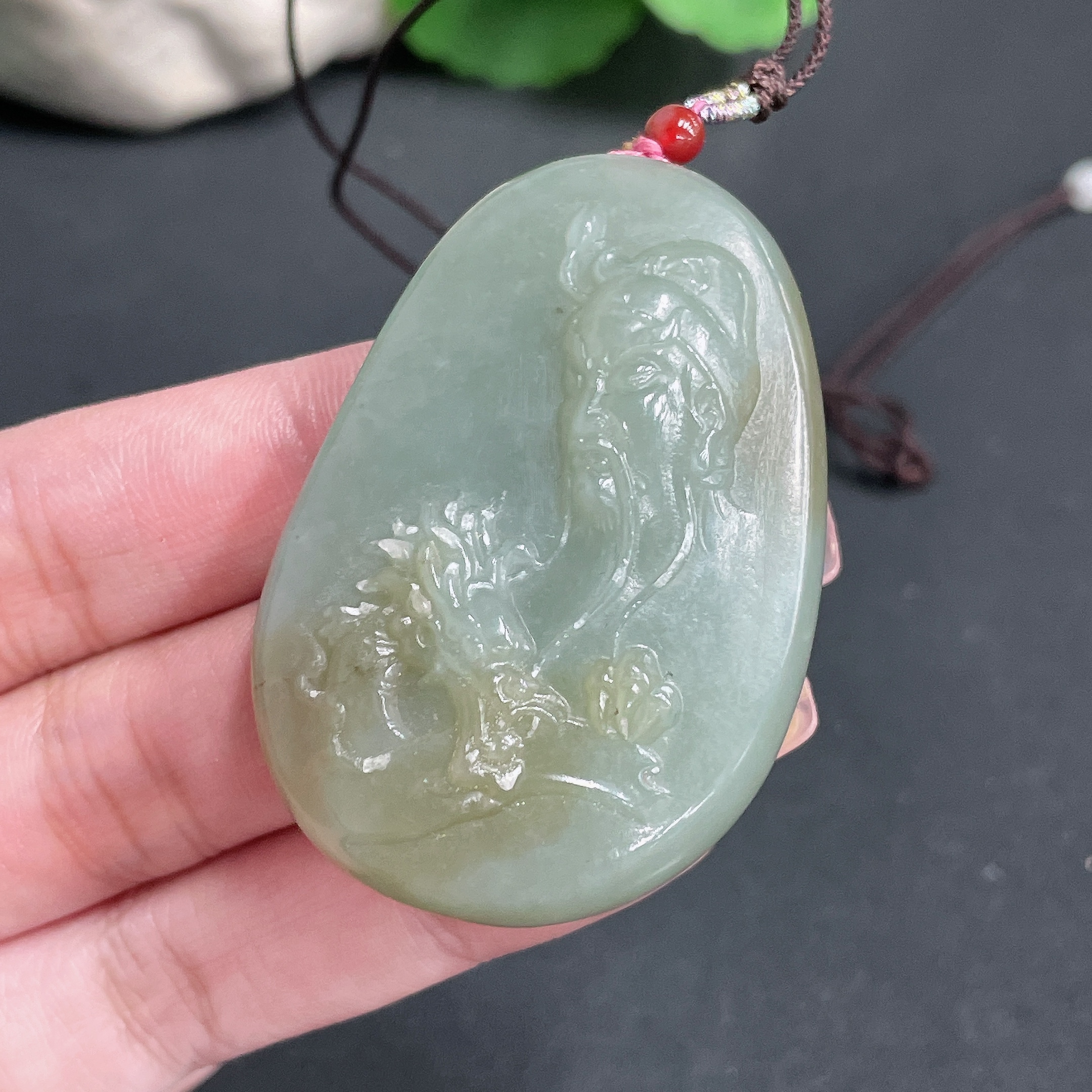 Hetian Jade Pendant Guan Yu with Rope Total Weight 46.32g