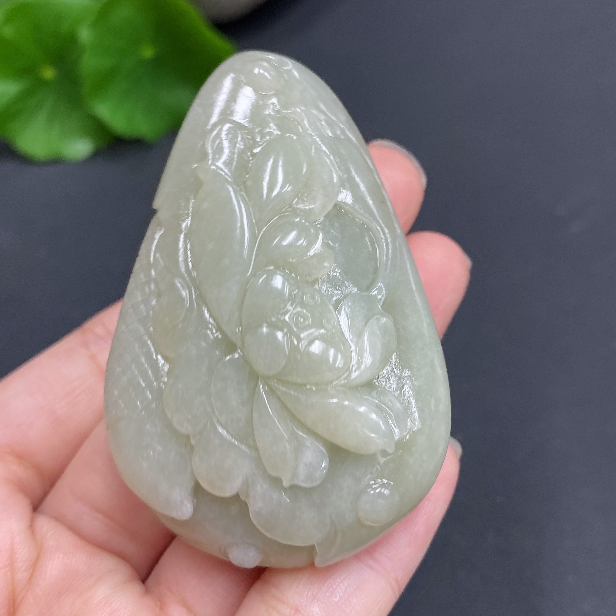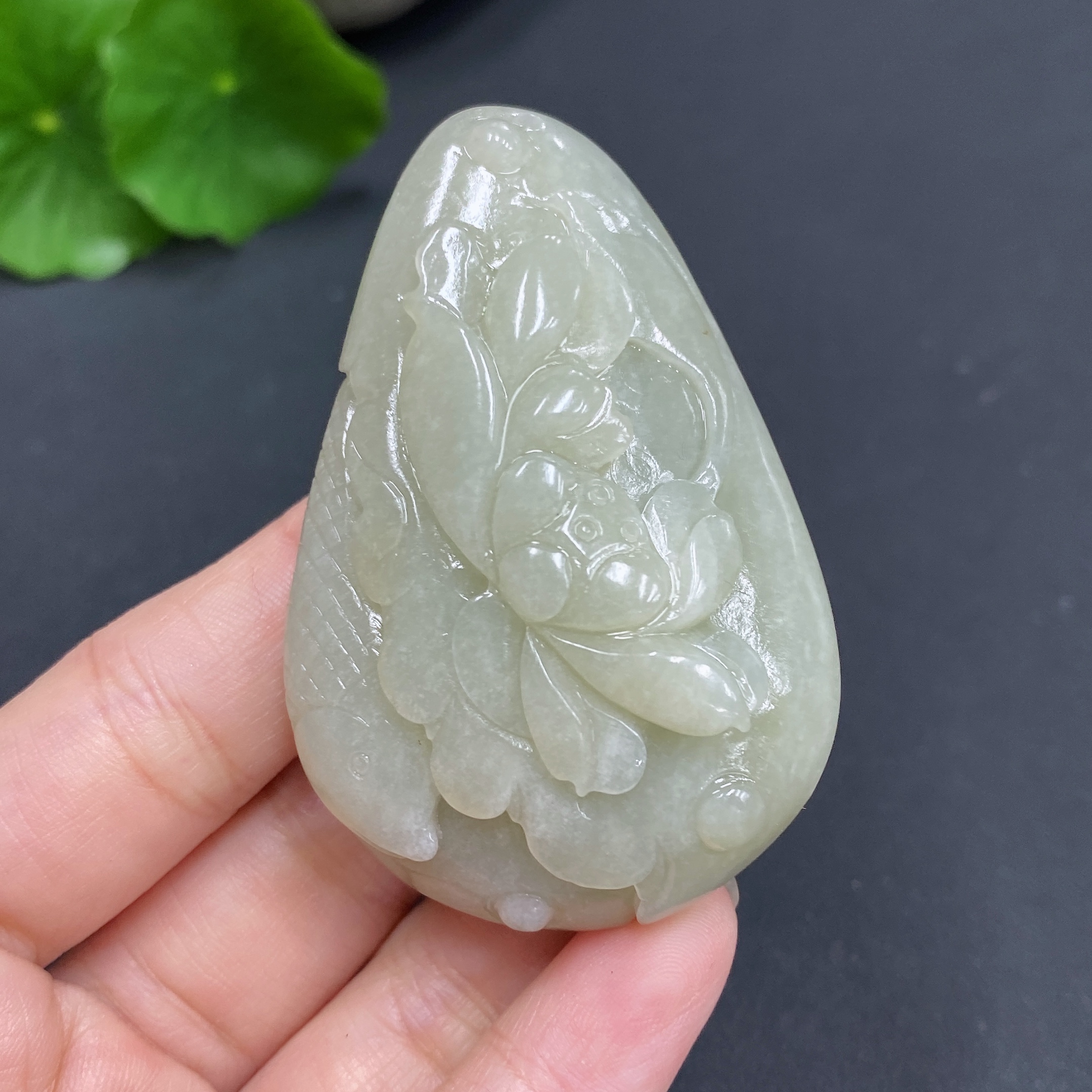 Hetian Jade Pendant - Lotus and Fish - Total Weight Approx. 56.7g
