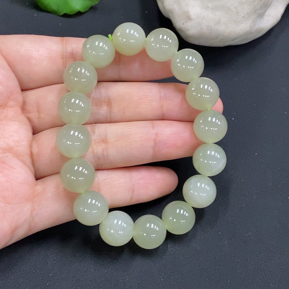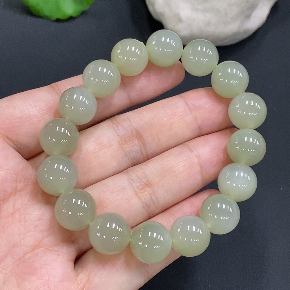 Hetian Jade Bead Necklace Approx.11.7mm Total Weight Approx.42g