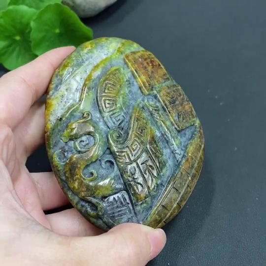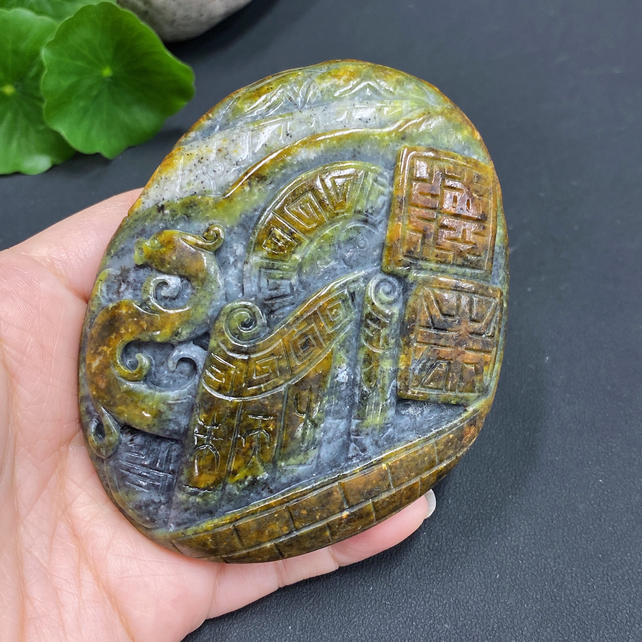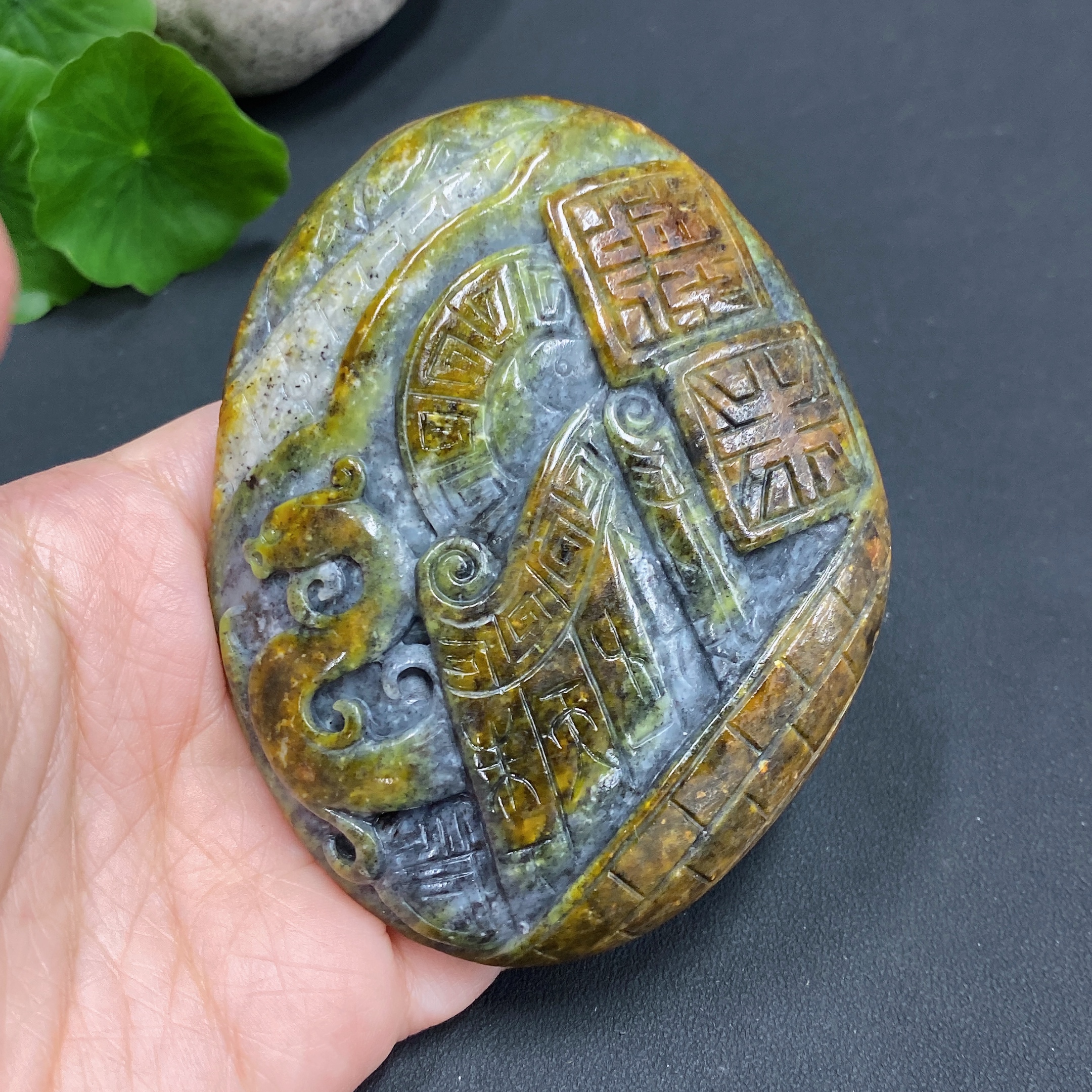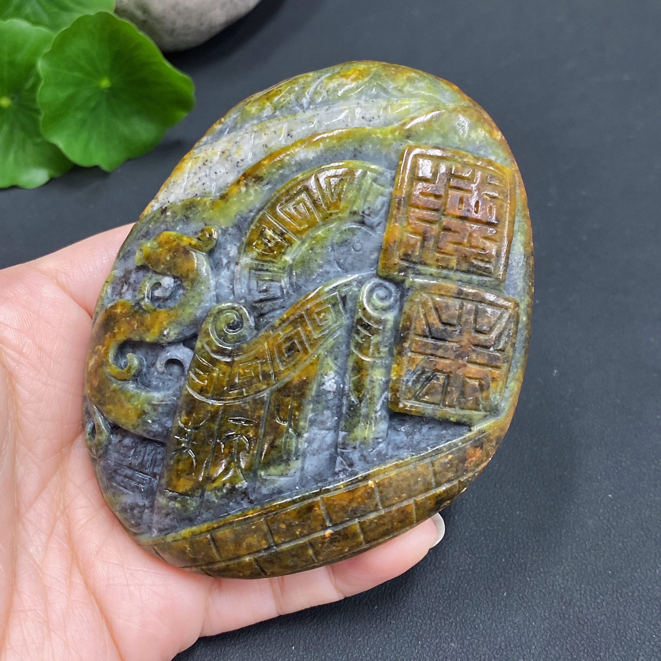 Hetian Jade Handheld Carving, Antique-style Piece, Total Weight Approx. 210.5g, Undetermined Skin Color Origin