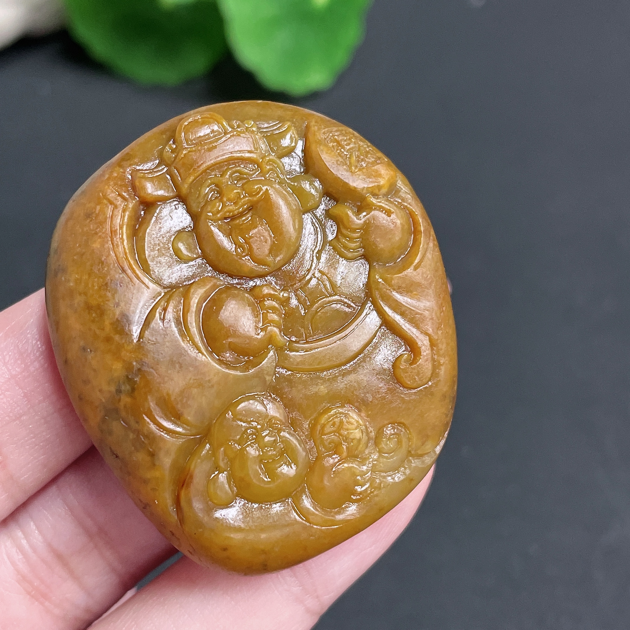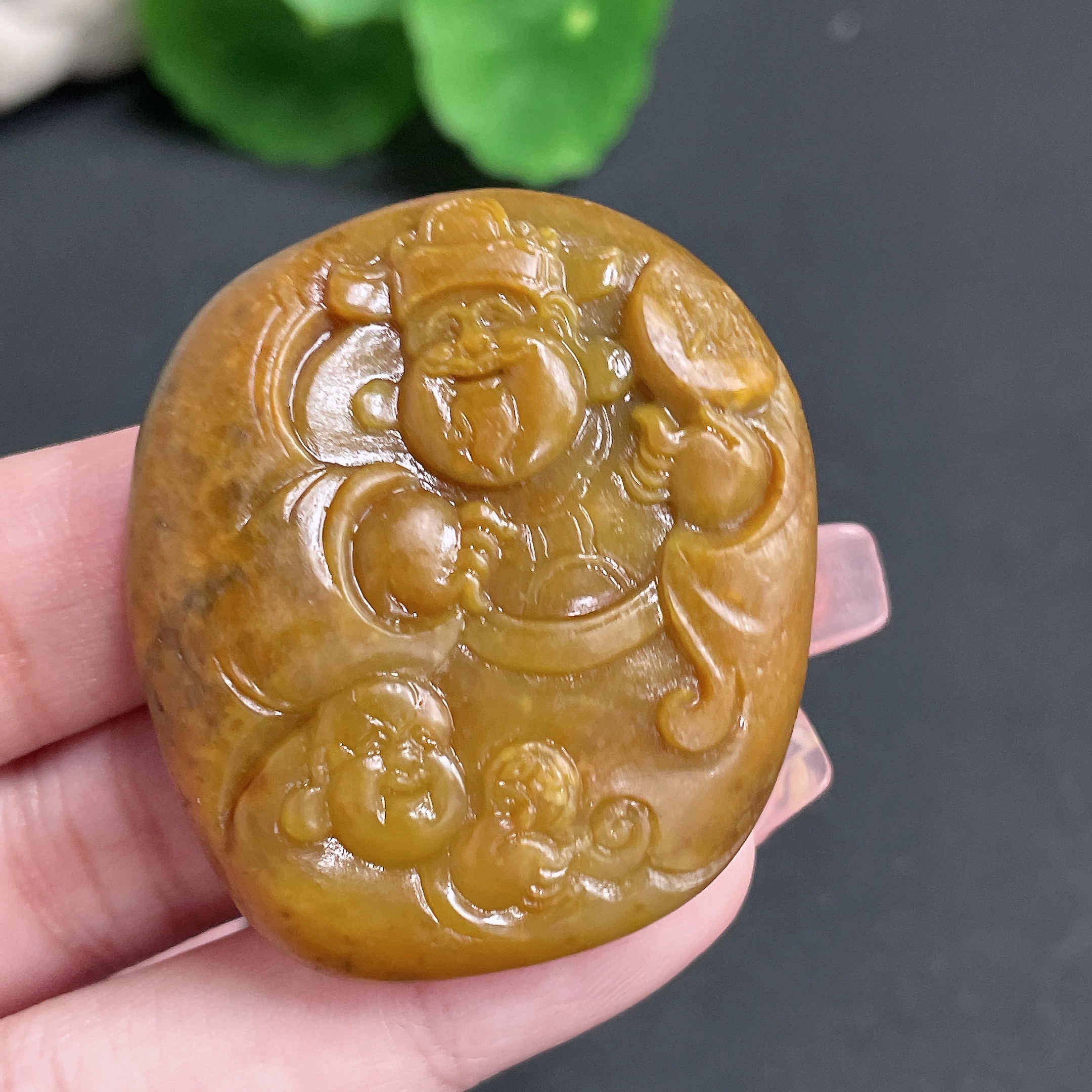 Hetian Jade Seed Material Pendant - God of Wealth - Total Weight Approx. 45.3g - Undetermined Skin Color Origin