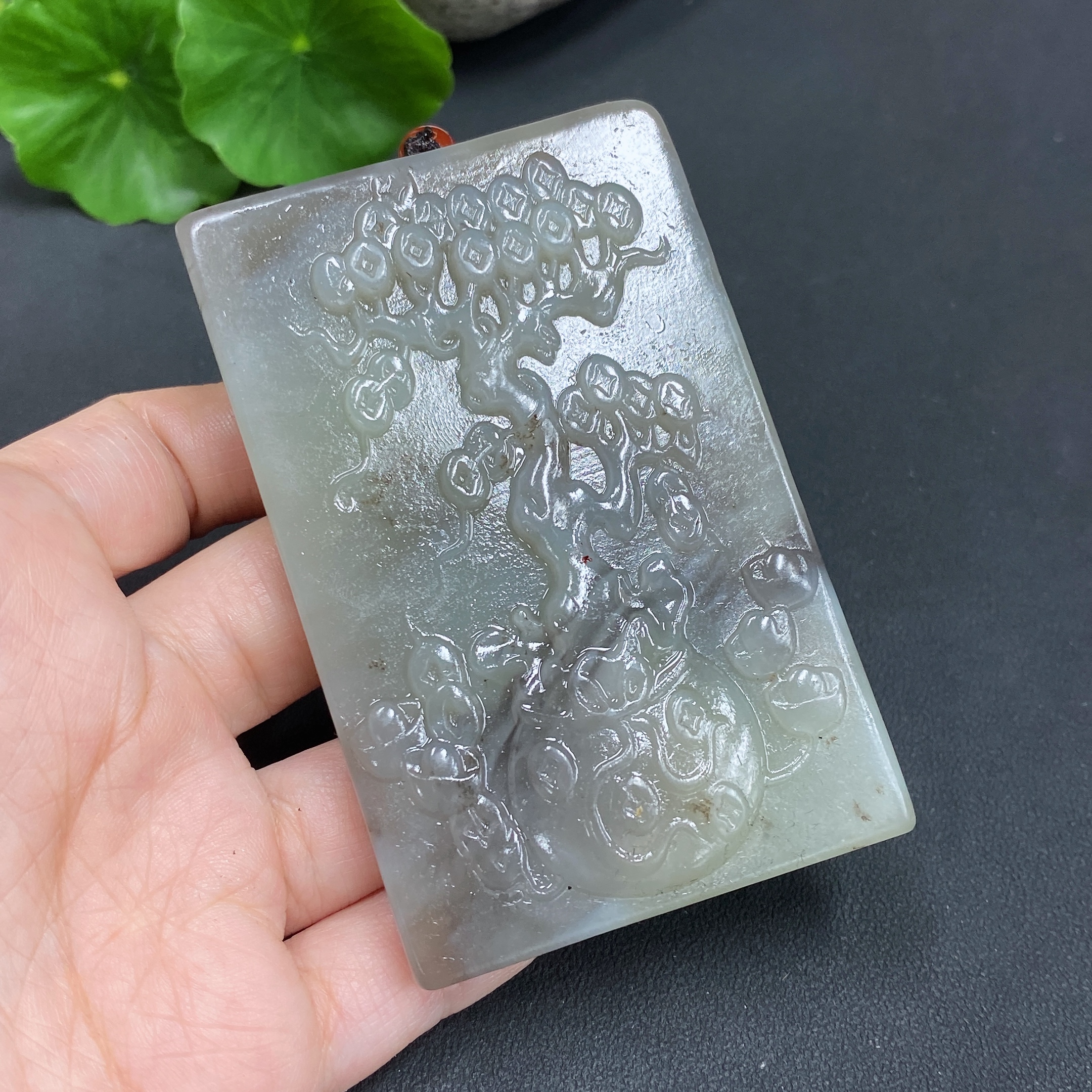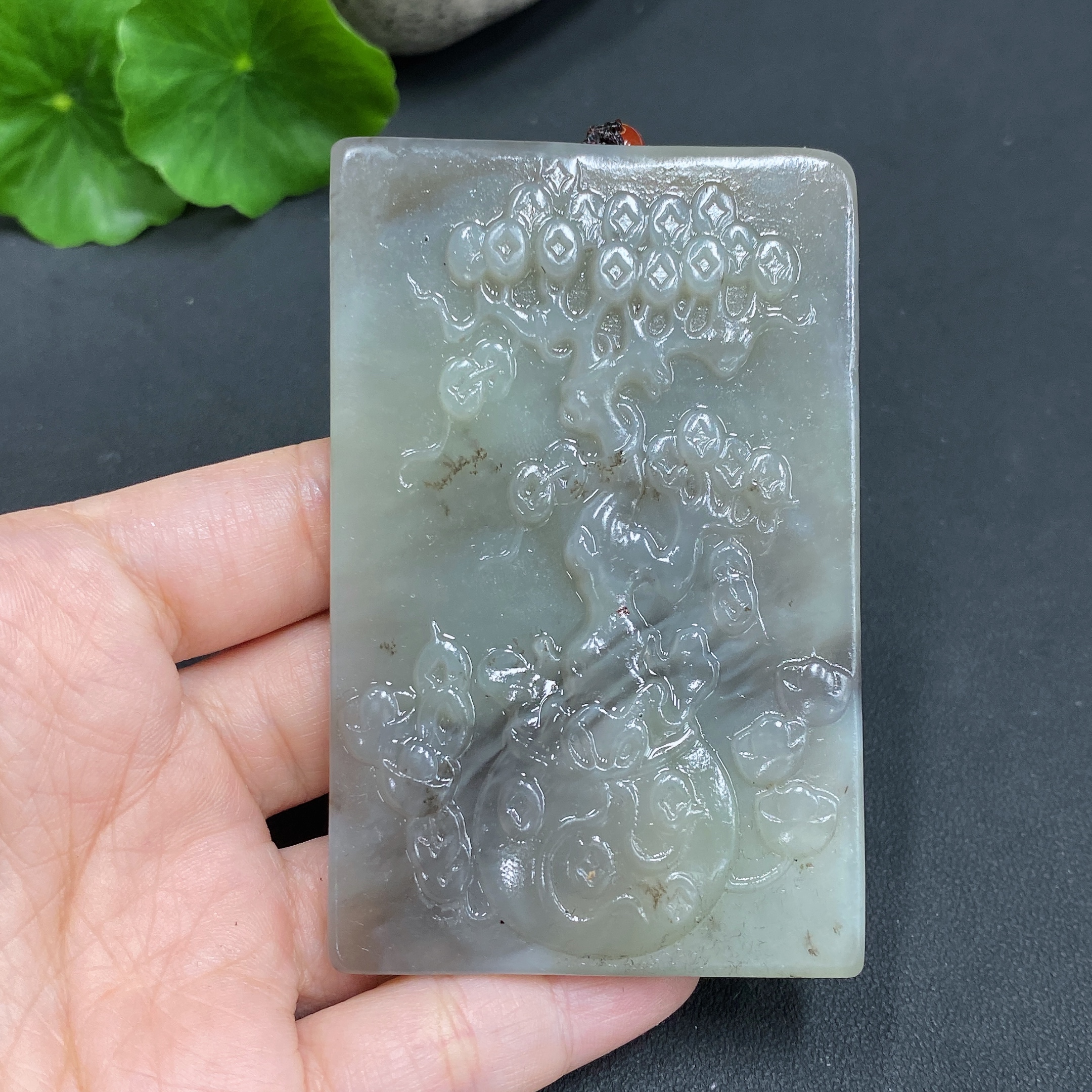 Hetian Jade Pendant Money Tree Total Weight (with rope) Approx. 105.3g