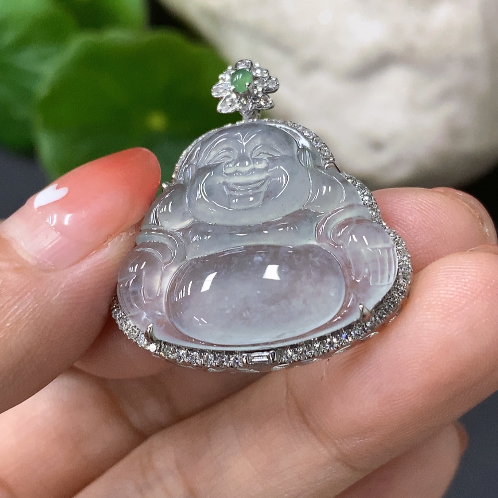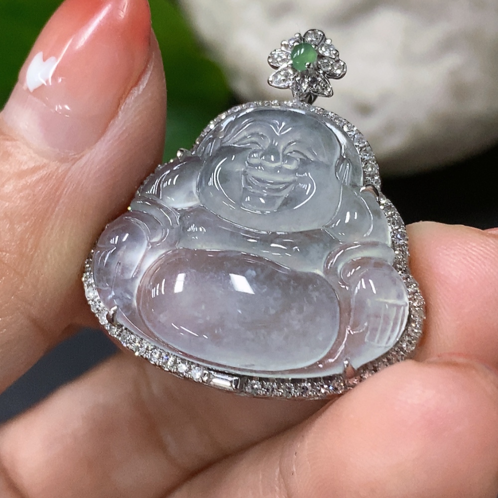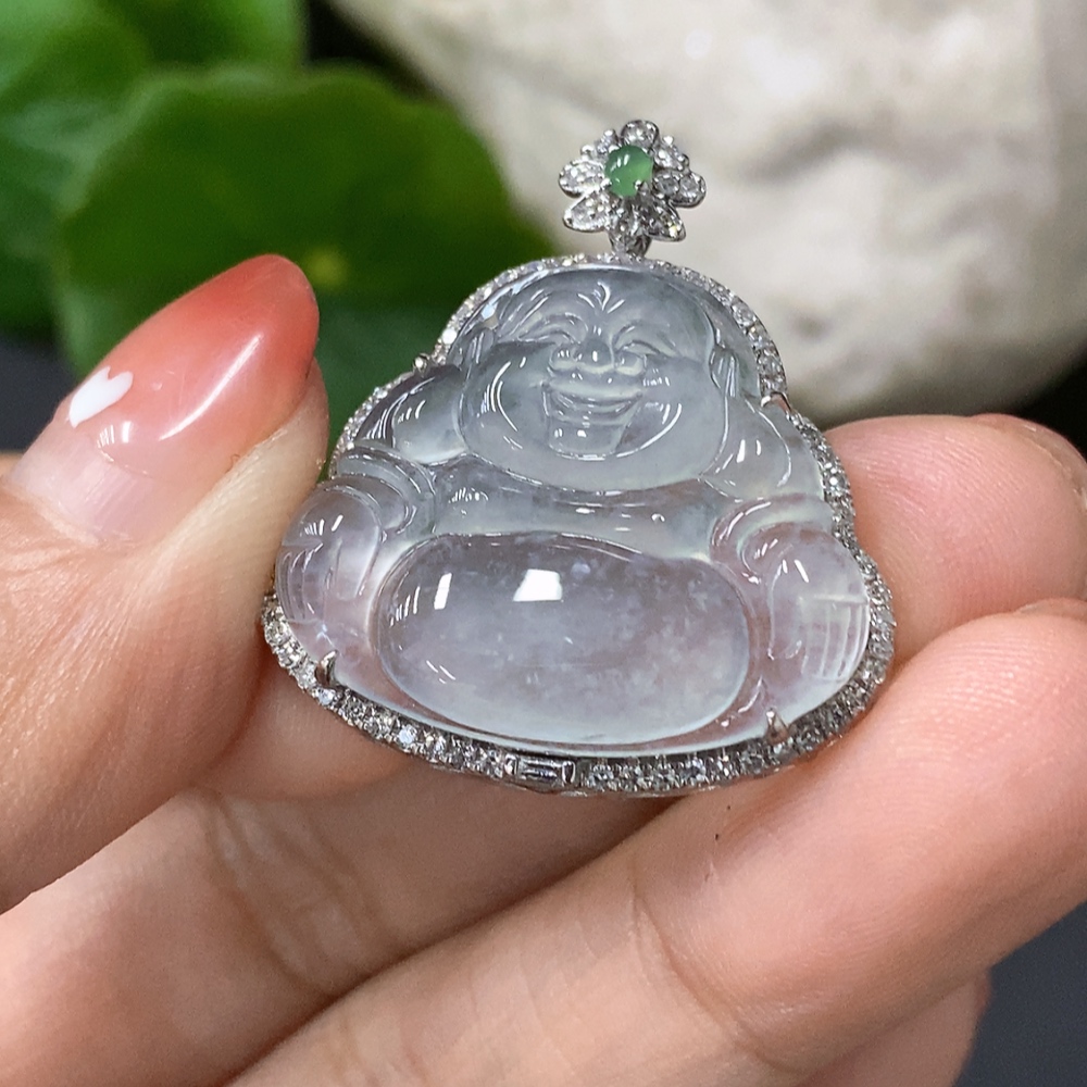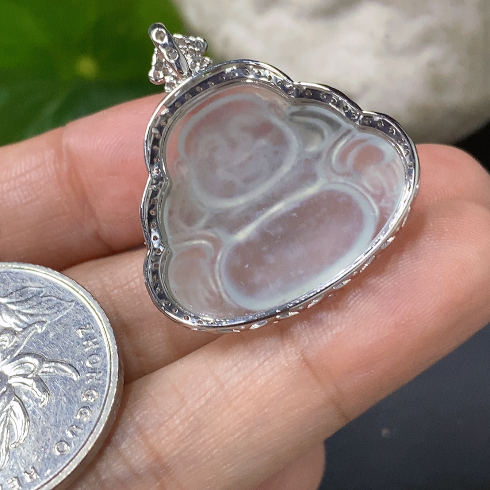 Jadeite Buddha Pendant with 18K Gold Setting, Total Weight Approx. 4.3g