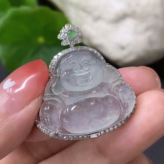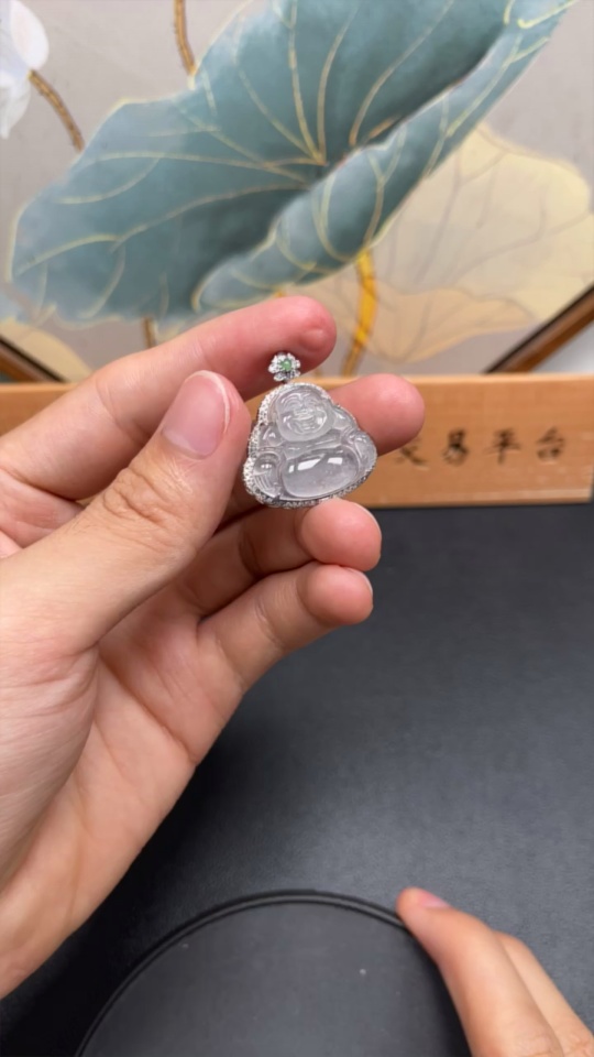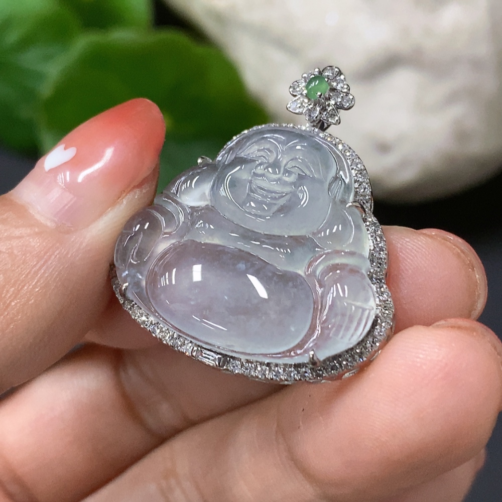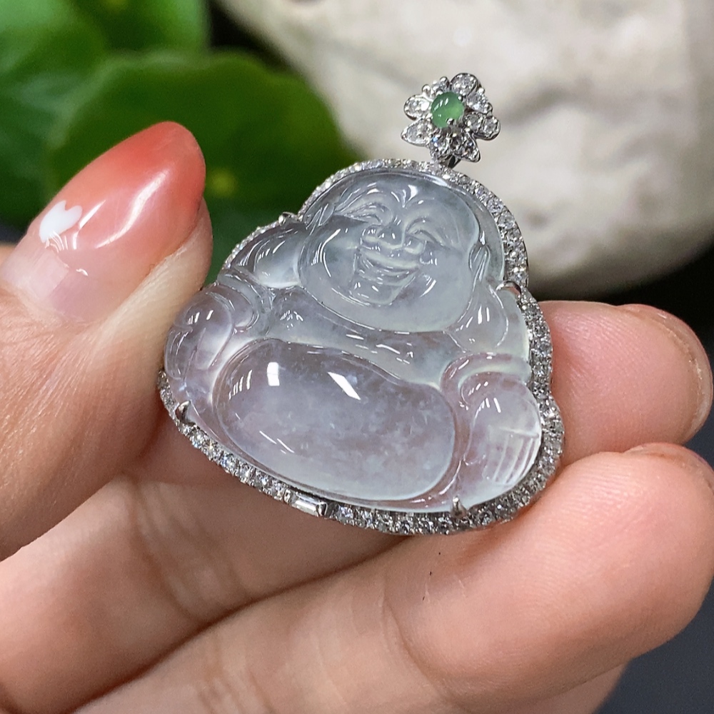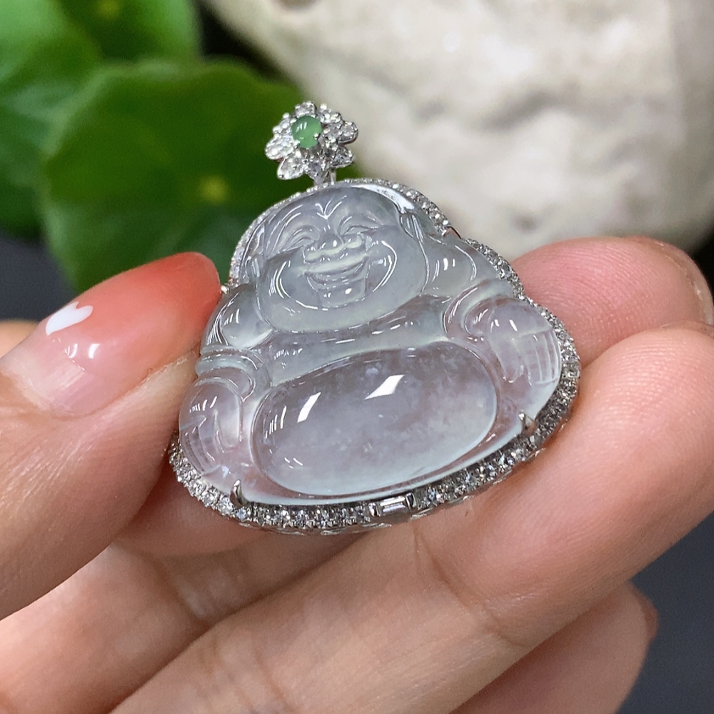 Jadeite Buddha Pendant with 18K Gold Setting, Total Weight Approx. 4.3g