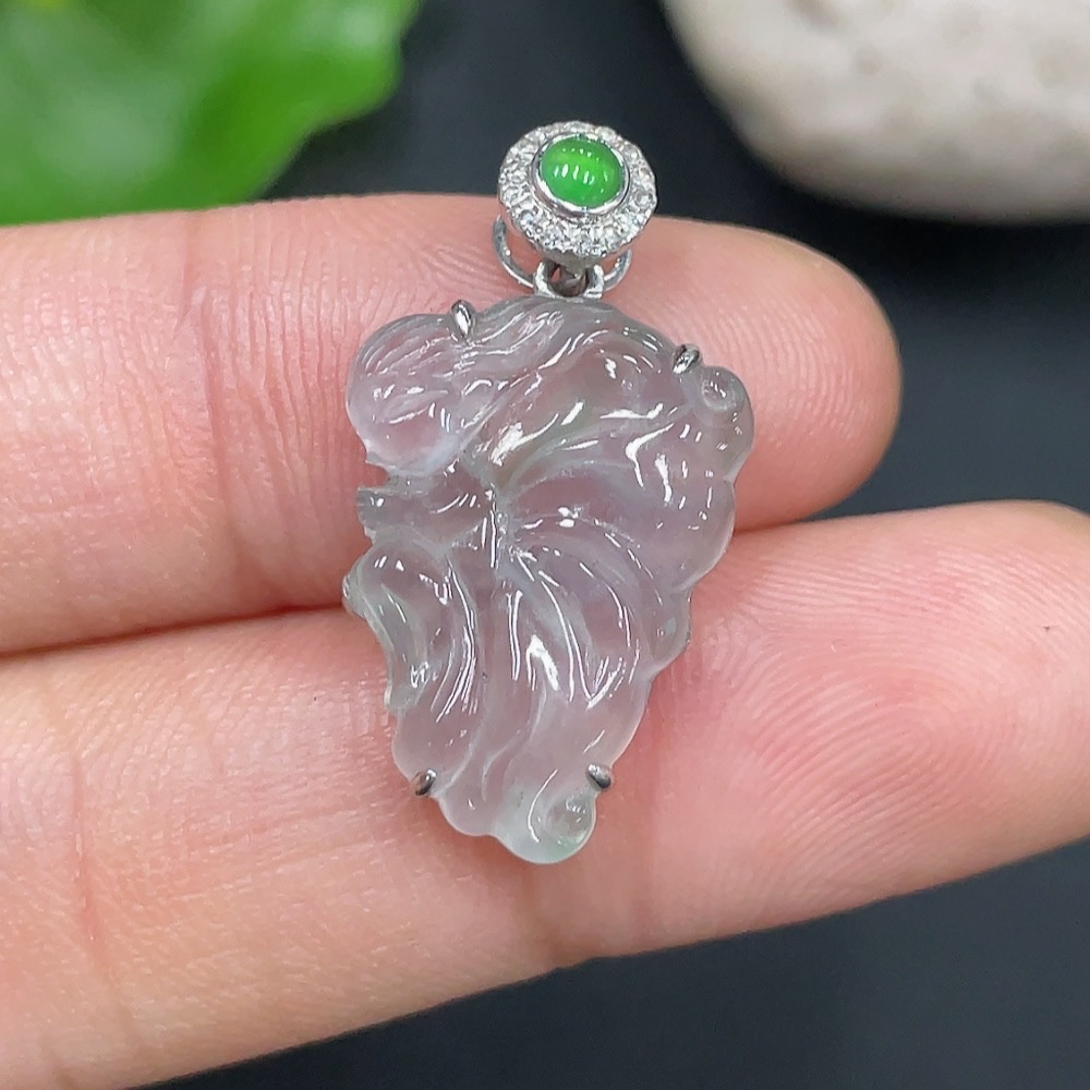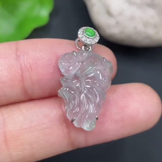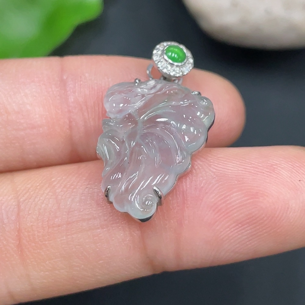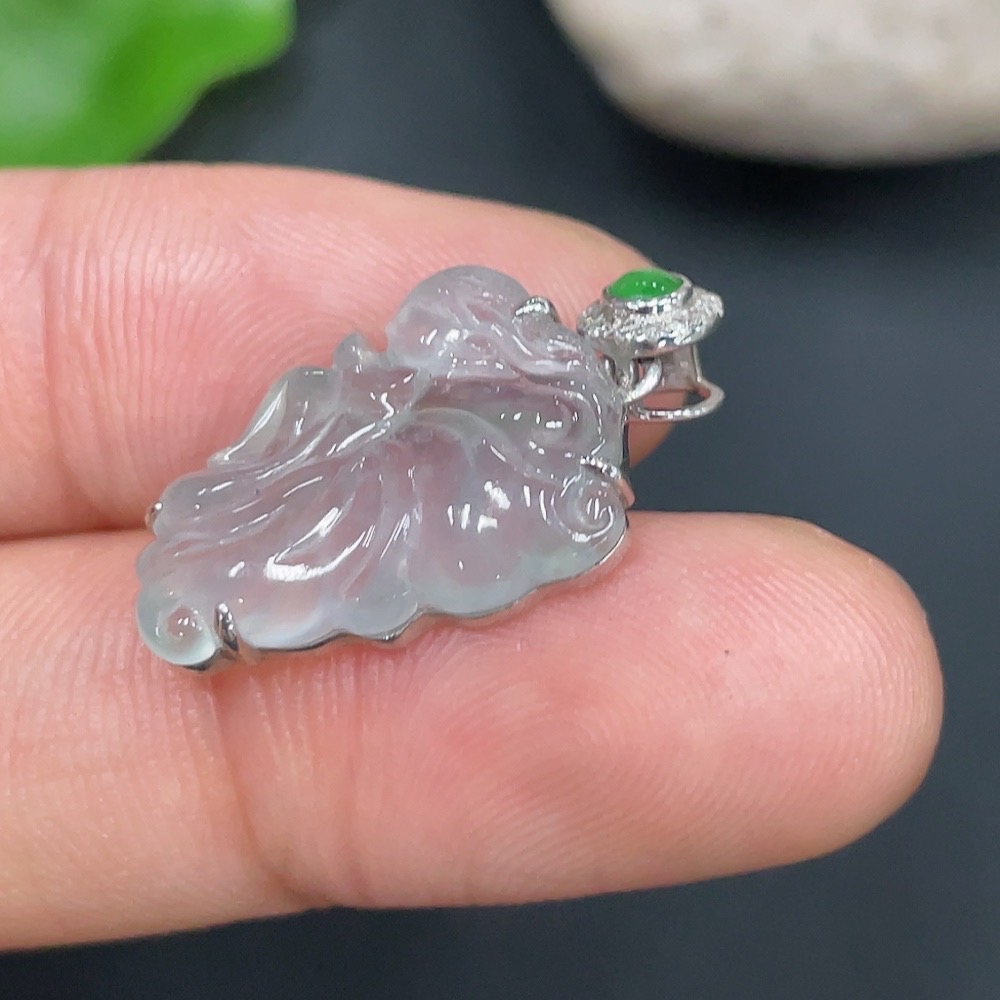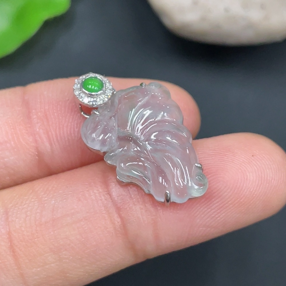Jadeite Inlaid Pendant 18K Gold Total Weight Approx. 1.7g