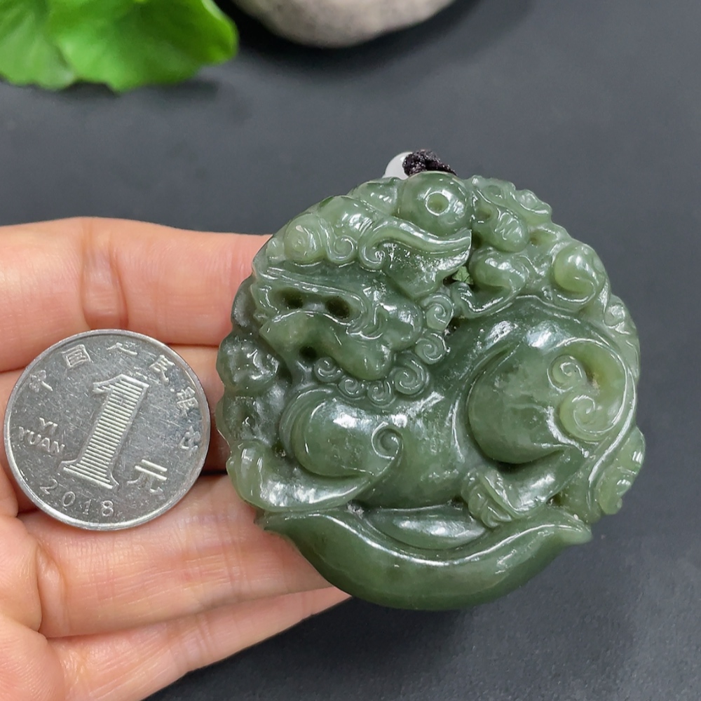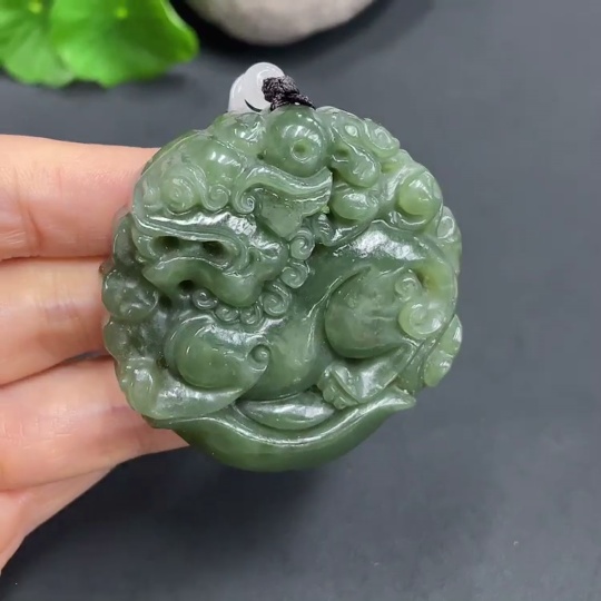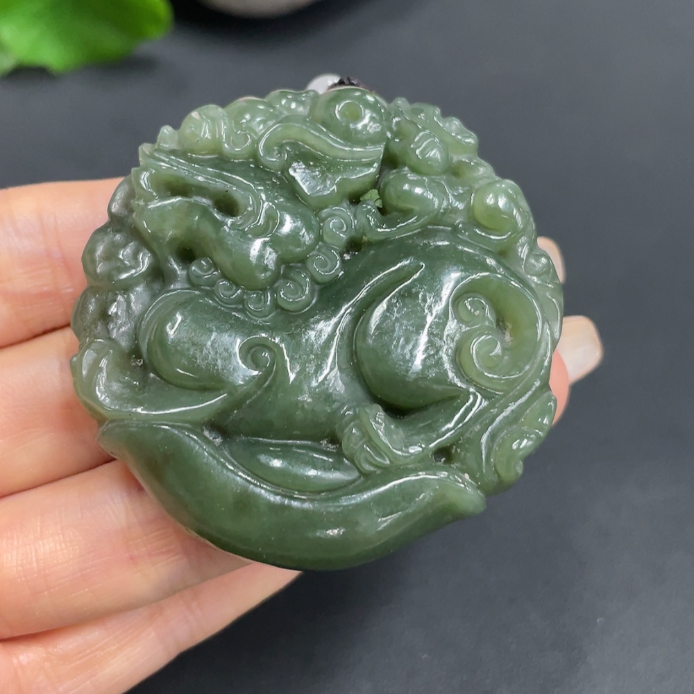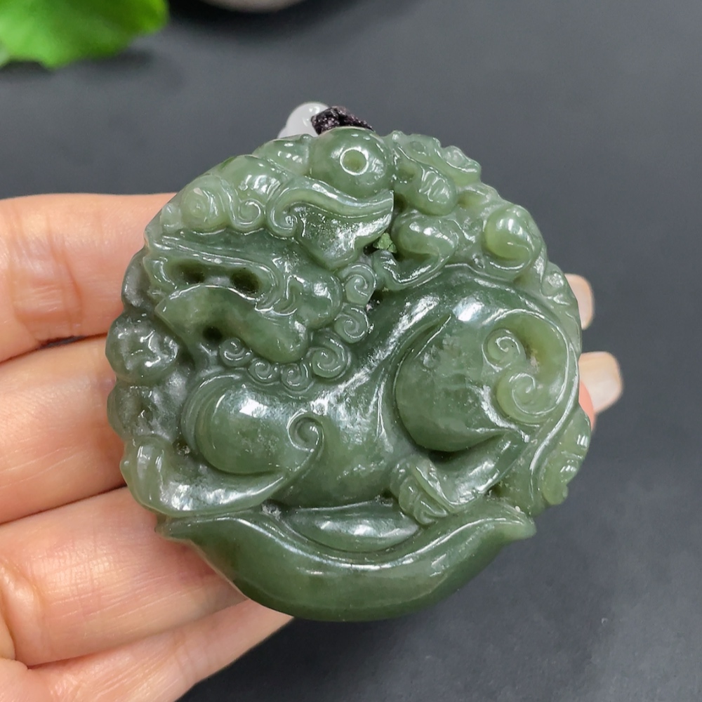 Hetian Jade Pendant Rui Beast Total Weight Approx. (Incl. Cord) 65.3g
