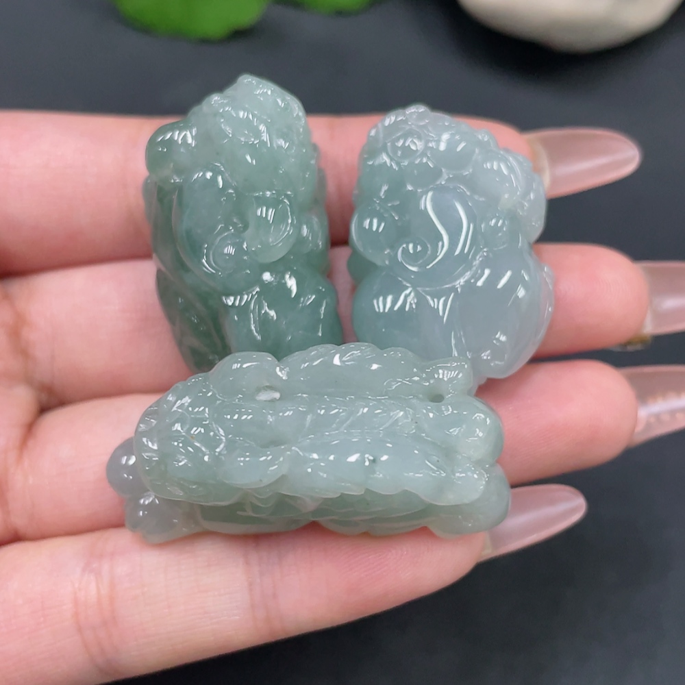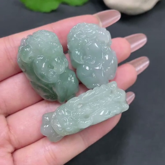 Jadeite Pi Xiu Pendant, Set of 3 Pieces