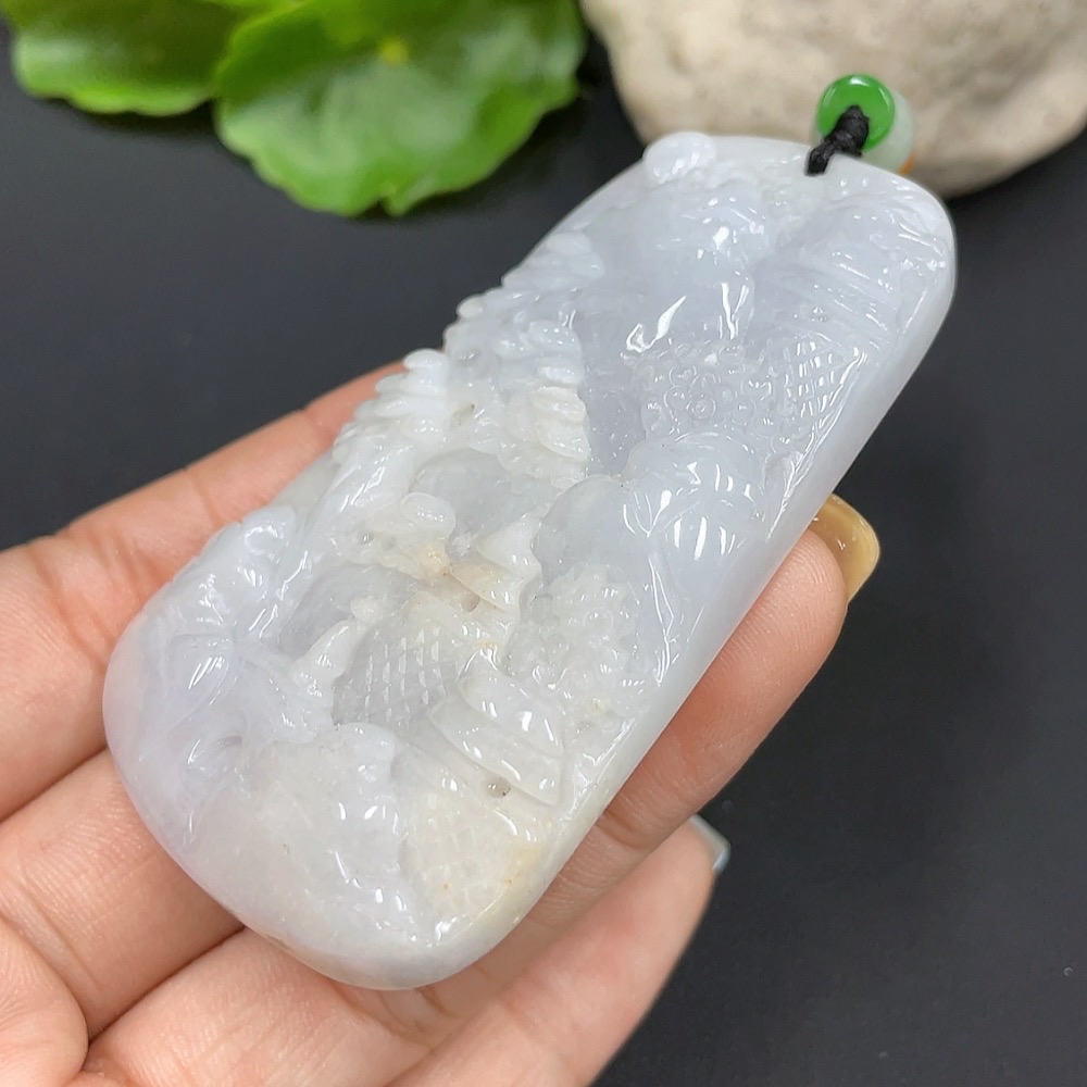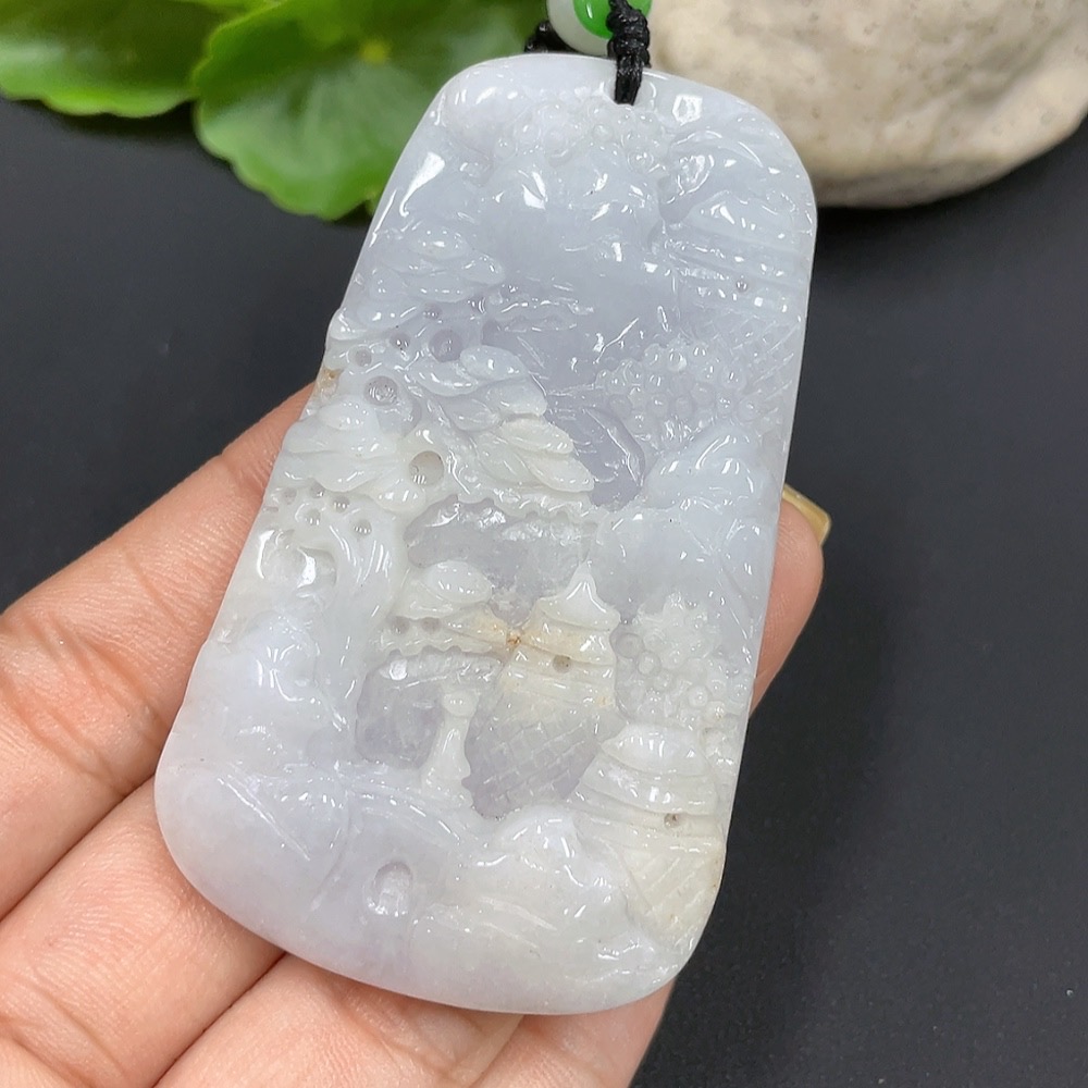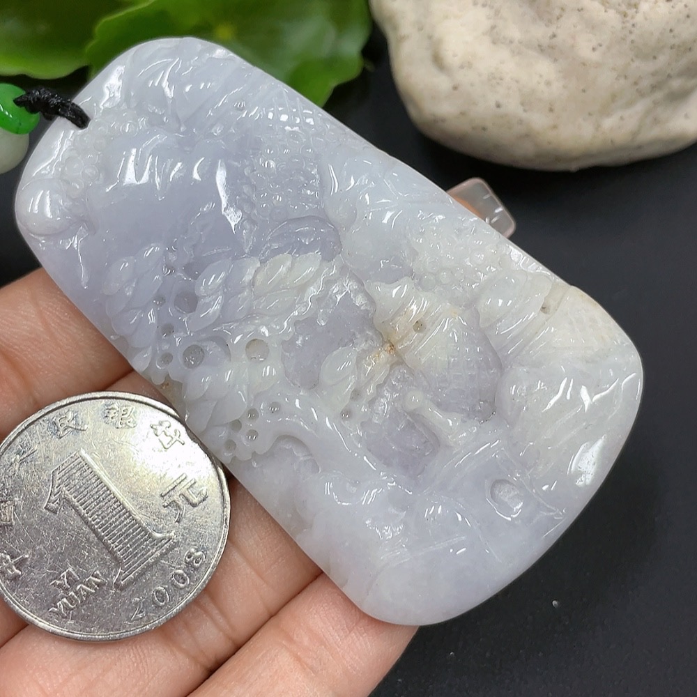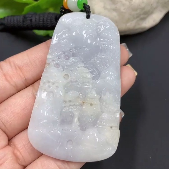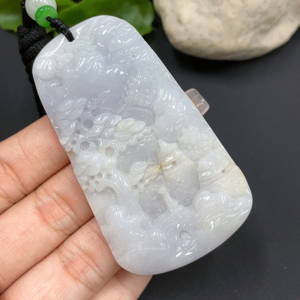 Jadeite landscape pendant with non-A grade beads, total weight 51.176g