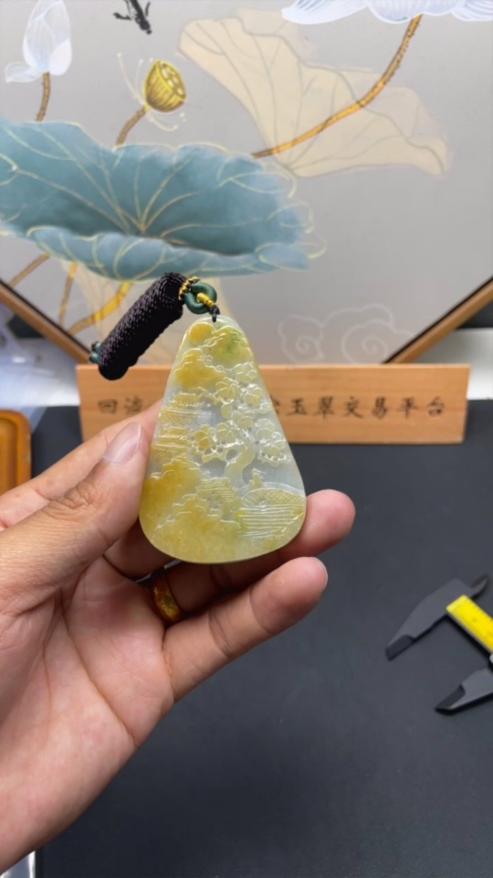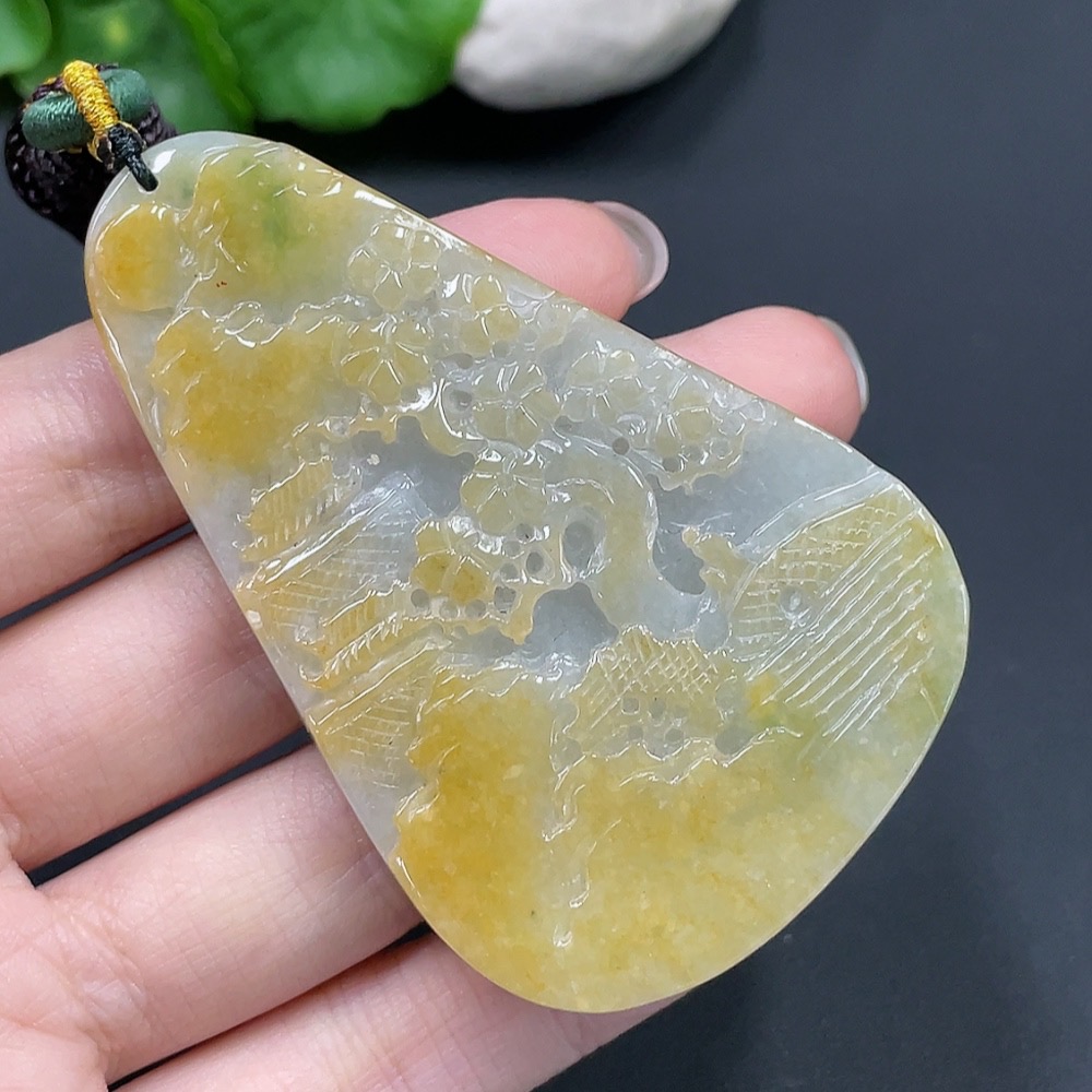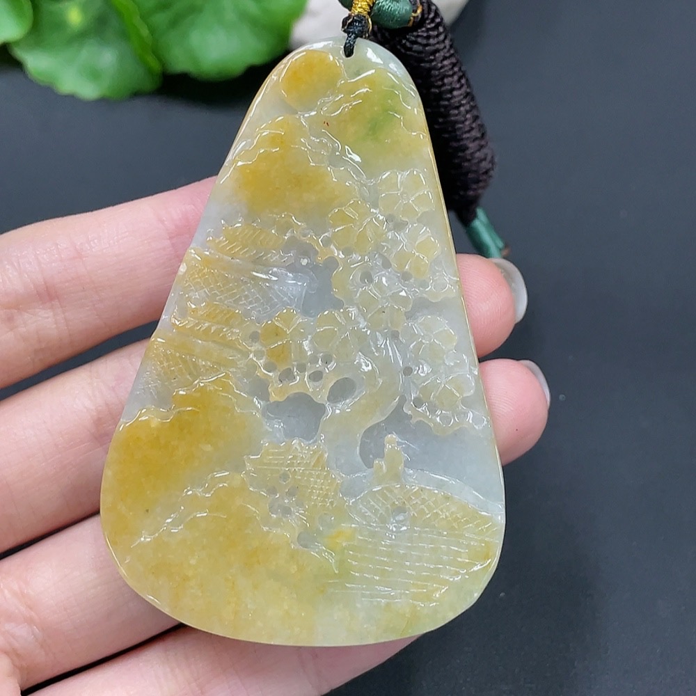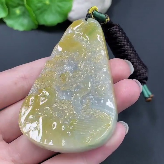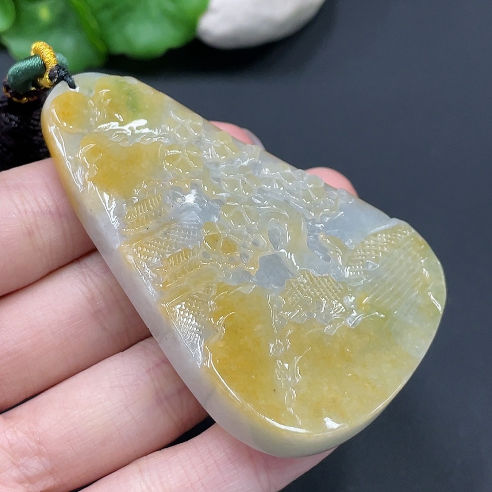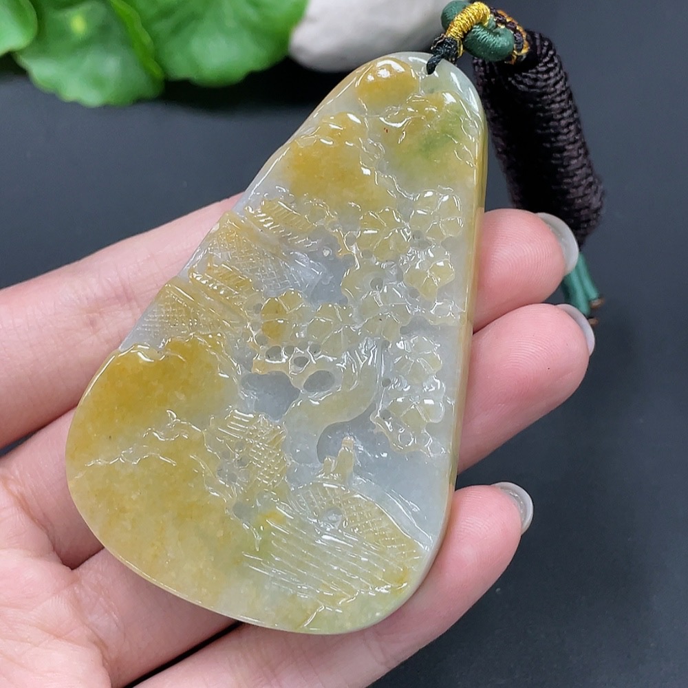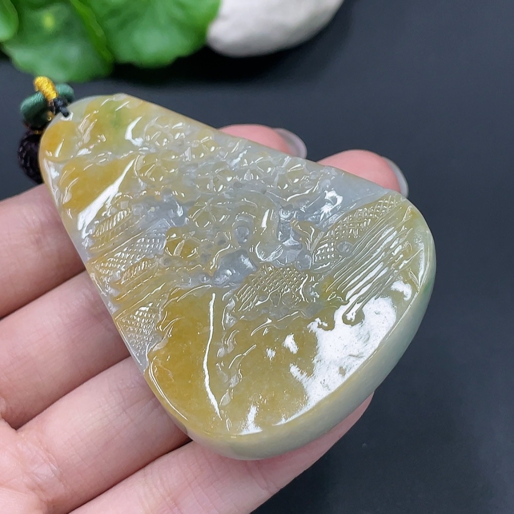 Jadeite Landscape Pendant, Color Origin Undetermined, Total Weight 65.791g