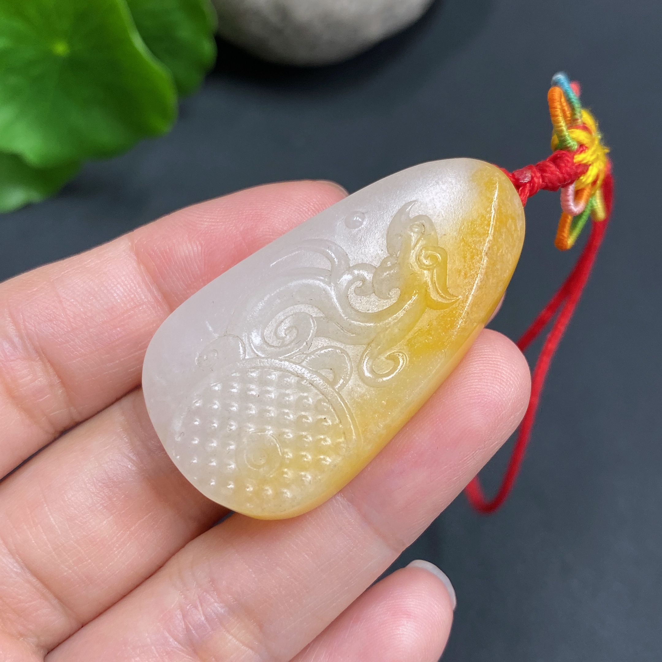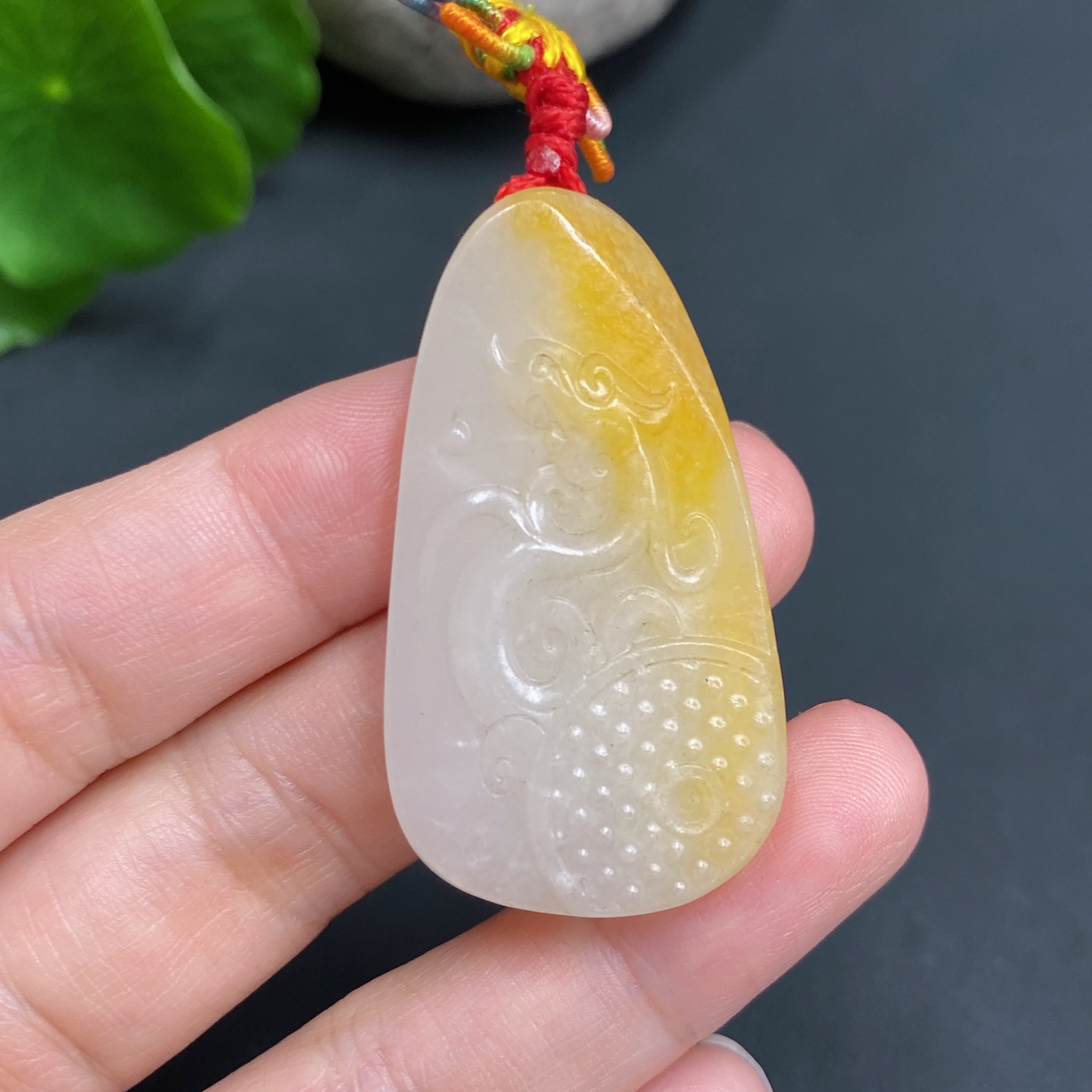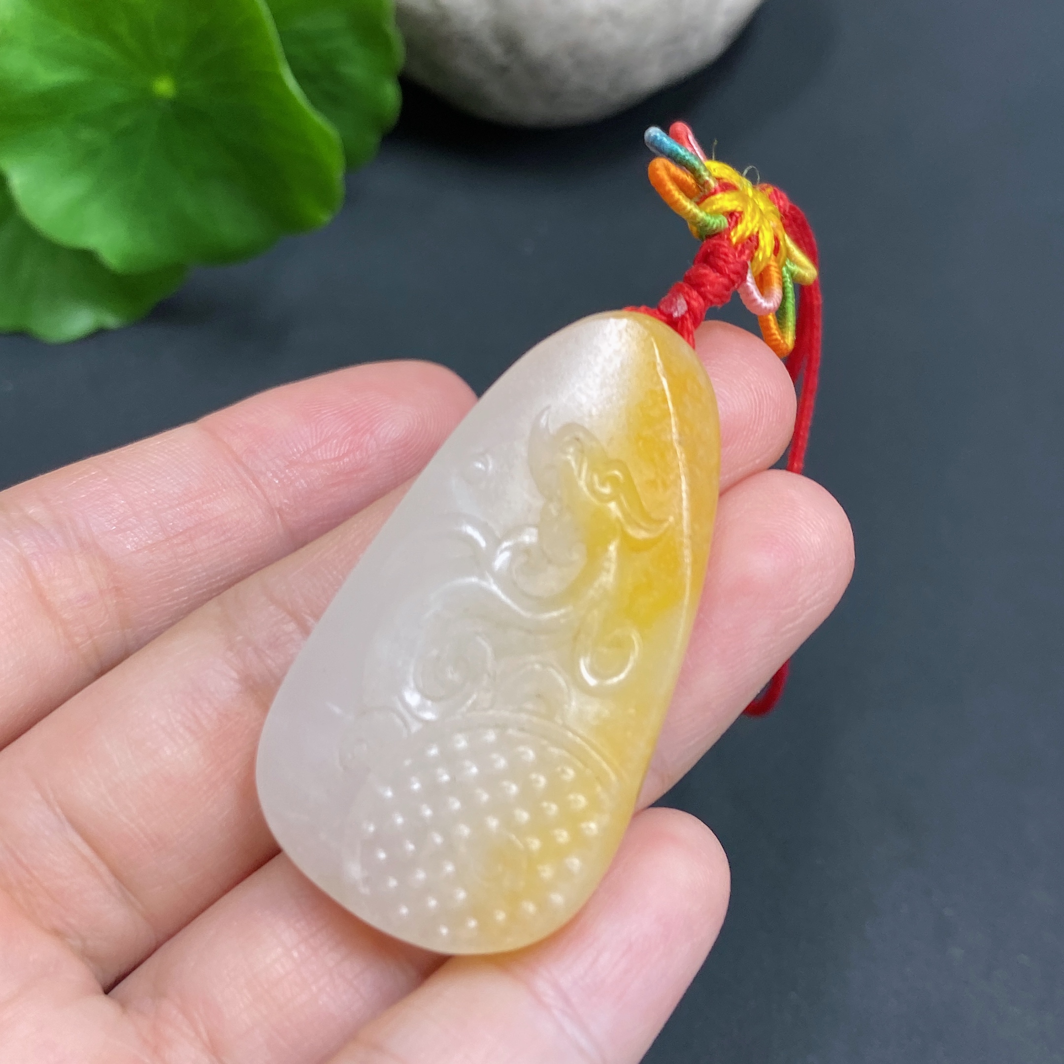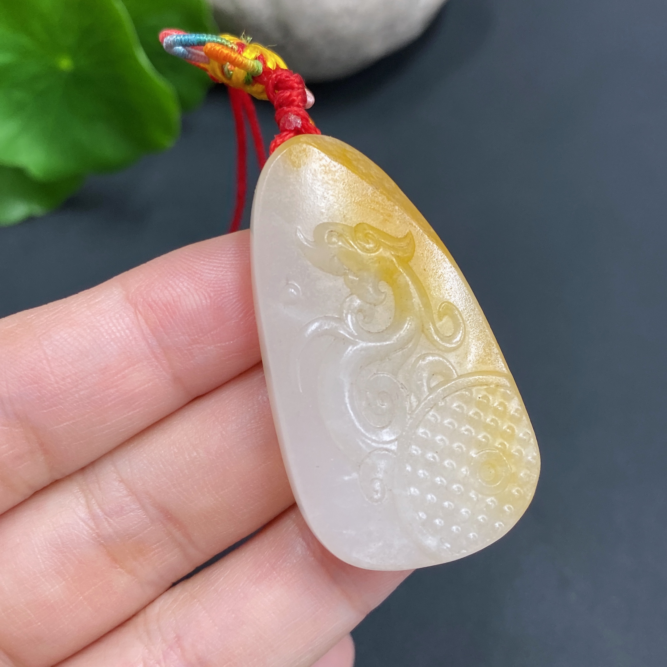 Hetian Jade Pendant, Antique-style Piece, Total Weight (with Cord) Approx. 14.3g, Undetermined Skin Color Origin