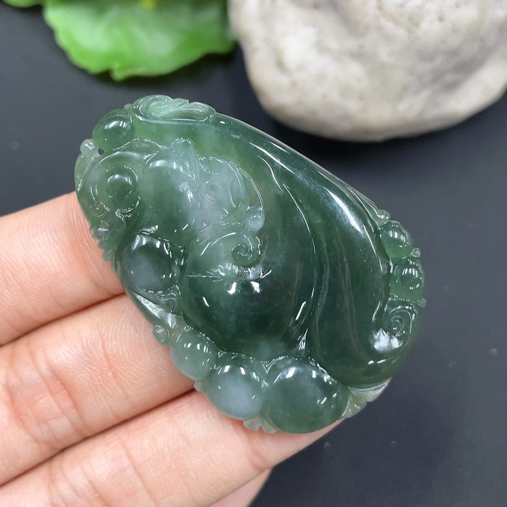 Jadeite Antique Dragon Pendant Total Weight: 13.790g