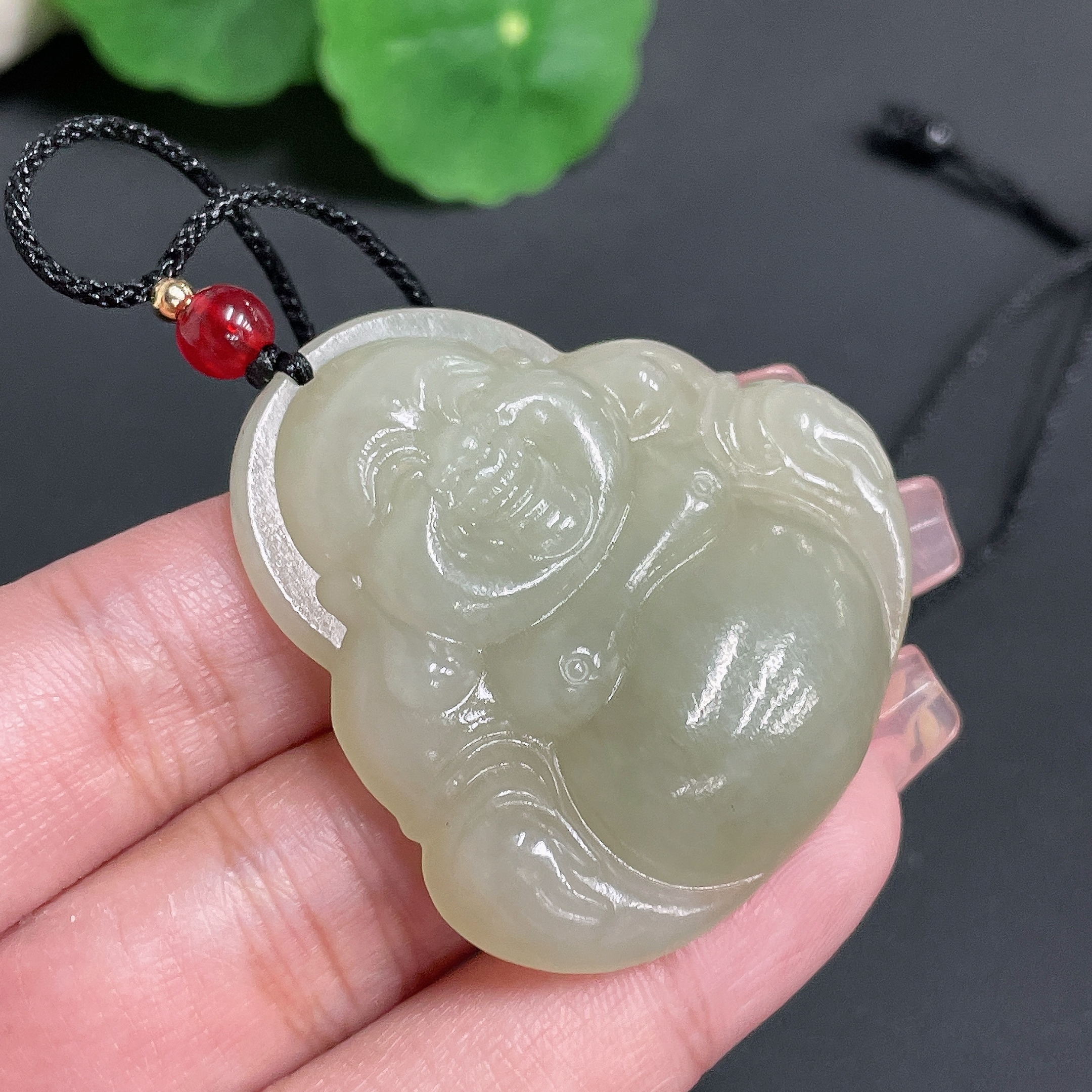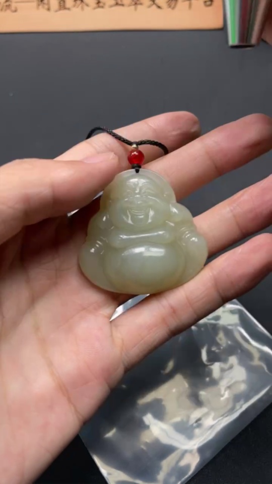 Hetian Jade Pendant Buddha with Cord Total Weight 28.67g