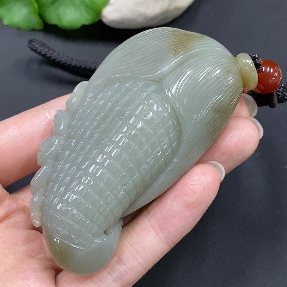 Hetian Jade Handheld Piece 'Blessing of Many Children' with Cord, Total Weight 135.54g