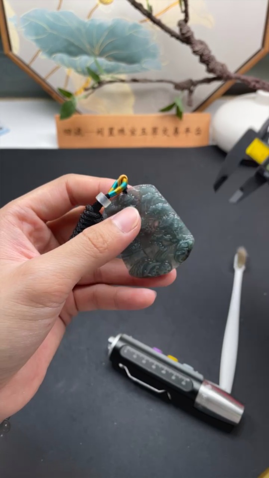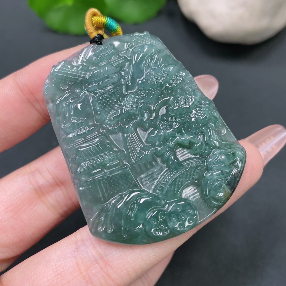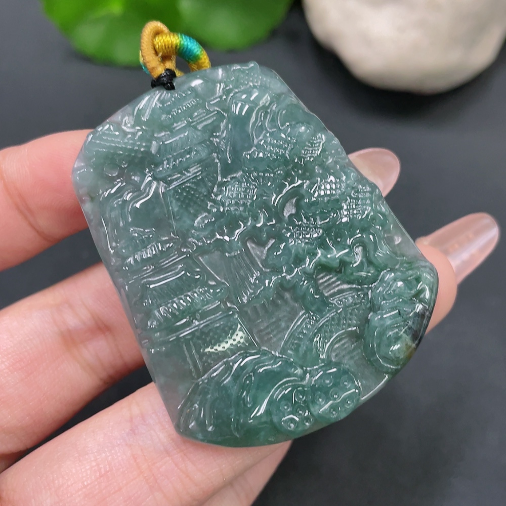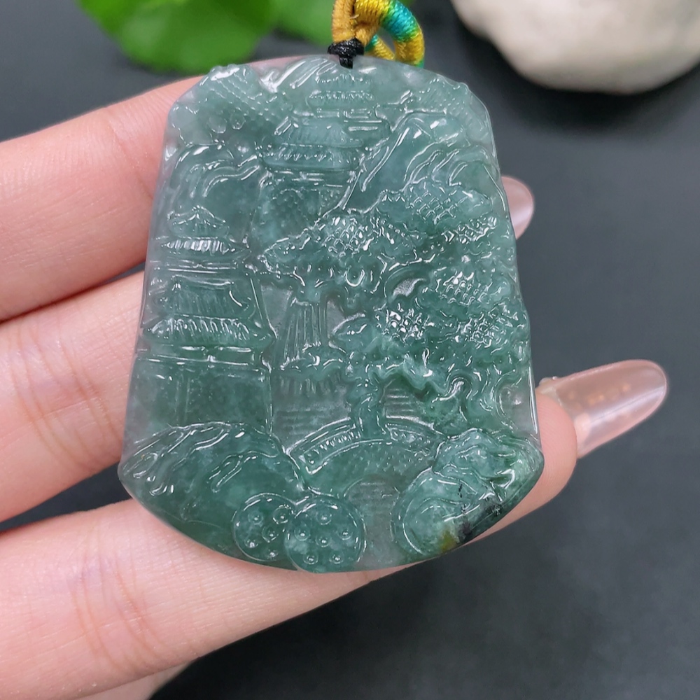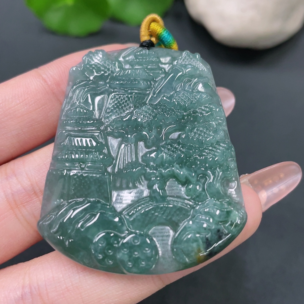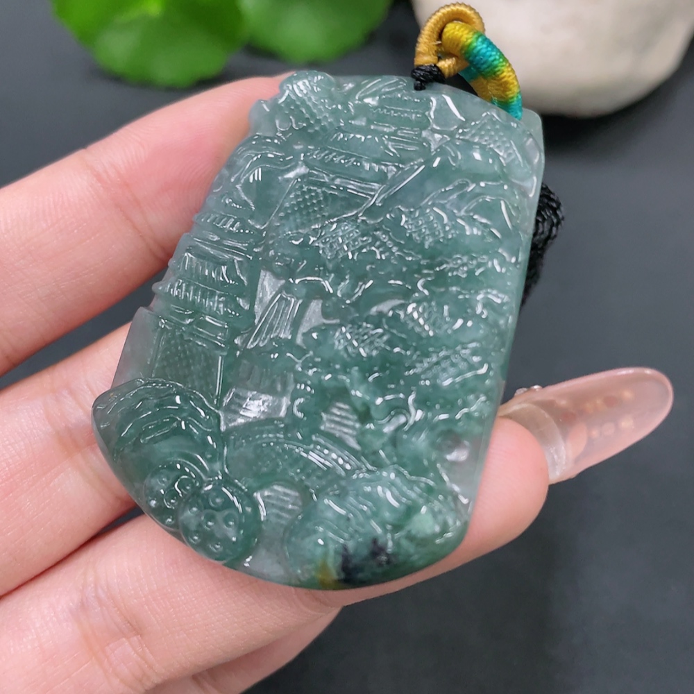 Jadeite Landscape Pendant with Non-A Grade Beads