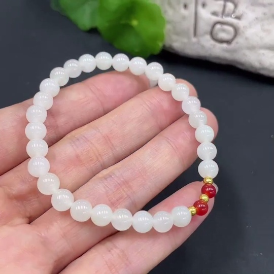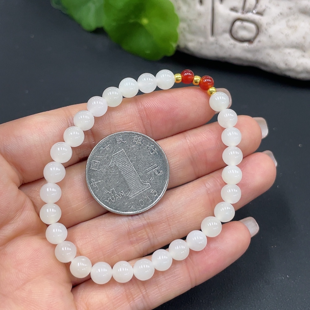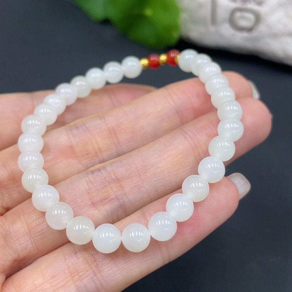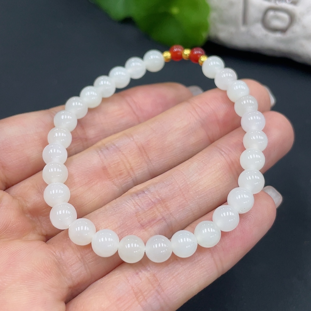 Hetian Jade Bracelet, Approx. 5.8mm, Total Weight Approx. 9.3g, Beads Not Hetian Jade, Gold Beads 99% Gold Content