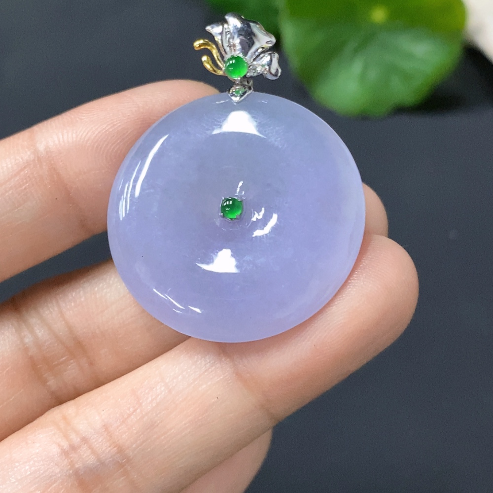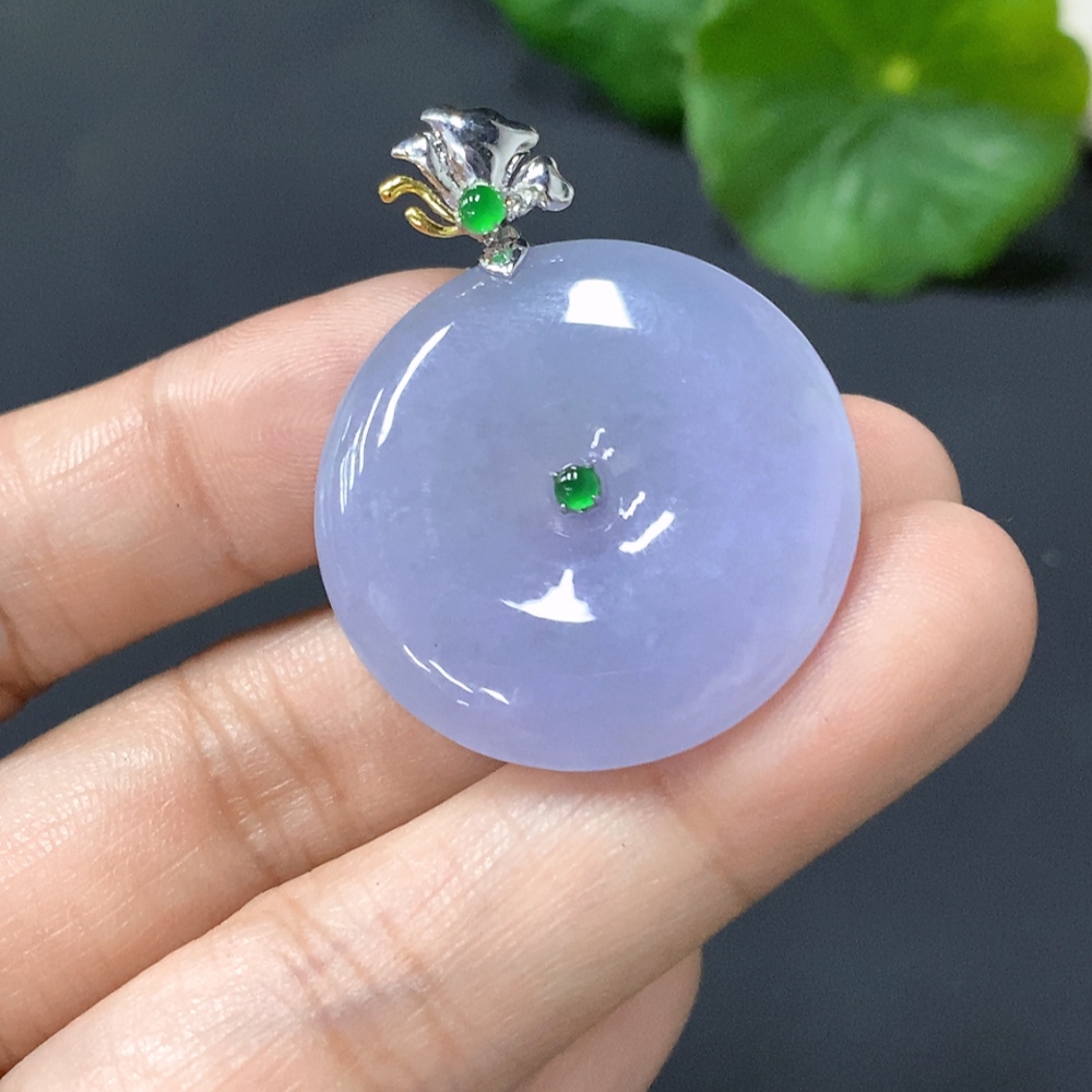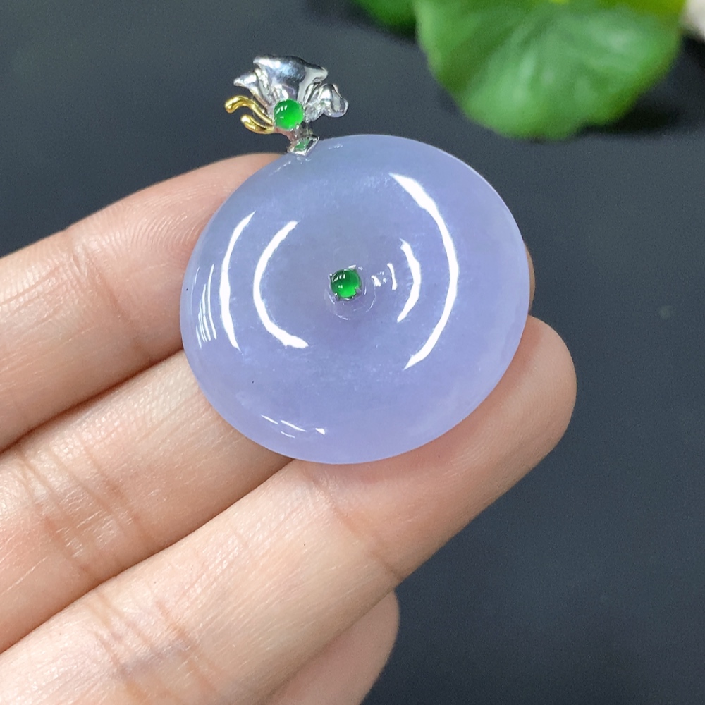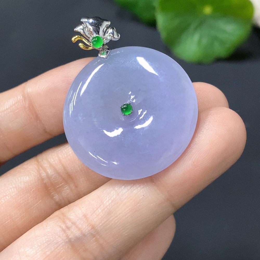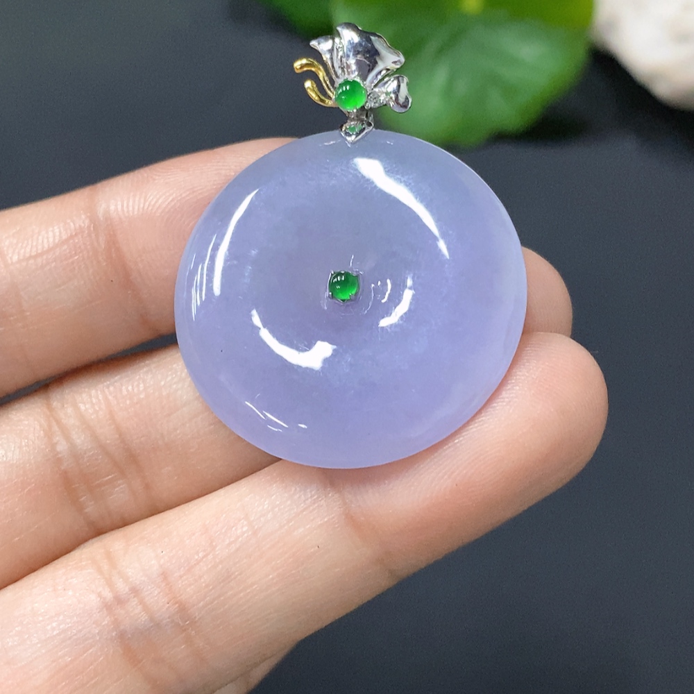 Jadeite Pendant, Peace Button with 18k Gold Clasp, Total Weight 8.293g