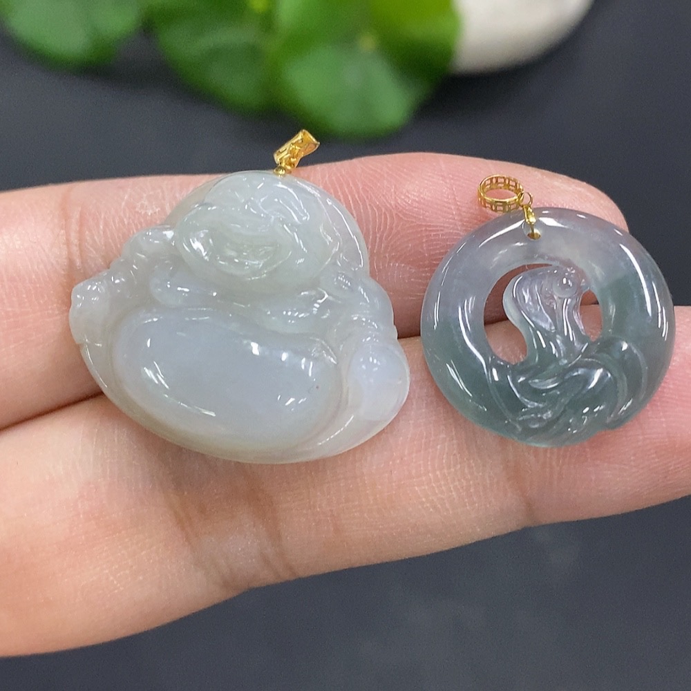 Jadeite Pendant Sell as a Lot with 18K Gold Clasp