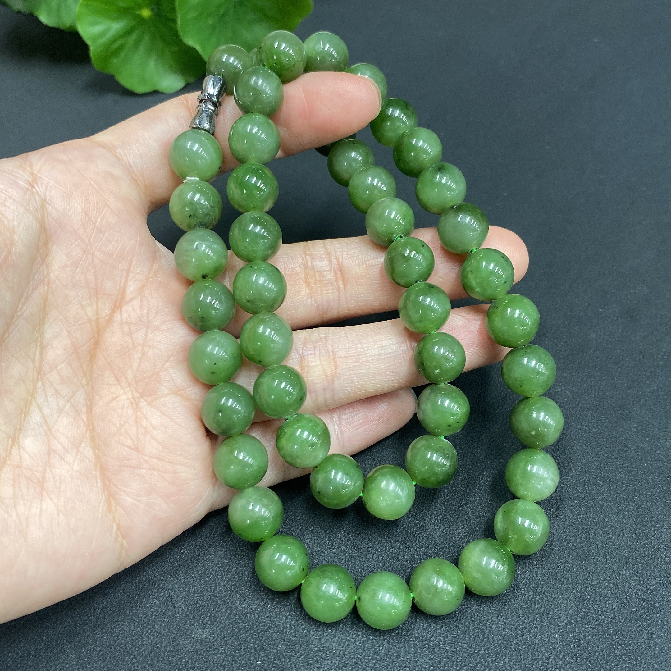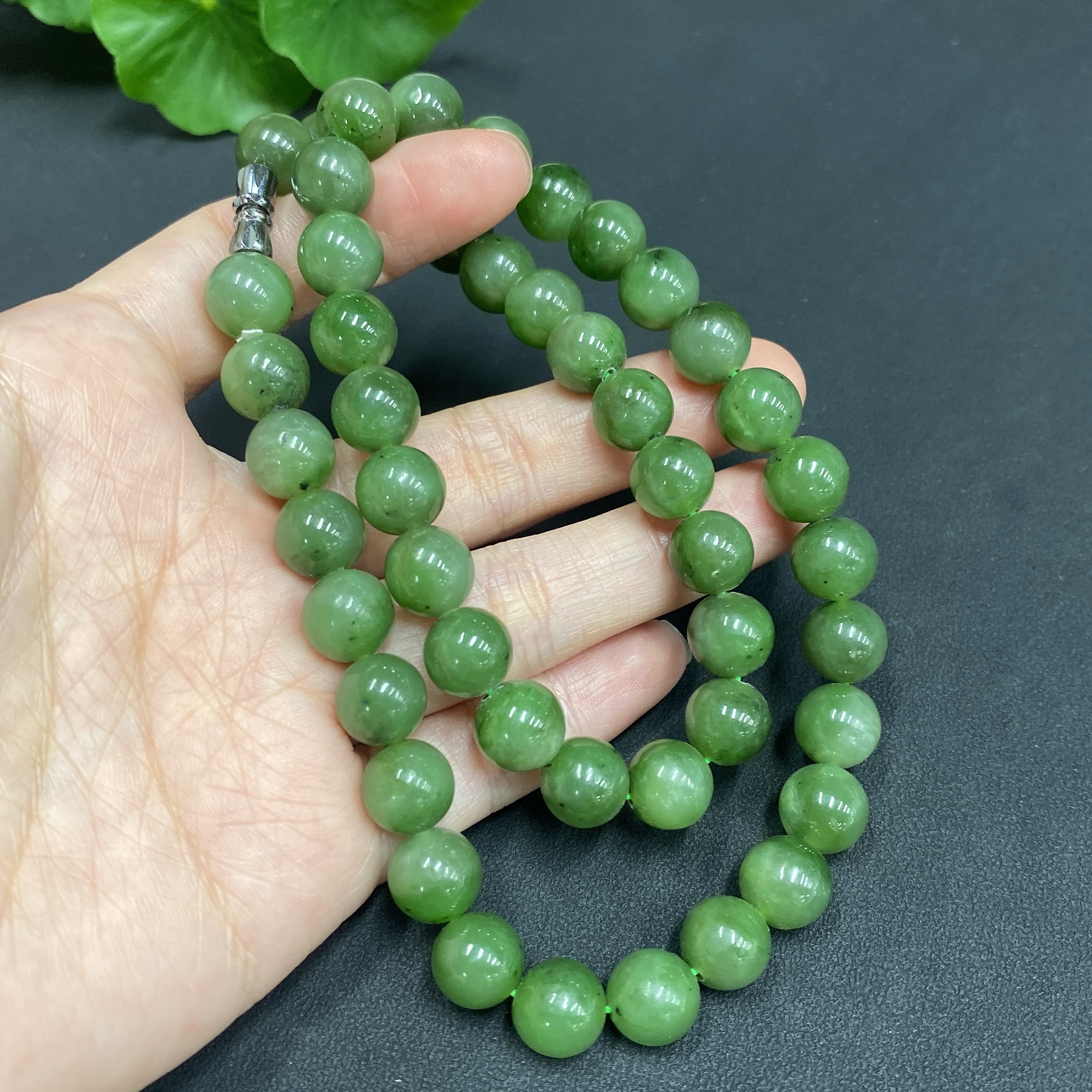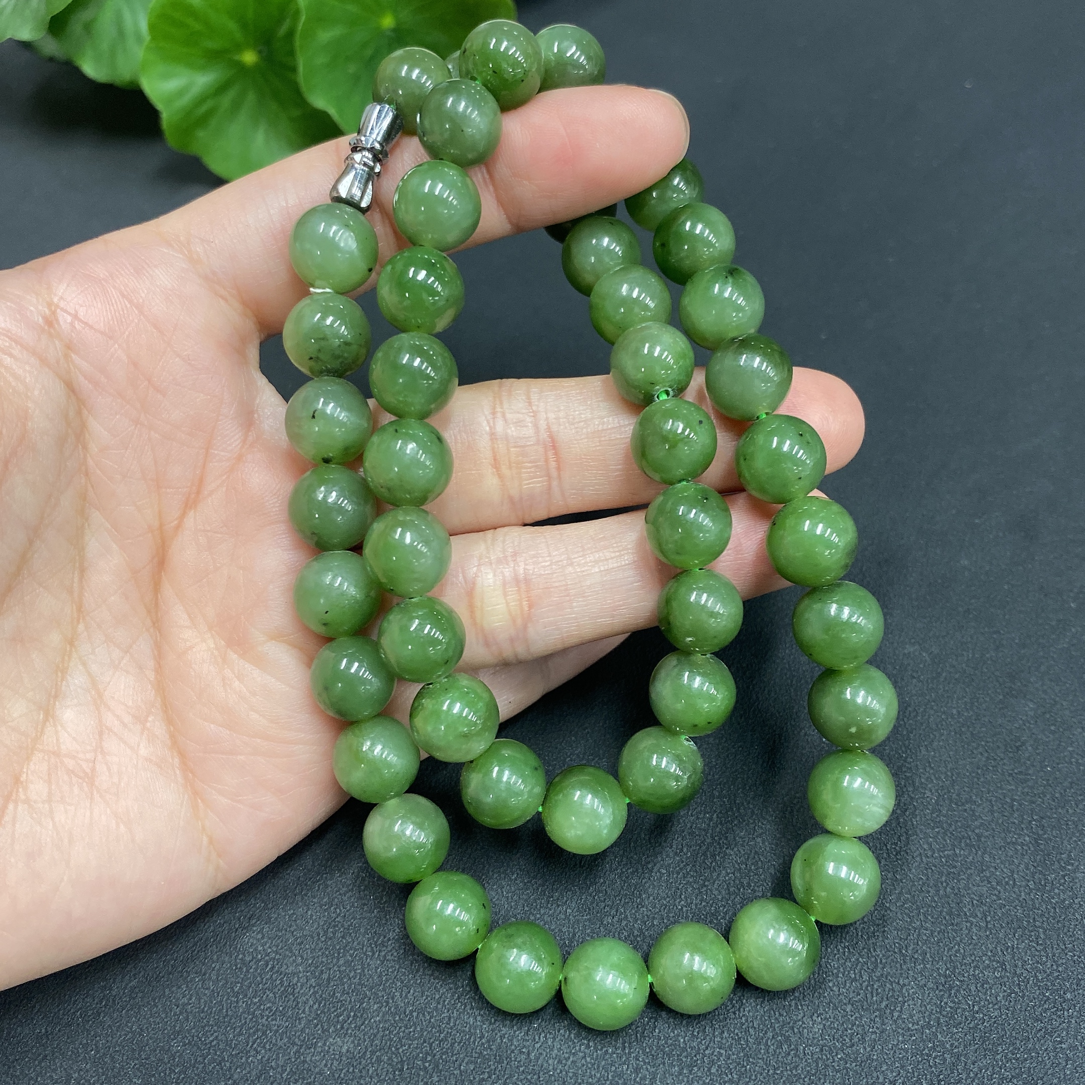 Hetian Jade Bead Necklace Approx. 9mm Total Weight Approx. 62.6g